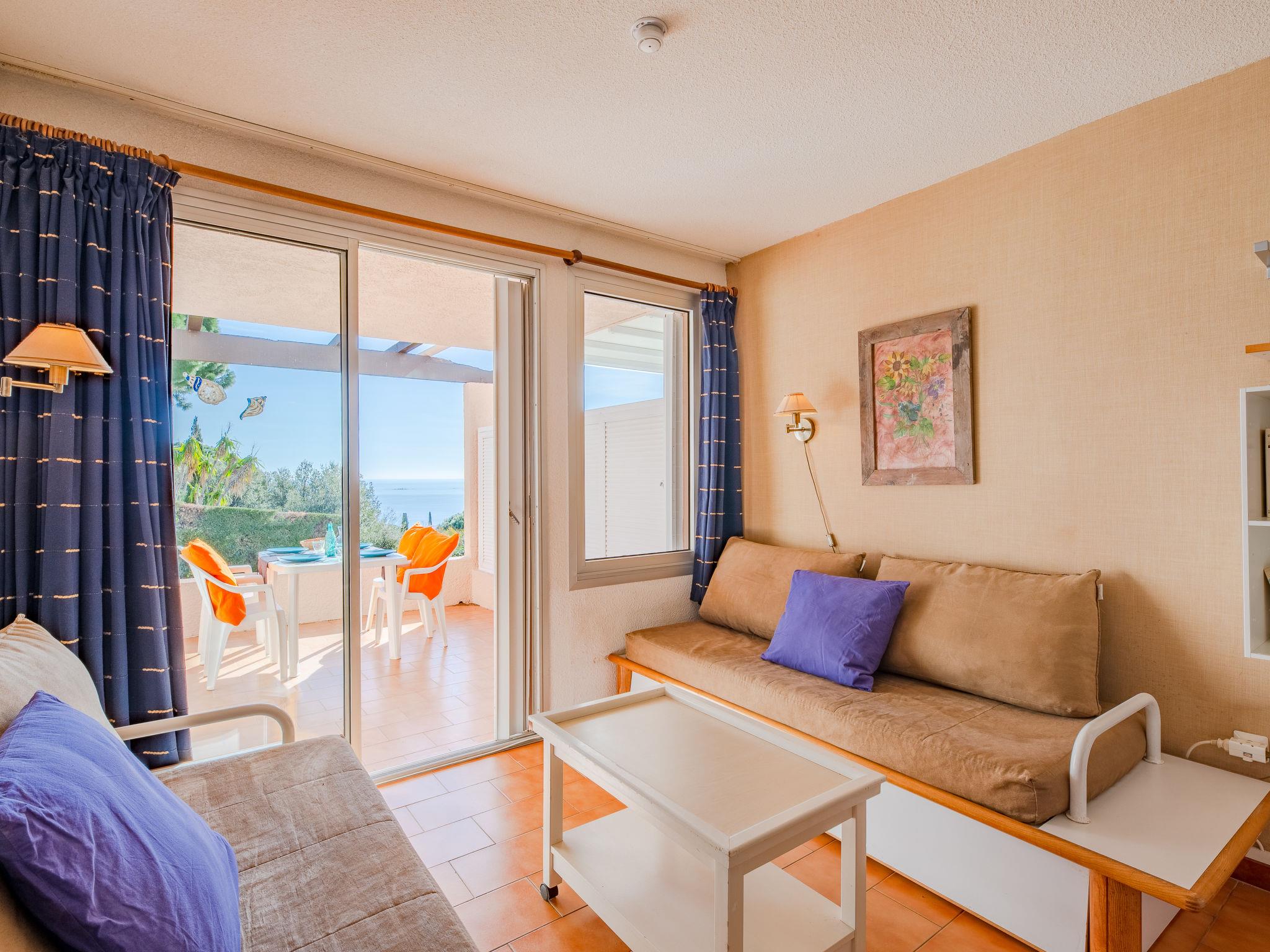 2-room apartment 28 m2, on the ground floor. Simple furnishings: living/dining room with 2 beds (80 cm, length 190 cm), TV. 1 room with 1 bed (140 cm, length 190 cm). Kitchenette (2 hot plates, mini-oven, dishwasher, toaster, kettle, microwave, electric coffee machine). Shower/WC. Electric heating. Terrace 10 m2, east facing position. Terrace furniture. Beautiful view of the sea. Facilities: washing machine. Internet (WiFi, extra). Parking. Please note: non-smokers only. Smoke alarm. The property is reached via 45 steps. This property has access to the round swimming pool. 83115001101NH