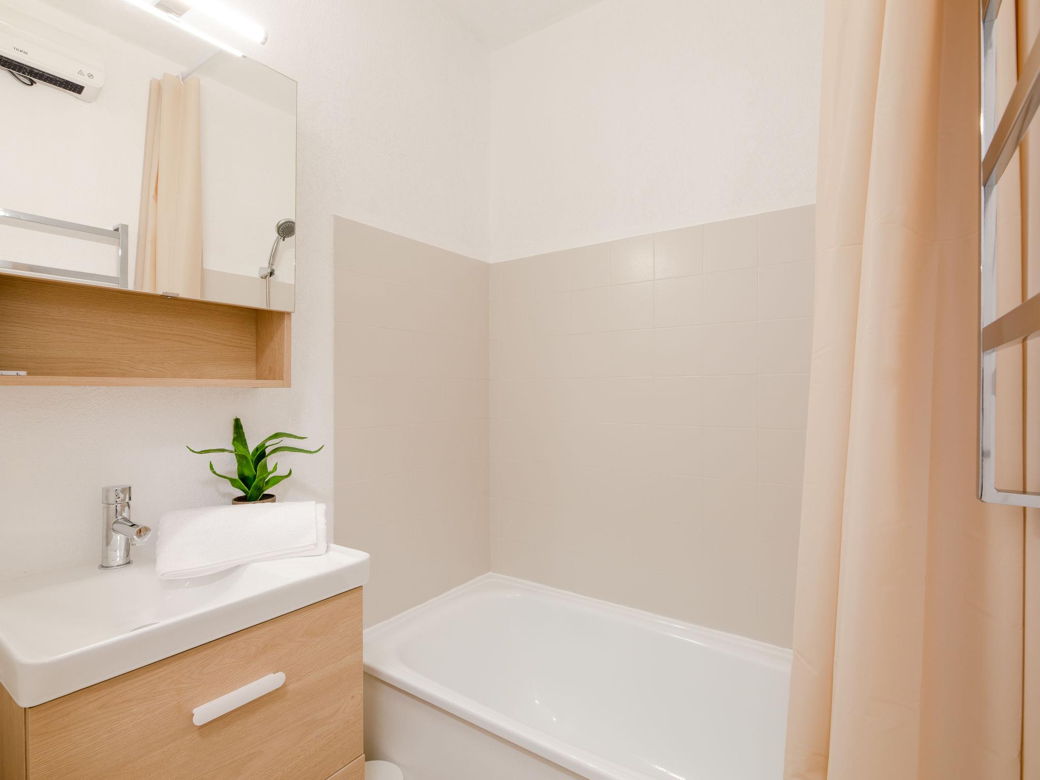 2-room apartment 29 m2 on 3rd floor. Comfortable furnishings: living/dining room with 1 double sofabed (140 cm, length 190 cm), TV. Exit to the terrace. 1 small room with sliding door with 1 french bed (140 cm, length 190 cm). Kitchenette (2 hot plates, oven, toaster, kettle, microwave, electric coffee machine). Bathroom, sep. WC. Electric heating, air-conditioning. Terrace, east facing position. Terrace furniture. Facilities: washing machine. Internet (WiFi, extra). Garage space n 77, height 192 cm, width 235 cm. Please note: non-smokers only, parking space for small car only. Smoke alarm. 83115002995DZ