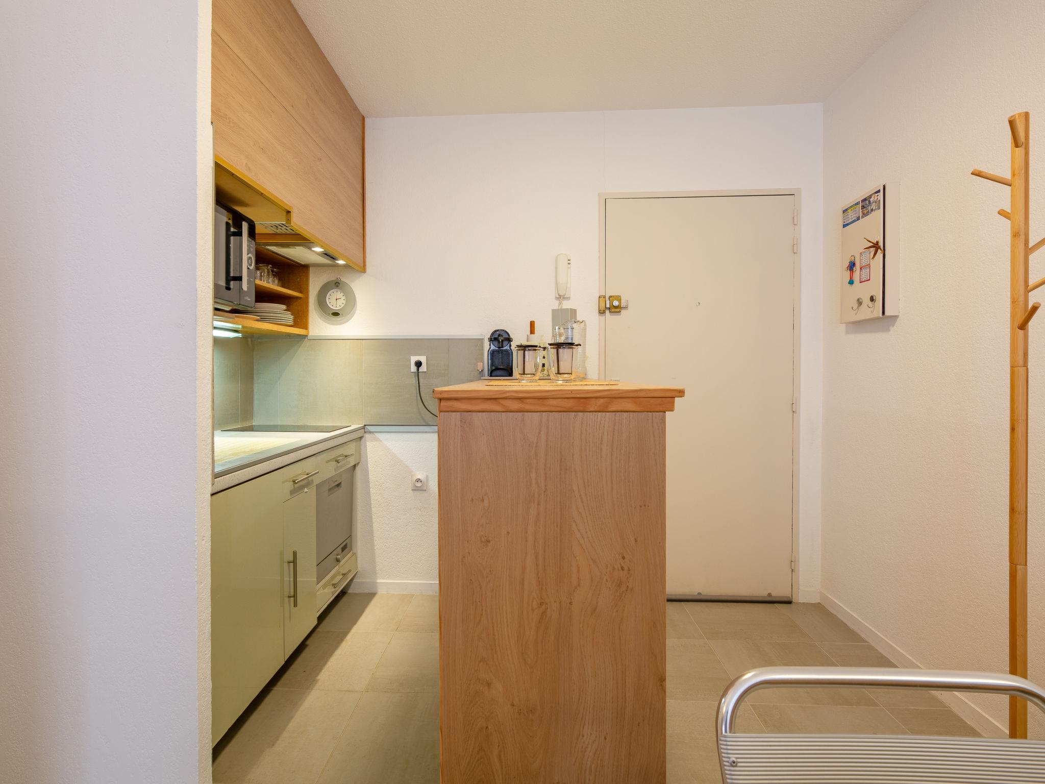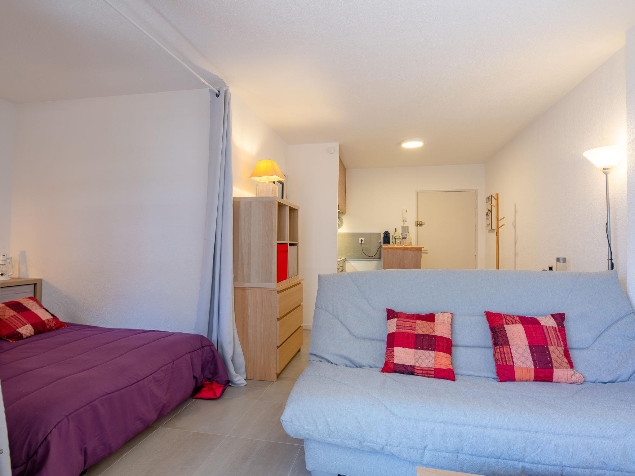 1-room studio 29 m2 on 2nd floor, east facing position. Cosy furnishings: living/sleeping room with 1 double sofabed (1 x 140 cm, length 190 cm), 1 french bed (1 x 140 cm, length 190 cm), TV (flat screen). Exit to the balcony. Open kitchen in the entrance (dishwasher, 2 induction hot plates, toaster, kettle, electric coffee machine, combination microwave). Shower/WC. Air-conditioning, forced-air heating. Balcony 7 m2, east facing position. Balcony furniture. View of the resort. Facilities: washing machine, iron, hair dryer. Internet (WiFi, free). Please note: non-smokers only, no parking. Maximum 1 pet/ dog allowed. Smoke alarm. Offer by a private individual according to Art. 155, IV of CGI. 83115005221DP