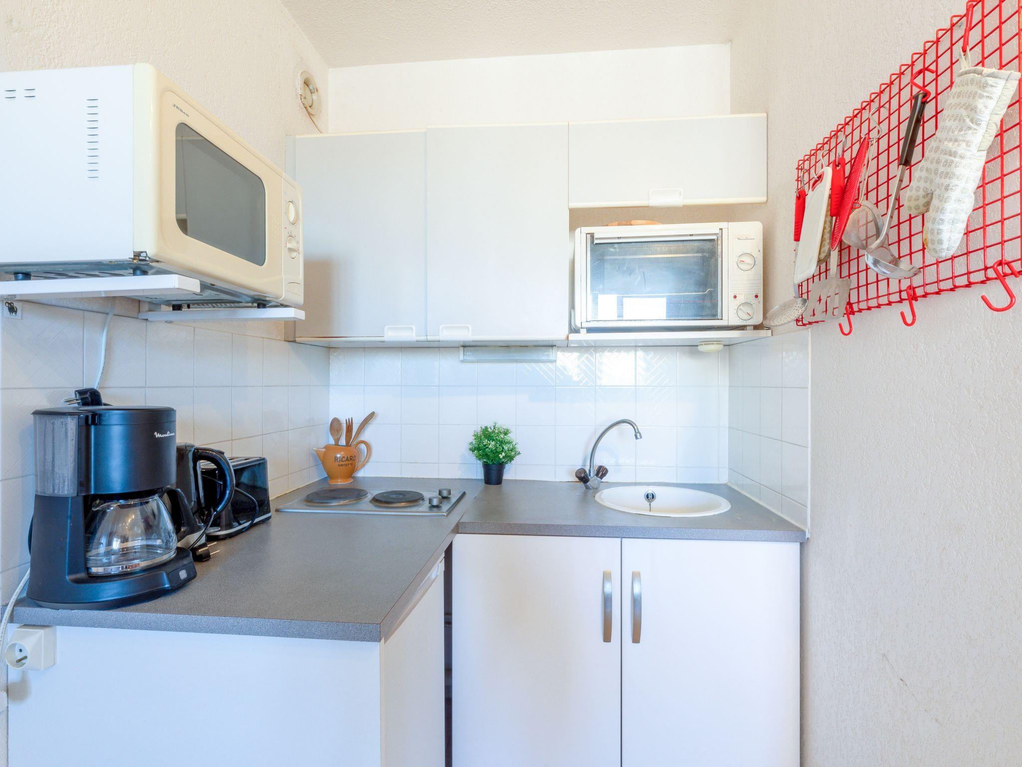 2-room apartment 25 m2 on 4th floor. Living/dining room with 1 double sofabed (140 cm, length 190 cm), TV. Exit to the terrace. 1 room with sliding door with 1 french bed (140 cm, length 190 cm). Kitchenette (2 hot plates, mini-oven, toaster, kettle, microwave, electric coffee machine). Bathroom, sep. WC. Electric heating. Terrace 9 m2 partly roofed, north-west facing position. Terrace furniture. Facilities: Internet (WiFi, extra). Garage space n 264 (-3), height 192 cm, width 235 cm. Please note: non-smokers only, parking space for small car only. Maximum 1 pet/ dog allowed. Smoke alarm. 83115003069NH