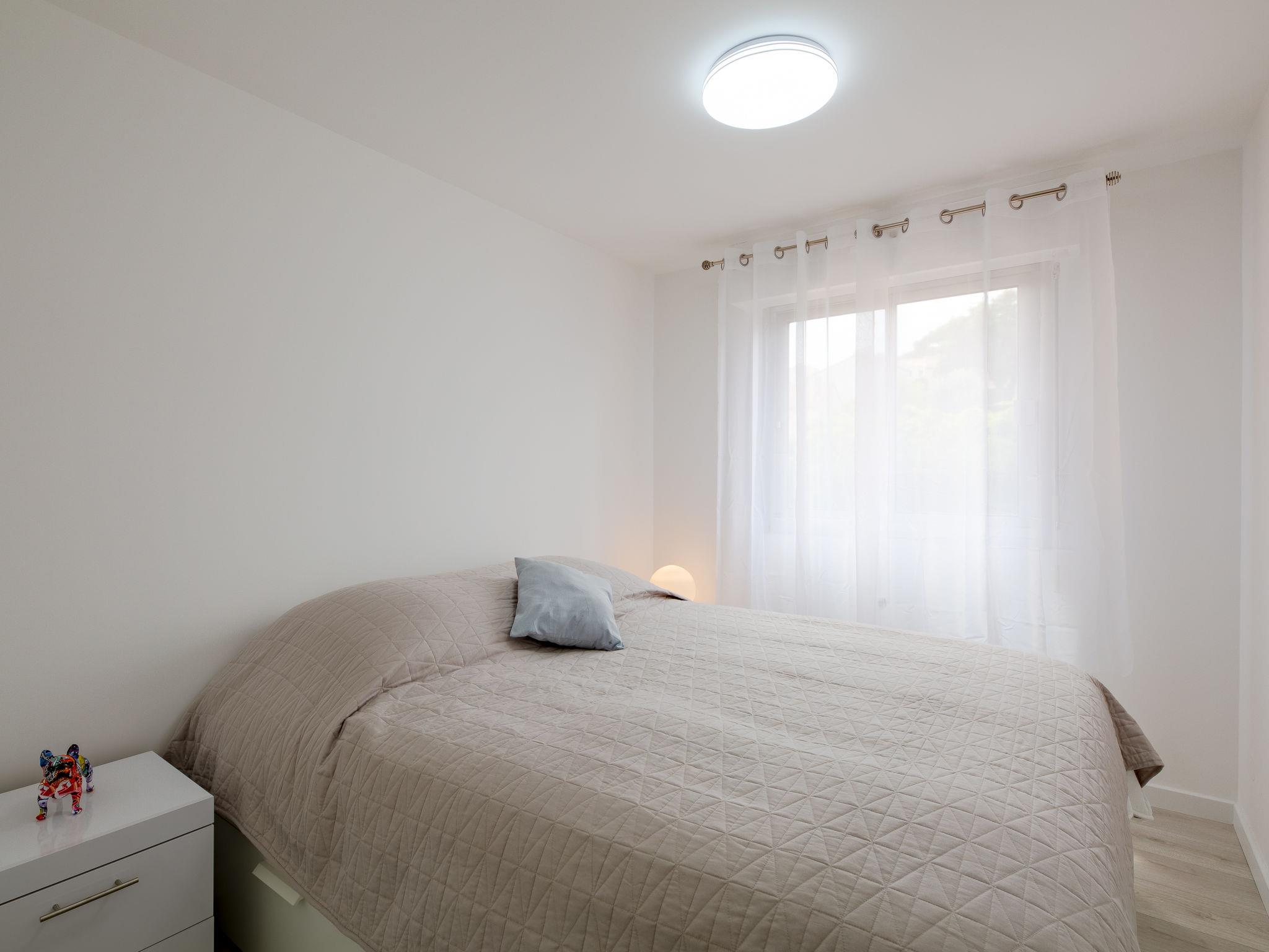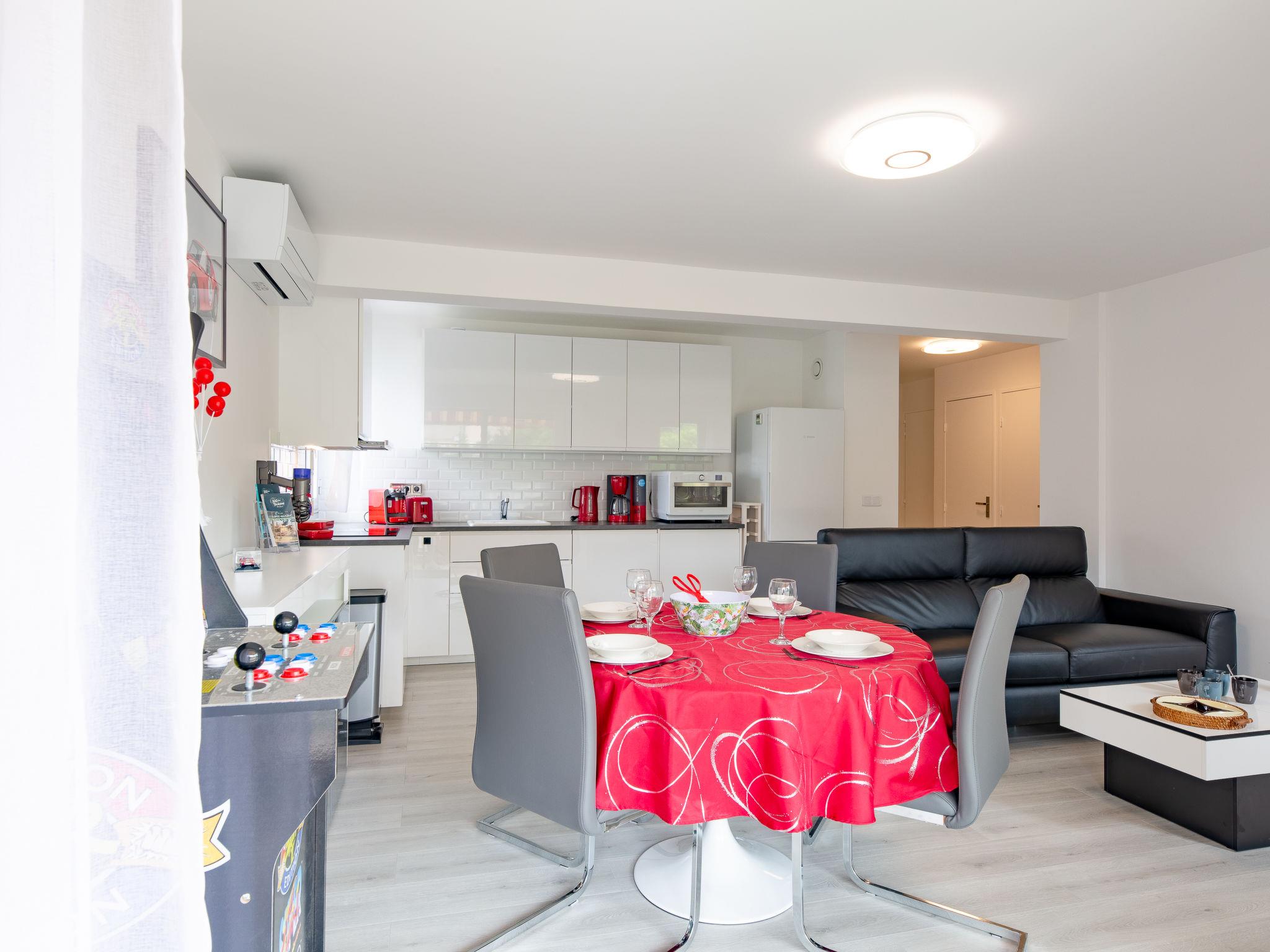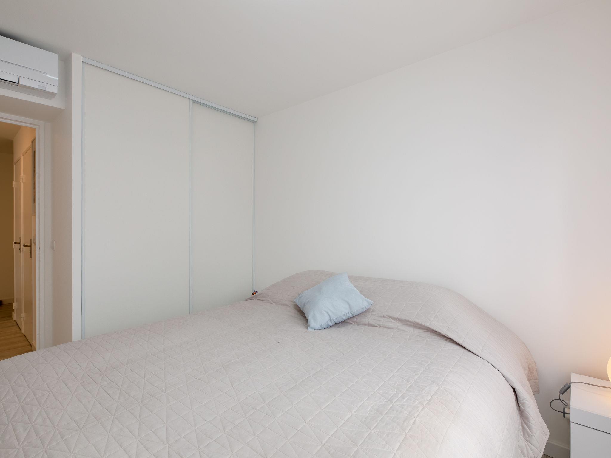 3-room apartment 47 m2 on 2nd floor, west facing position. Spacious and bright, fully renovated in 2023, beautiful furnishings: entrance hall with separate WC. Living/dining room with TV (flat screen). Exit to the balcony. 1 room with 1 french bed (1 x 160 cm, length 200 cm). 1 room with 1 x 2 bunk beds (90 cm, length 200 cm). Open kitchen (dishwasher, 3 induction hot plates, toaster, kettle, freezer, electric coffee machine, combination microwave). Shower. Heating, air-conditioning. Large balcony 20 m2, west facing position and north facing position. Balcony furniture. View of the countryside. Facilities: washing machine, iron, children's high chair, hair dryer. Internet (WiFi, free). Parking space n 18 (1 car). Please note: non-smokers only. Smoke alarm. Offer by a private individual according to Art. 155, IV of CGI. 83115004708SB