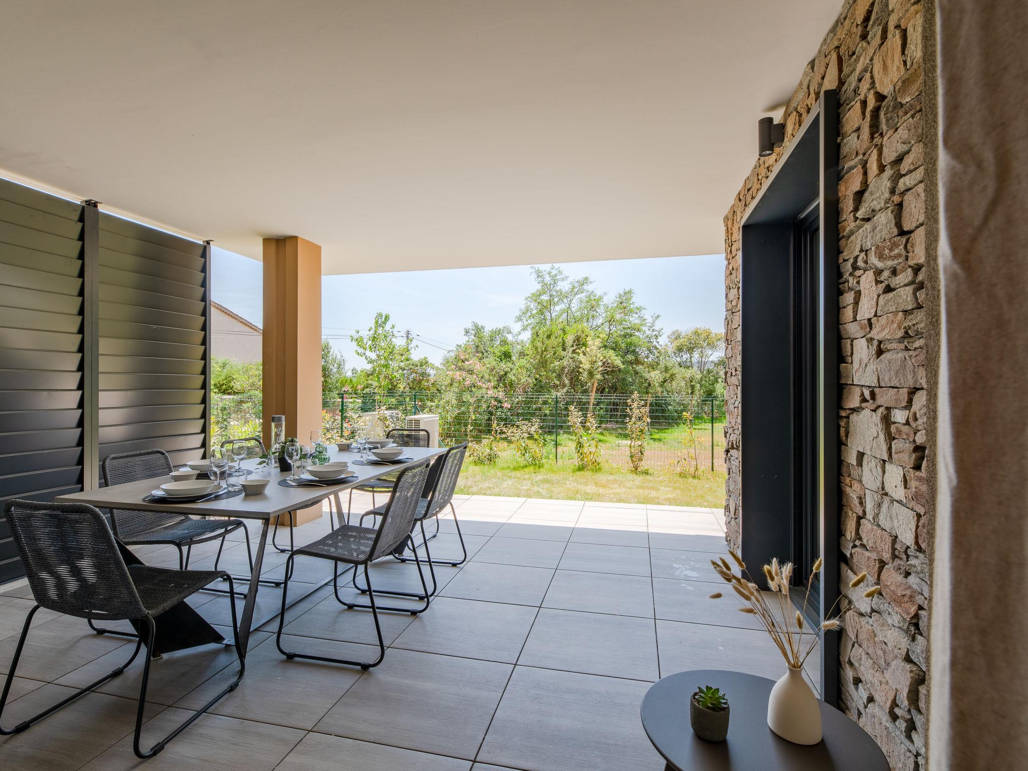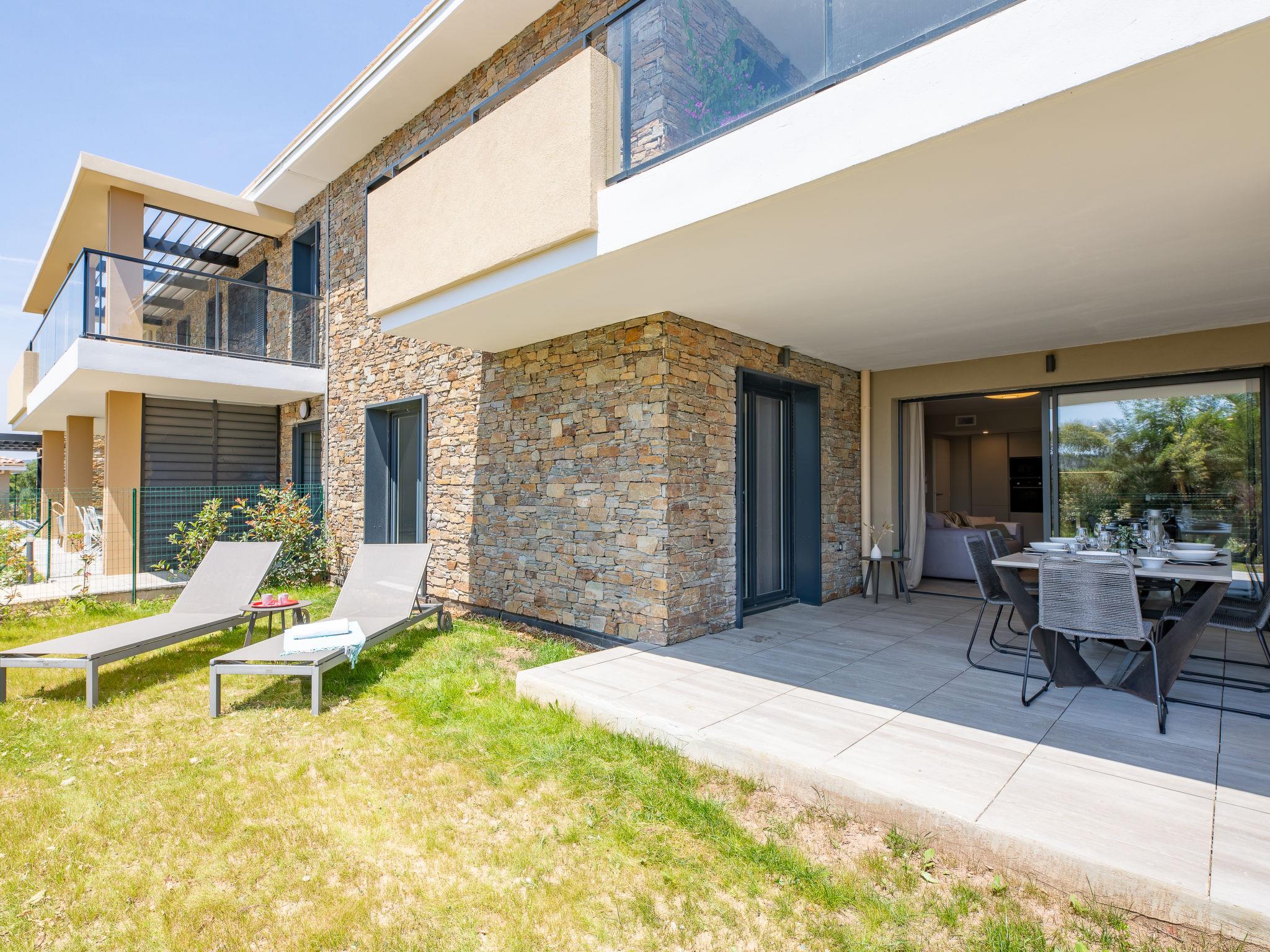 Modern apartment block "Le Clos d'Alice", 2 storeys, built in 2024. 10 apartments in the residence. In the district of Saquèdes, on the outskirts, 1.3 km from the centre, in a quiet, sunny position in the residential district, traffic calmed area, 1.5 km from the sea, 1.5 km from the beach, in the countryside. For shared use: well-kept garden, swimming pool angular fenced (10 x 5 m, depth 180 cm, seasonal availability: 01.Jun. - 30.Sep.). Parking. Grocery 400 m, supermarket 1.8 km, bakery 400 m, 15 minute walk to the centre, bus stop 450 m, sandy beach "centre Ville" 1.5 km, thermal baths "Thalasso Spa des Issambres" 7 km. Sports harbour 1.5 km, golf course (18 hole) 4 km, tennis 3 km. Nearby attractions: Aqualand Waterpark 2 km, Navette/Shuttle boat St Tropez 20min 1.5 km, St Tropez / Ramatuelle 17 km, Port-Grimaud 10 km, Gorges du Verdon 80 km. Hiking paths: Massif des Maures 5 km, Massif de l'Esterel 25 km. Please note: car recommended. Residence with electric gates. The keys‘ handover takes place by the agency Interhome in Sainte Maxime. Neighbourhood highly sensitive to noise. Quietness and good behaviour expected.
