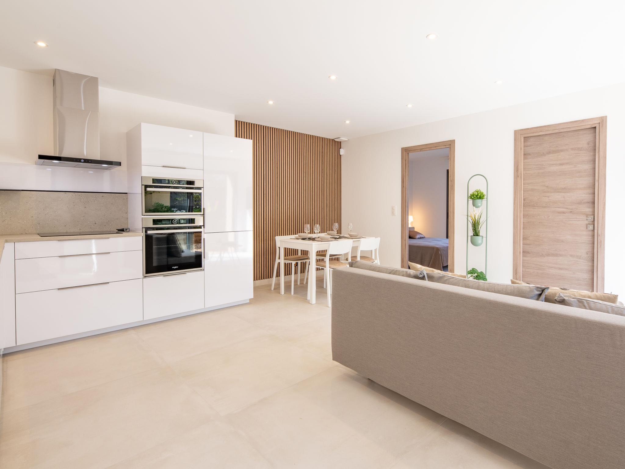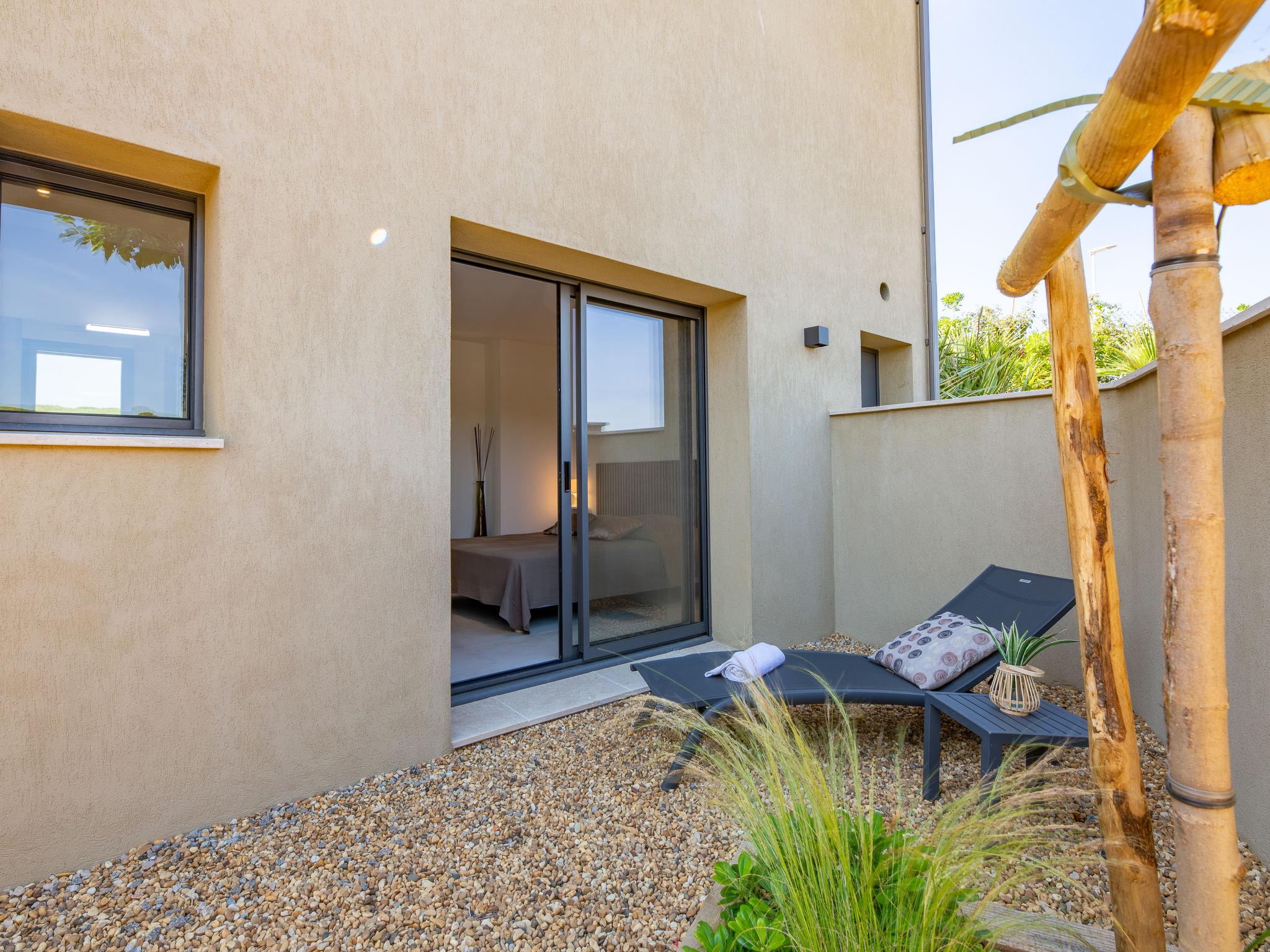"Kaori", 2-room apartment 47 m2, on the ground floor, east facing position. Spacious, fully renovated in 2024, beautiful and modern furnishings: living/dining room with 1 double sofabed (1 x 140 cm, length 190 cm), TV (flat screen). Exit to the garden. 1 room with 1 french bed (1 x 160 cm, length 200 cm). Exit to the patio. Open kitchen (oven, dishwasher, 3 induction hot plates, toaster, kettle, microwave, freezer, electric coffee machine). Shower, sep. WC, double hand-basin. Air-conditioning, forced-air heating. Garden 80 m2, east facing position. Terrace furniture. Facilities: washing machine, iron, hair dryer. Internet (WiFi, free). Parking. Please note: non-smokers only. Smoke alarm. Offer by a commercial proprietor according to Art. 155, IV, CGI 83115005176SB