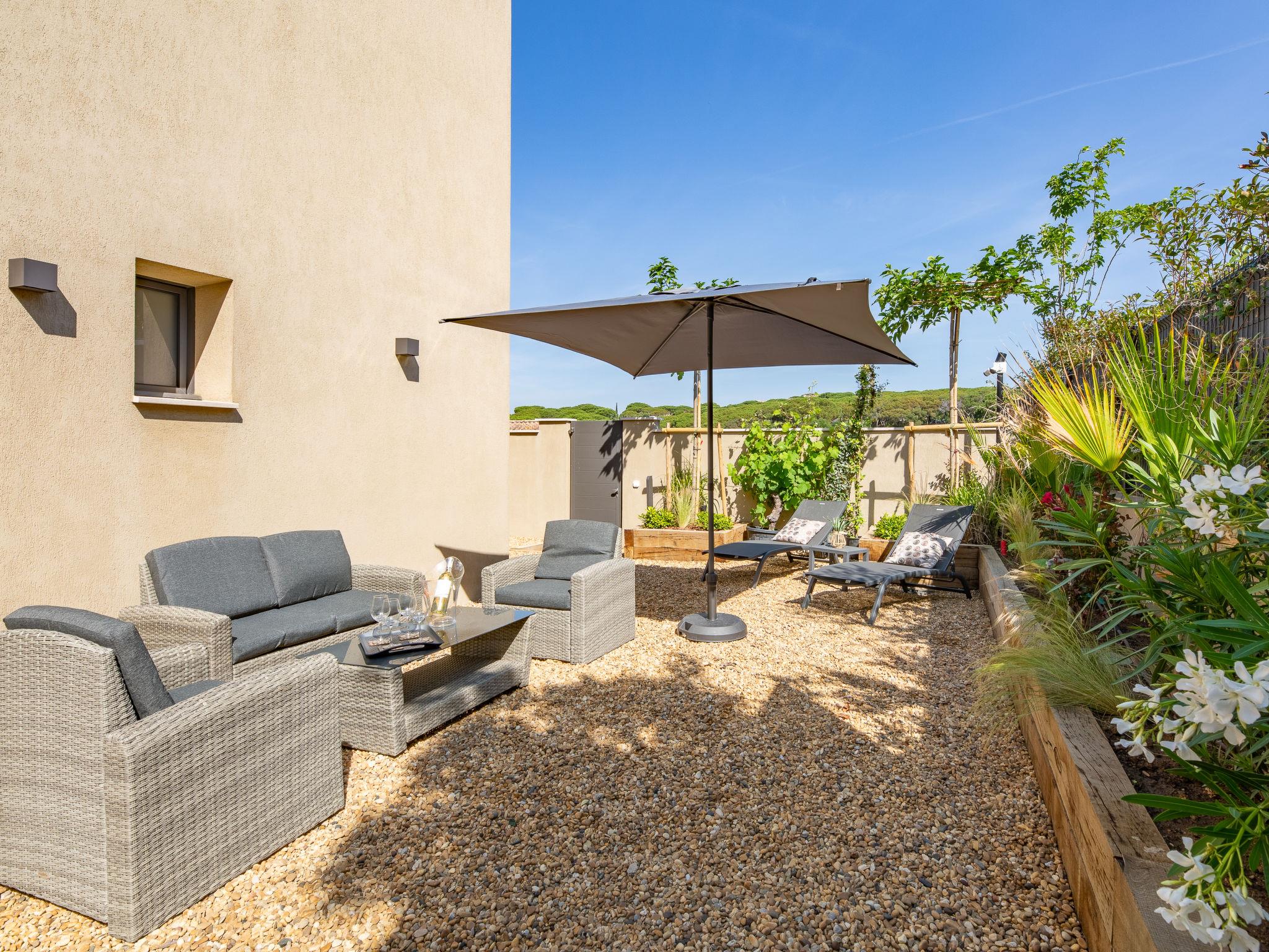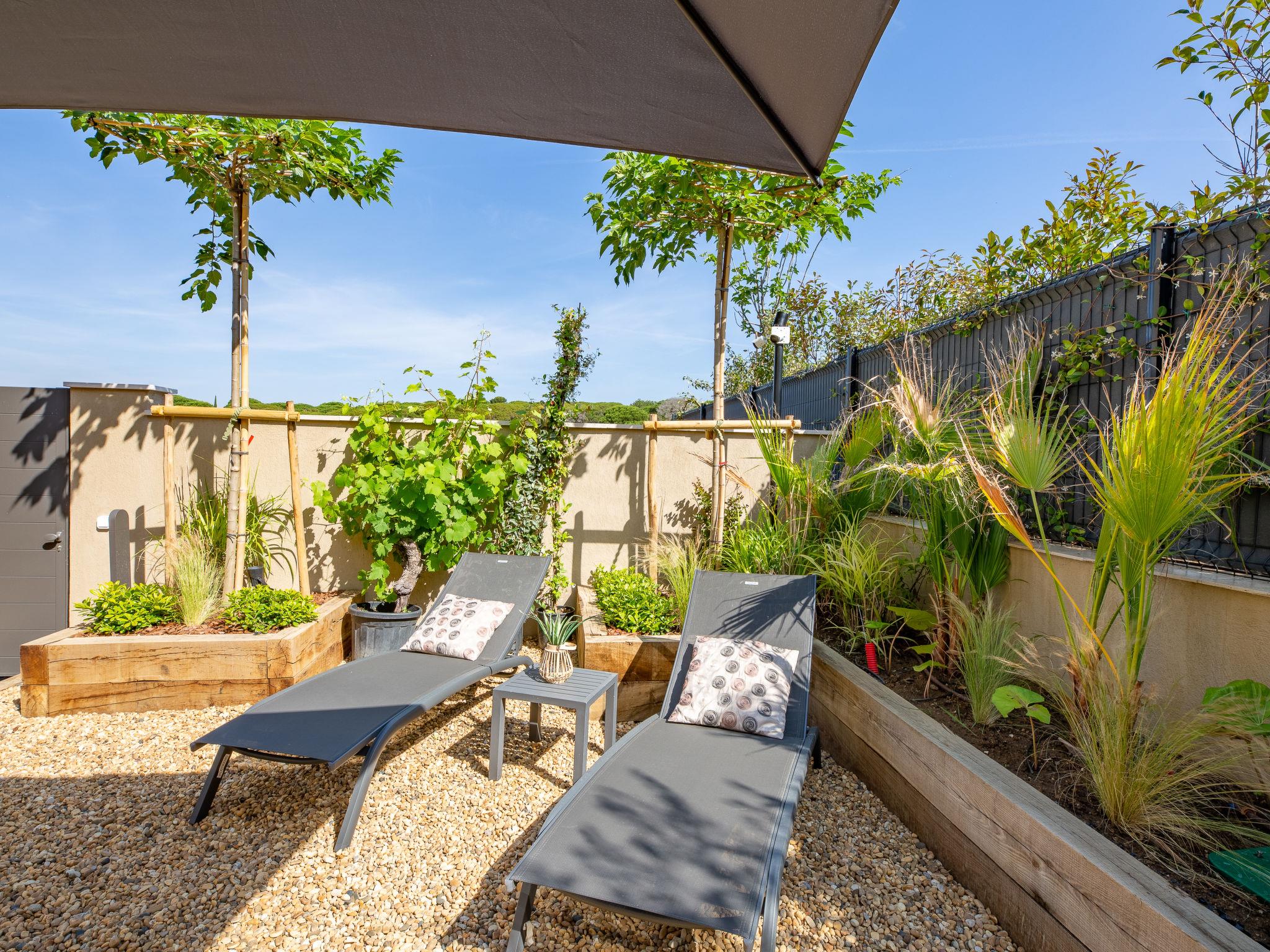 Modern semi-detached house "Akemi", renovated in 2024. In the district of Bouillonnet, on the outskirts, 800 m from the centre of Sainte-Maxime, in a quiet position in the residential district, 1.3 km from the sea, 1.3 km from the beach, in a cul-de-sac. Private: well-kept garden (fenced) wildlife garden and trees. Grocery 1 km, restaurant 1.2 km, 12 minute walk to the centre, bus stop 550 m, sandy beach "centre" 1.3 km, thermal baths "Thalasso Spa des Issambres" 7 km. Sports harbour 1.5 km, golf course (18 hole) 5 km, tennis 3 km. Nearby attractions: Aqualand water parc 3 km, Navette / shuttle boat St-Tropez 15min 2 km, Port Grimaud 12 km, St Tropez / Ramatuelle 16 km, Gorges du Verdon 80 km. Hiking paths: Massif des Maures 1 km, Massif de l'Esterel 20 km. Please note: the keys‘ handover takes place by the agency Interhome in Sainte Maxime, 2 km. Property ref. FR8480.338.1 is situated on the same property.