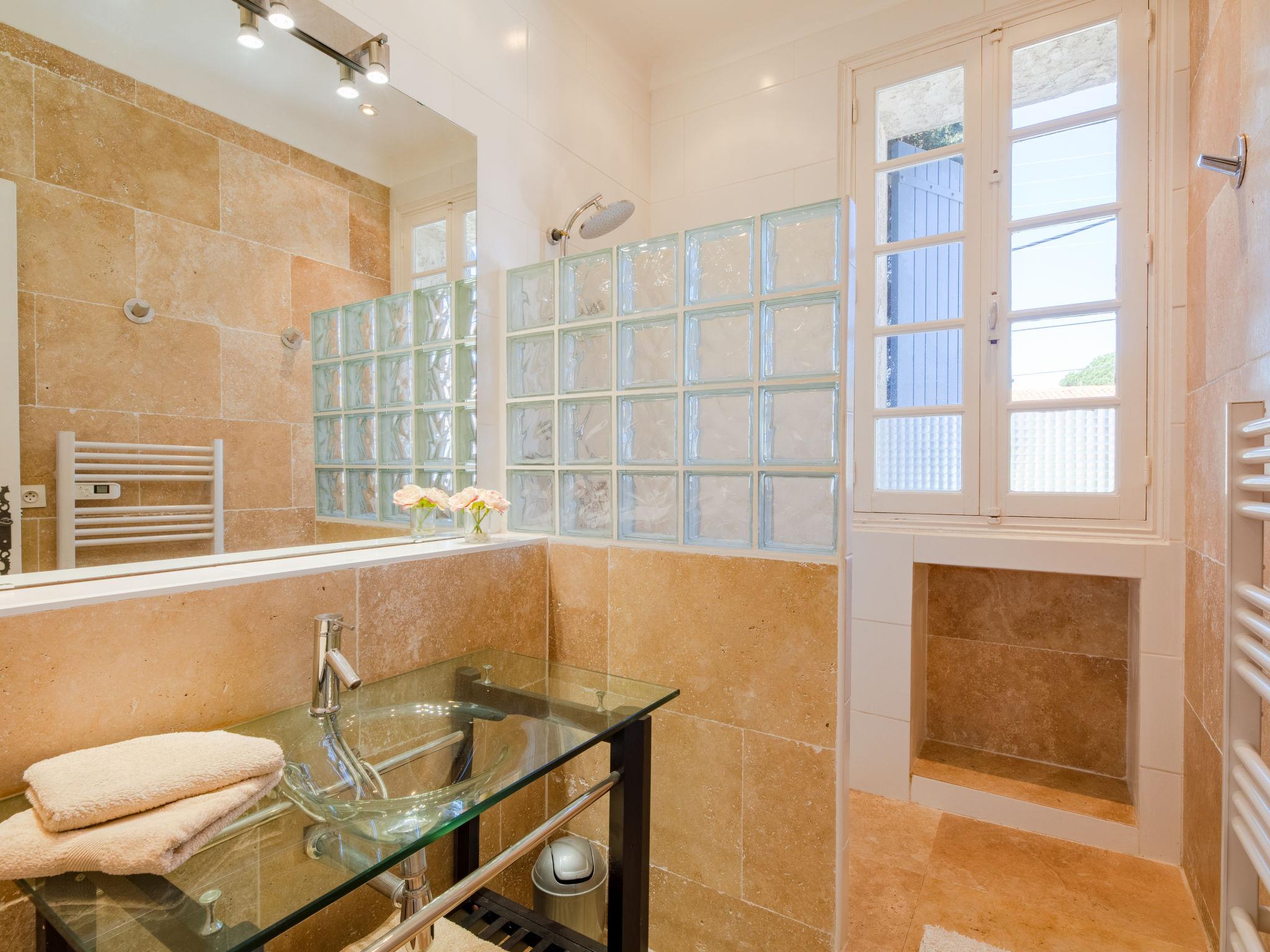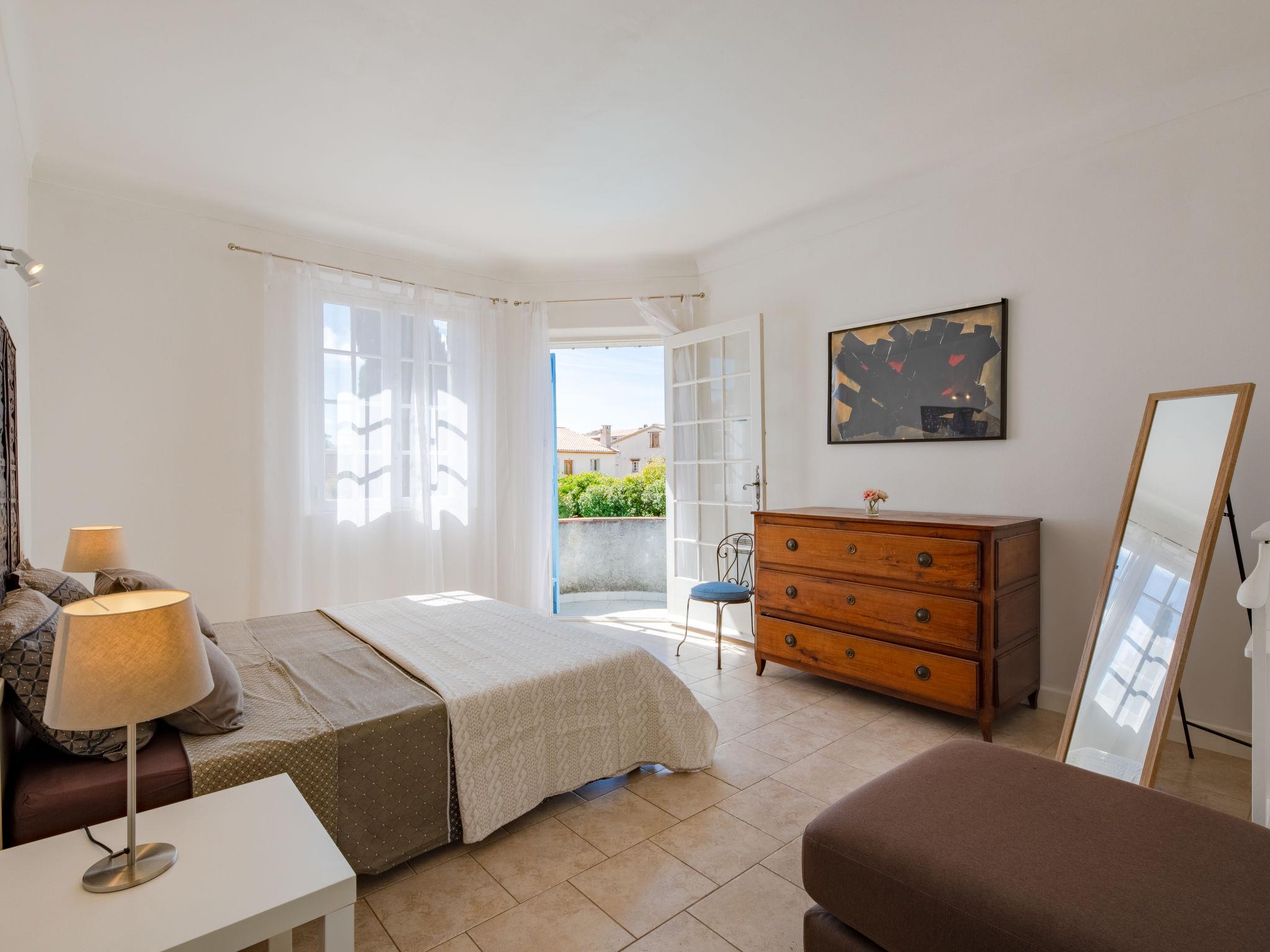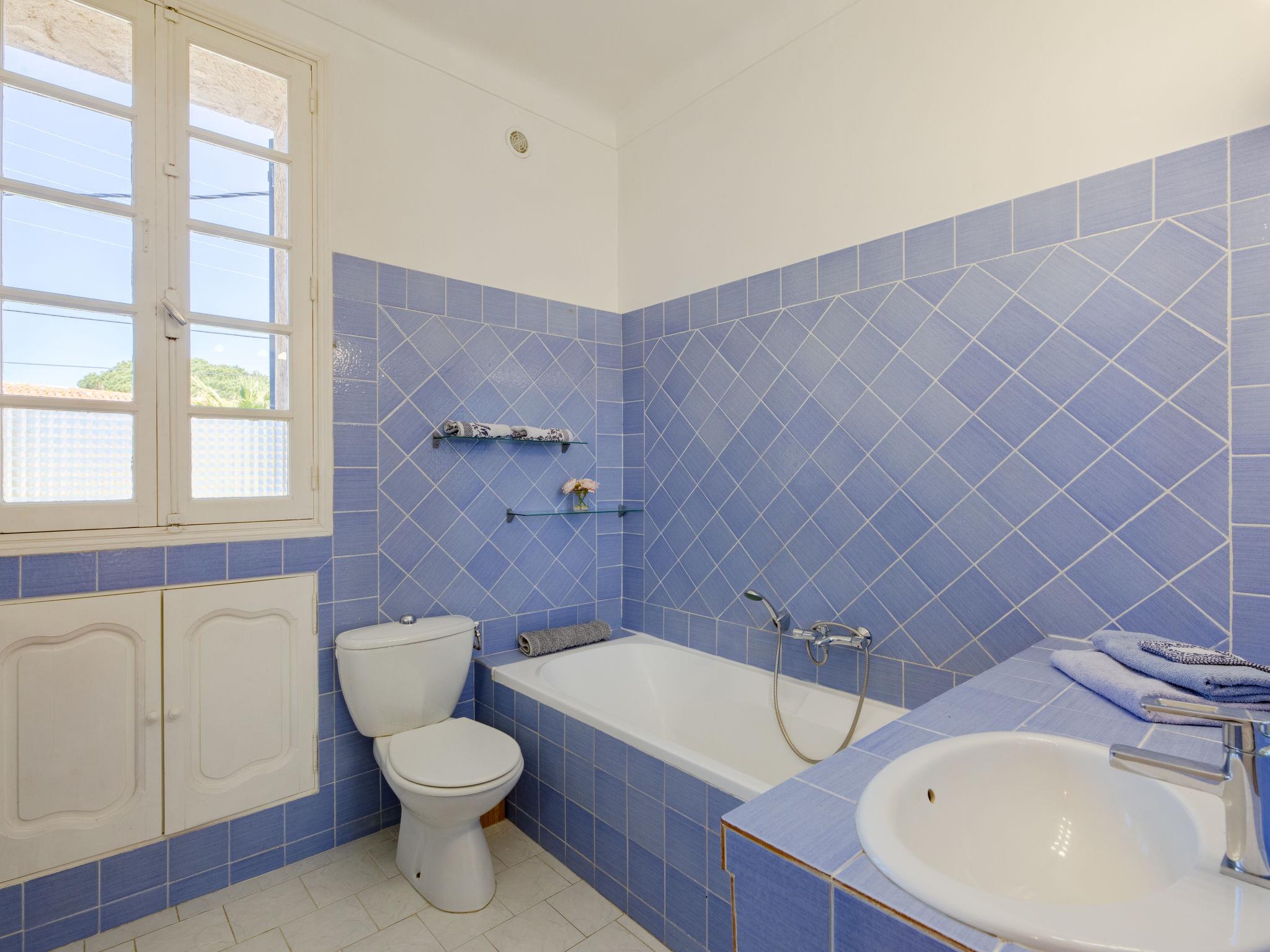 5-room house 200 m2 on 2 levels, south facing position. Beautiful furnishings: lounge with 1 double sofabed (1 x 160 cm, length 190 cm), satellite TV, international TV channels and flat screen. Exit to the garden, to the terrace. Living/dining room. Exit to the garden, to the terrace, to the swimming pool. Kitchen (4 hot plates, oven, dishwasher, toaster, kettle, microwave, freezer, electric coffee machine). Sep. WC. Heating, air-conditioning. Upper floor: 1 room with 1 french bed (140 cm, length 190 cm), air conditioning. 1 room with 2 beds (90 cm, length 190 cm), hand-basin and air conditioning. 1 room with 2 beds (80 cm, length 190 cm), air conditioning. With Dressing room. Bath/WC, shower, sep. WC. Terrace, south facing position. Terrace furniture. Facilities: washing machine. Internet (WiFi, free). Parking at the house. Please note: non-smokers only. Maximum 1 pet/ dog allowed. Smoke alarm. 83115002812SM