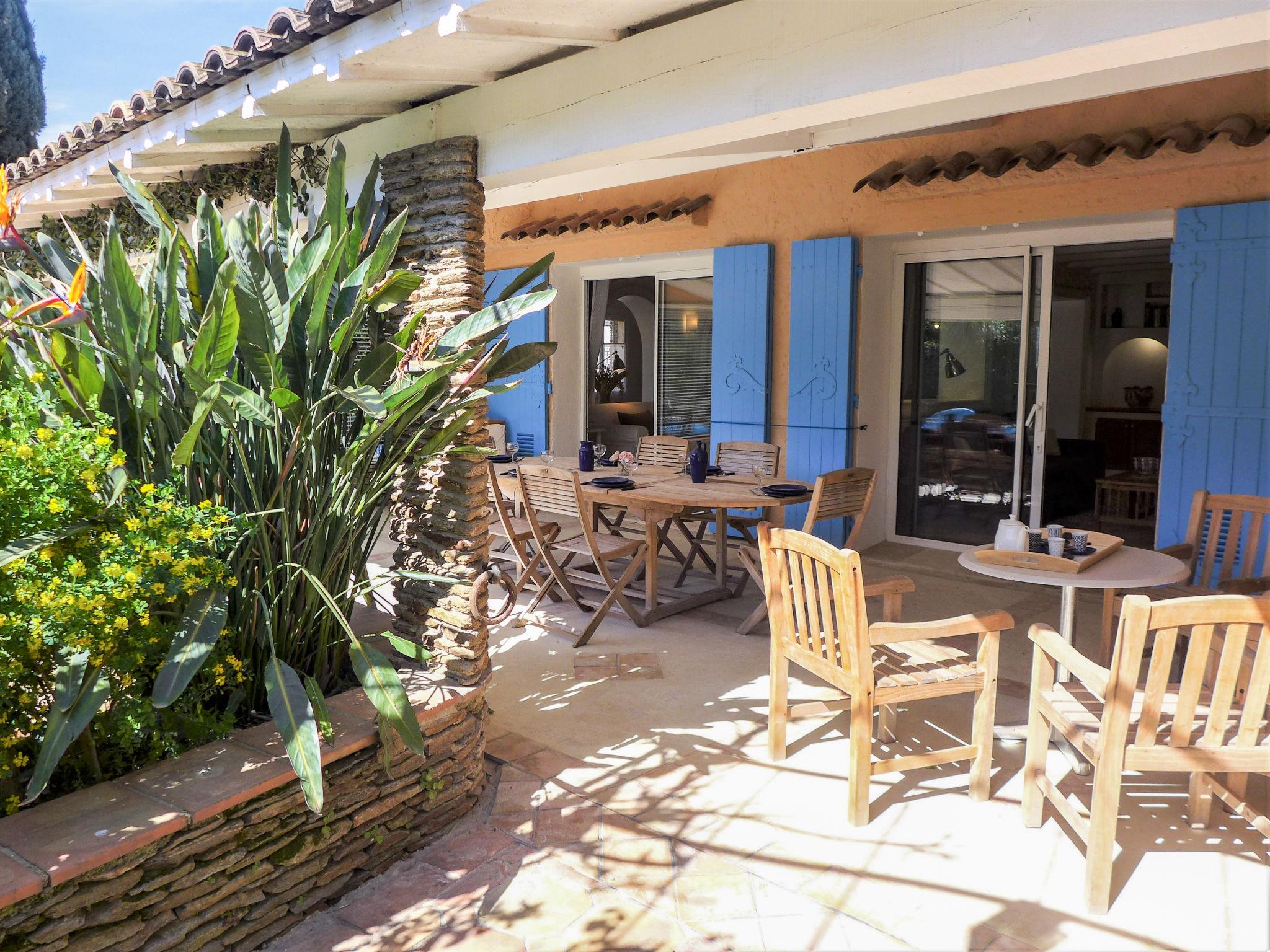 Beautiful, very comfortable terraced house "Villa Cyrnos". In the centre of Sainte Maxime, excellent location: right in the centre but still quiet, in the heart of the city, traffic calmed area, 500 m from the sea, 500 m from the beach. Private: garden 450 m2 (fenced) wildlife garden, swimming pool (12 x 6 m, depth 240 - 260 cm, seasonal availability: 01.May. - 15.Oct.). Outdoor shower, barbecue. In the house: fitness room. Parking at the house. Shop, grocery, supermarket, bakery 200 m, bus stop 350 m, sandy beach "Centre Ville" 500 m. Sports harbour 500 m, golf course (18 hole) 4 km, tennis 2 km. Nearby attractions: Aqualand 2.5 km.