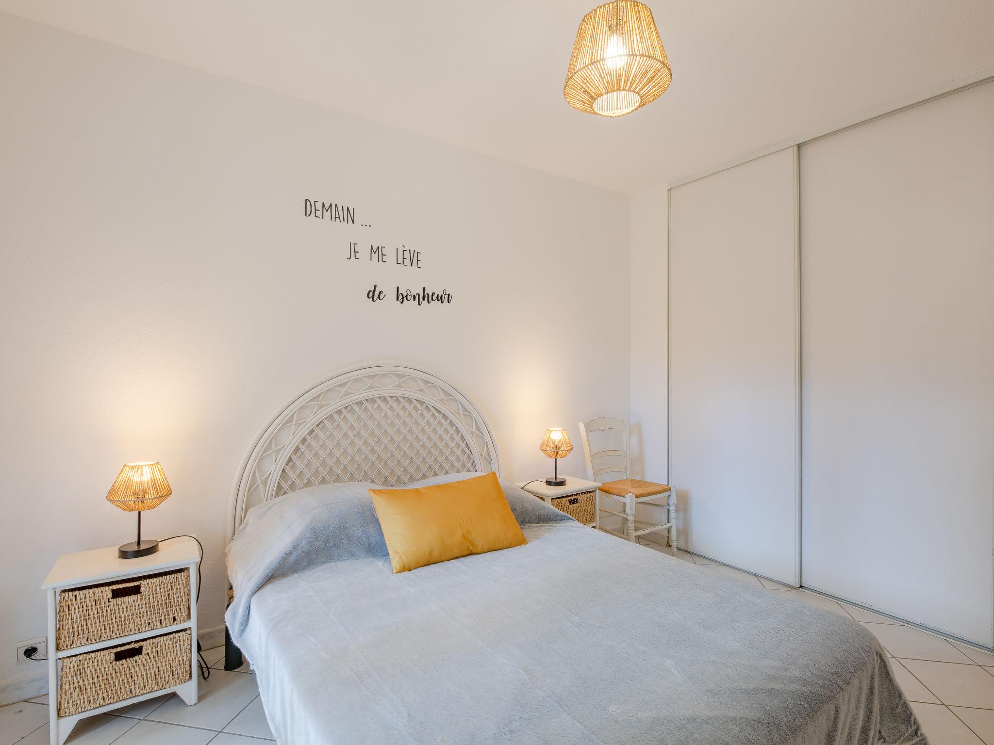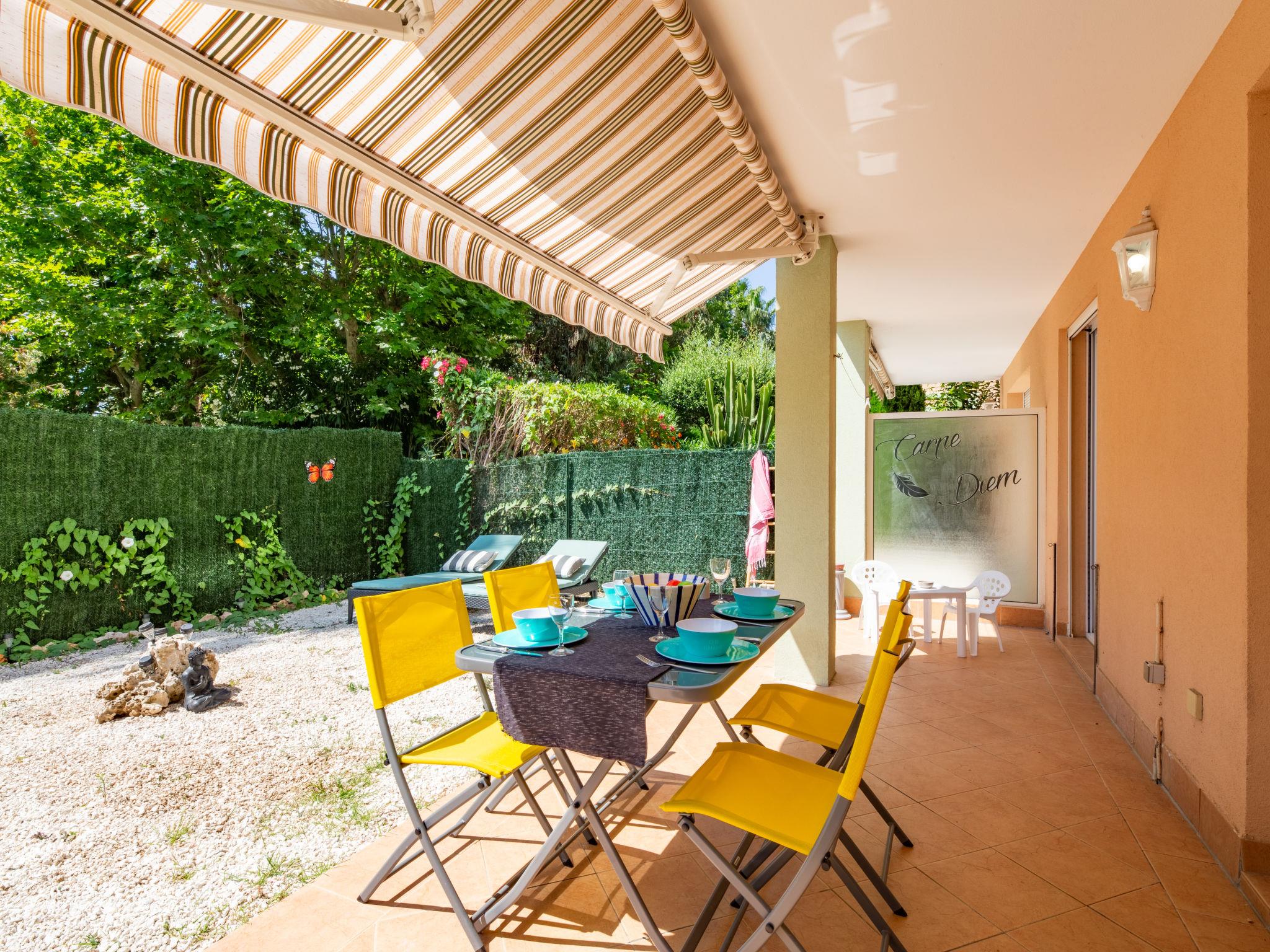 2-room apartment 45 m2, on the ground floor. Bright, beautiful furnishings: living/dining room with 1 double sofabed (1 x 140 cm, length 190 cm), TV (flat screen). Exit to the terrace, to the patio. 1 room with 1 french bed (140 cm, length 190 cm). Exit to the terrace, to the patio. Open kitchen (oven, 4 ceramic glass hob hotplates, toaster, kettle, microwave, freezer, electric coffee machine). Exit to the terrace. Shower, sep. WC. Electric heating. Terrace 15 m2, roofed, west facing position, patio 15 m2. Terrace furniture. Facilities: washing machine, iron, hair dryer. Internet (WiFi, free). Please note: non-smokers only. Maximum 1 pet/ dog allowed. Smoke alarm. Offer by a private individual according to Art. 155, IV of CGI. 83115005114HT