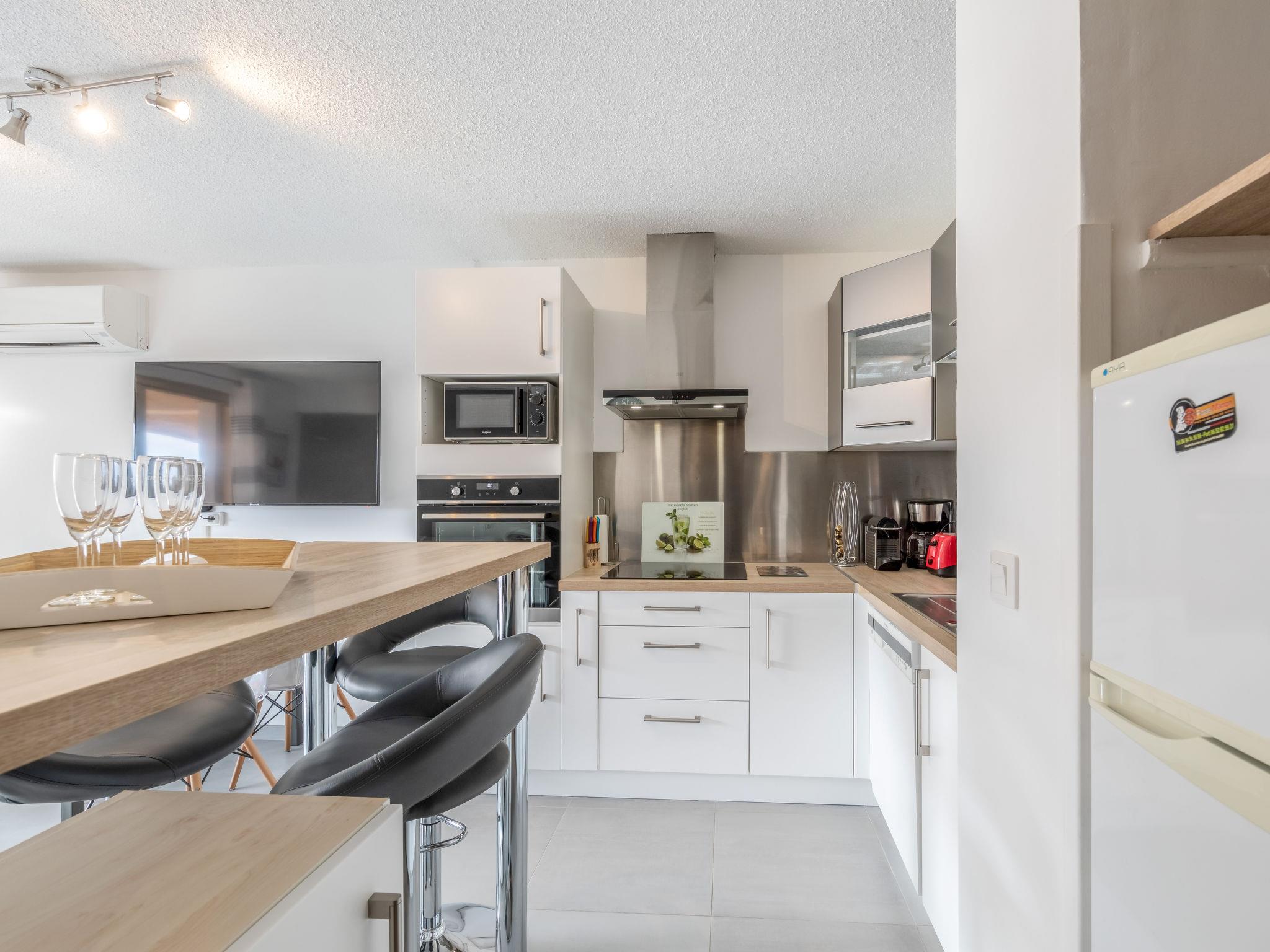 3-room apartment 43 m2 on 3rd floor, south facing position. Renovated, practical and beautiful furnishings: living/dining room with TV. Exit to the terrace. 1 room with 1 french bed (1 x 140 cm, length 190 cm), TV. Exit to the terrace. 1 small room with 1 x 1 bunk beds (90 cm, length 190 cm), 1 french bed (1 x 140 cm, length 190 cm). Exit to the terrace. Open kitchen (oven, dishwasher, 4 induction hot plates, toaster, kettle, microwave, freezer, electric coffee machine, Capsules for coffee machine (Nespresso) extra). Shower, sep. WC. Heating, air-conditioning. Terrace 20 m2. Terrace furniture. Facilities: washing machine, iron. Internet (WiFi, free). Parking, garage space n 253, height 180 cm, width 250 cm. Please note: non-smokers only. Maximum 1 pet/ dog allowed. Smoke alarm. 83115003032JD