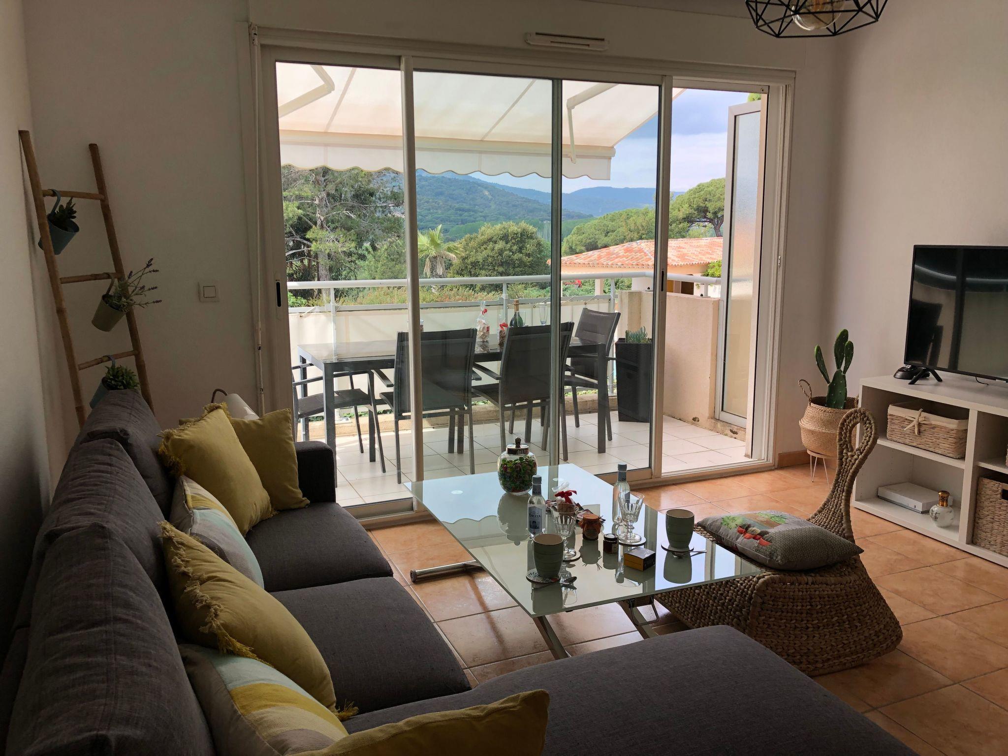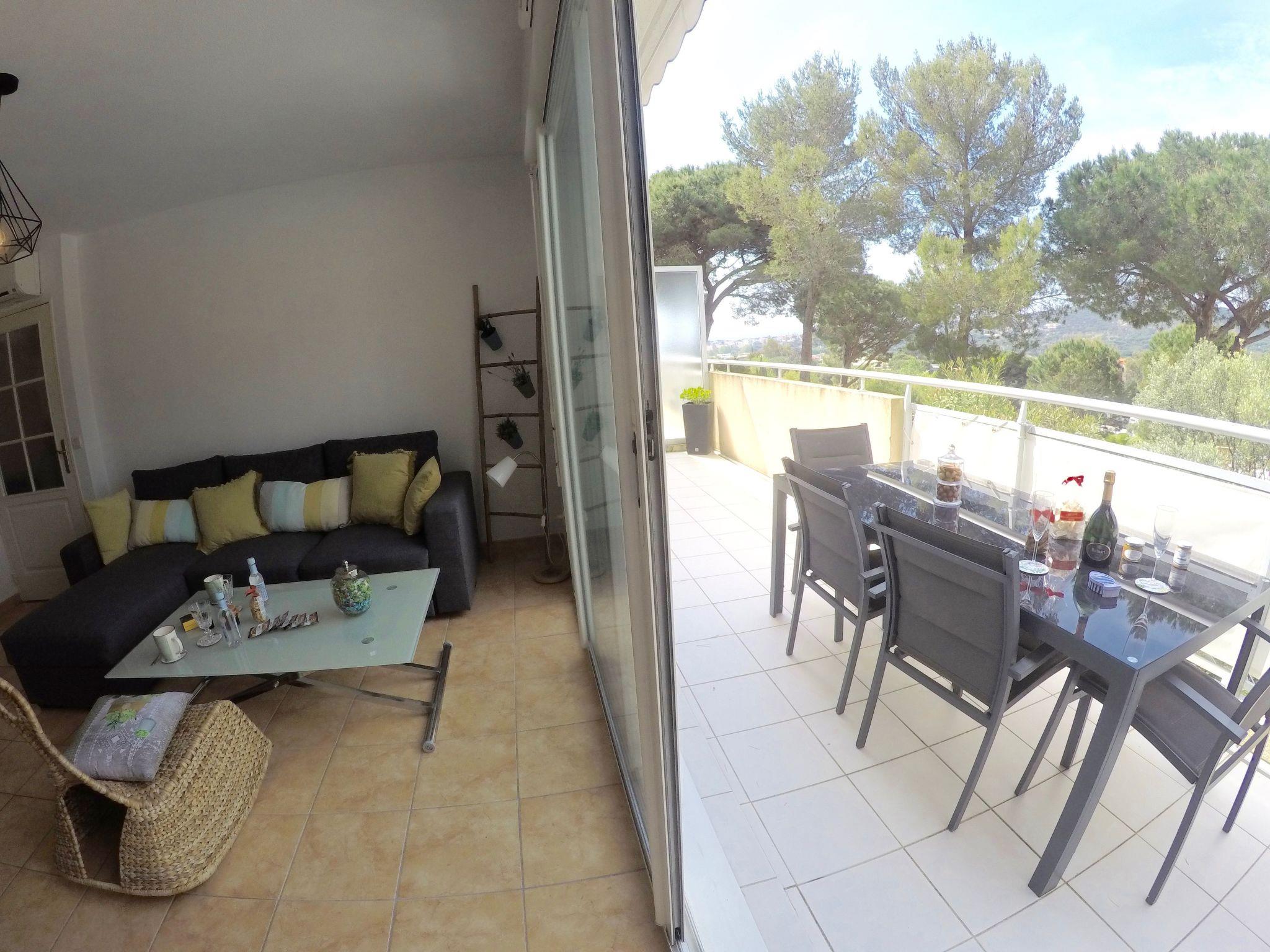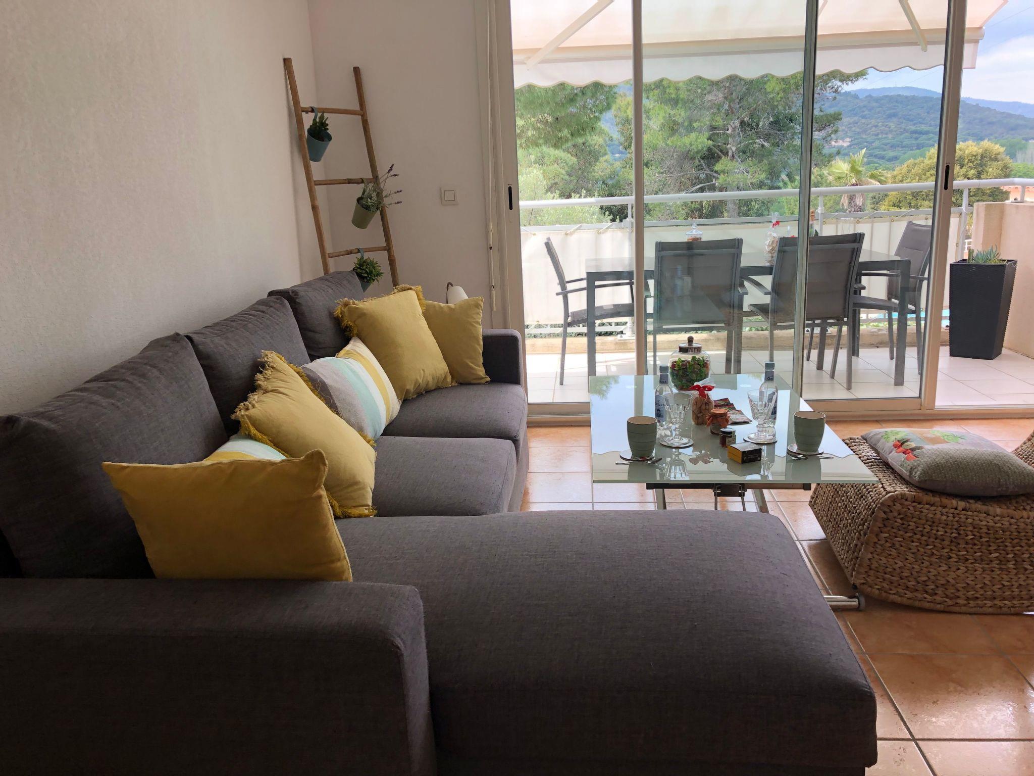 Outside, enjoy a sunny terrace equipped with two deckchairs, an awning to protect from the sun, an outdoor dining table and an electric barbecue. The residence also has a communal swimming pool below, and a private parking space is available close to the flat. And don't forget the breathtaking views of the Massif des Maures that you can admire while enjoying the tranquillity of the surroundings.