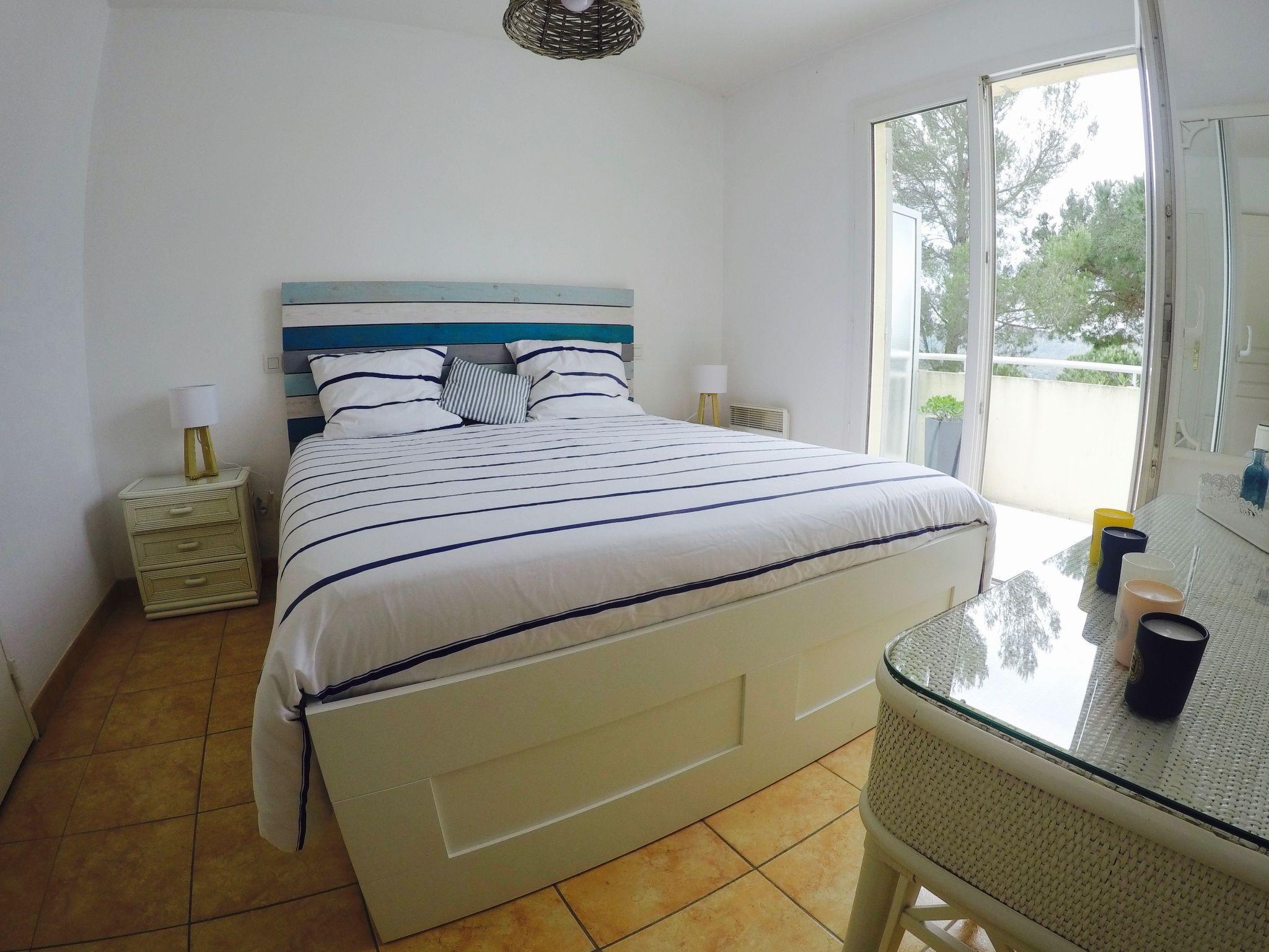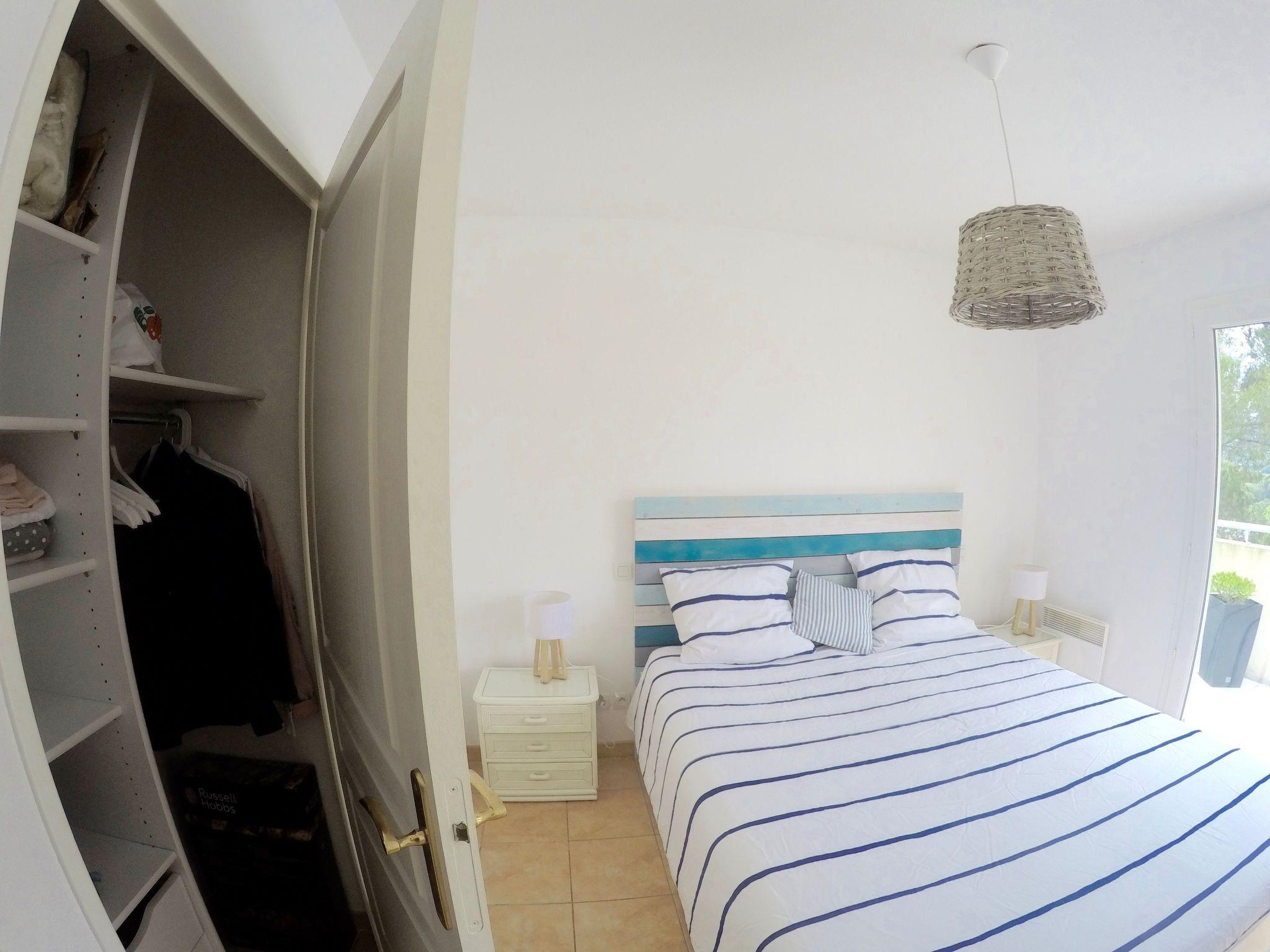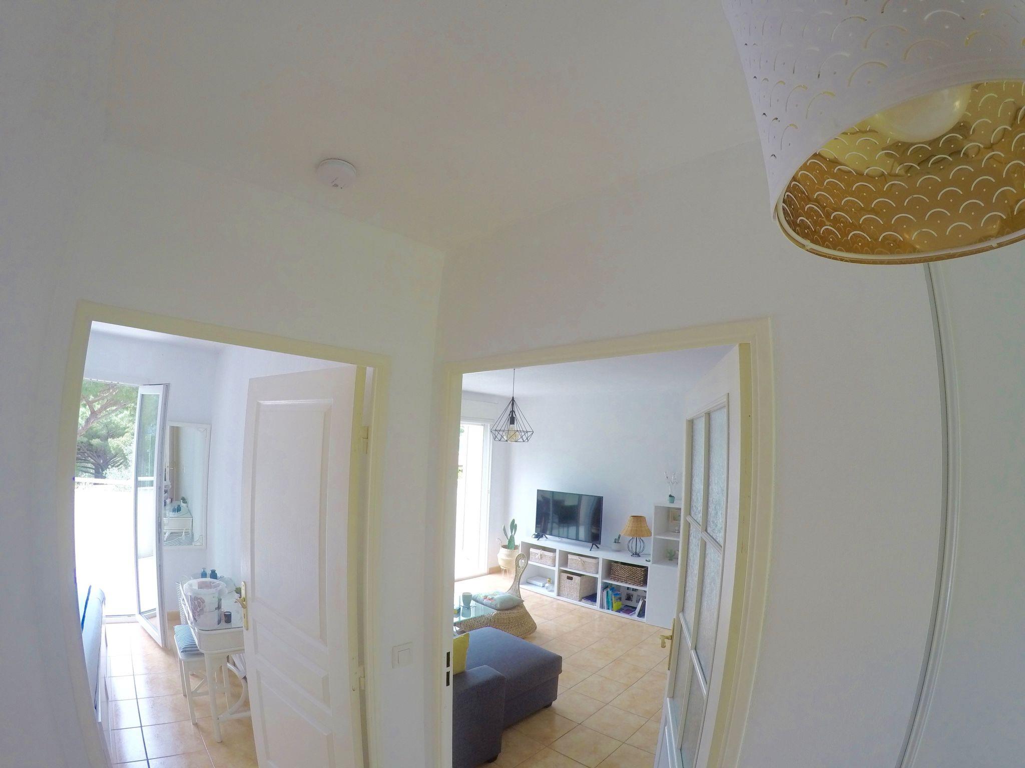 Outside, enjoy a sunny terrace equipped with two deckchairs, an awning to protect from the sun, an outdoor dining table and an electric barbecue. The residence also has a communal swimming pool below, and a private parking space is available close to the flat. And don't forget the breathtaking views of the Massif des Maures that you can admire while enjoying the tranquillity of the surroundings.