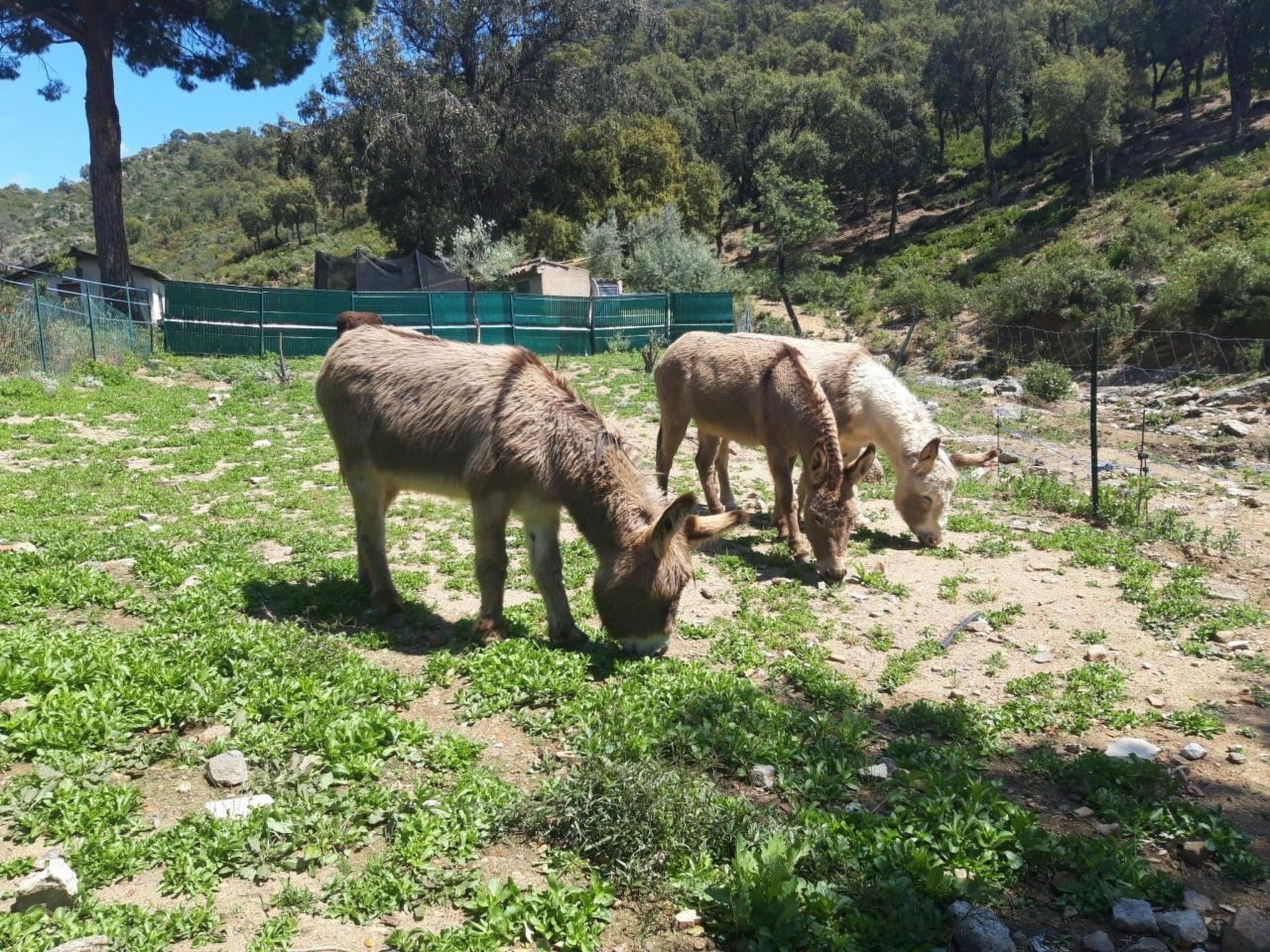 Other sports and leisure activities: "Les Amandiers" offers young and old a variety of opportunities to spend time. The villa has a large swimming pool (10 x 5 metres) with numerous sun loungers for sunbathing. The beach volleyball court, a petanque court and a table tennis table are also accessible to all tenants. A large trampoline and a sandpit are available for our younger guests, making a holiday at "Les Amandiers" ideal for families with children. The property is also suitable for holidays with your dog, as most of the rental properties have a fenced garden / fenced terrace. The property itself is also fully fenced. Of course, our tenants can also take a short walk up the property's own hill. Once at the top, you can enjoy the wonderful view of the sea. The holiday properties in the "Les Amandiers" villa are suitable for families who would like to spend their holidays together but still live in separate properties. All holiday homes are fully equipped and have free WLAN, a detailed description can be found under the respective property. We are happy to provide baby cots and highchairs for small children on request. There are also six donkeys on the property, which are usually out and about during the day grazing in the large, separately fenced area. All the animals are very people orientated and are always happy to have a little visit. The nearest shopping facilities are about 3 minutes away by car. There is a large shopping centre just a few minutes from the site, which caters for practically every need. If you want a fresh French croissant or baguette for breakfast every day, you can also get this in one of the neighbouring bakeries, which have a large selection.