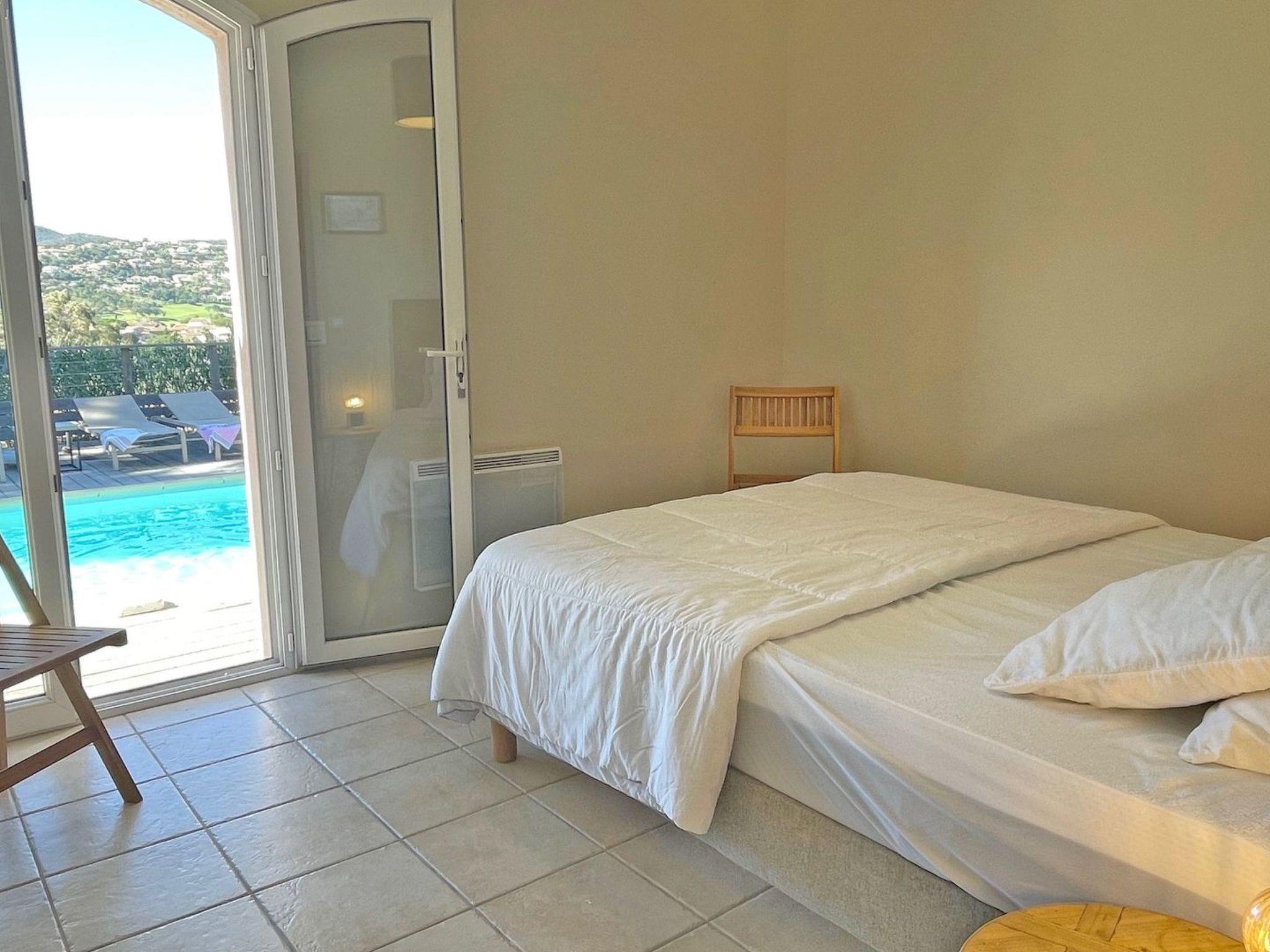 Situated on a hillside facing the Domaine du Golf de Sainte-Maxime, this beautiful villa, furnished and decorated to a high standard, has 4 bedrooms and can comfortably accommodate up to 8 people. It also has a jacuzzi. It is located in a very quiet residential area just a few minutes from Plage de la Nartelle. The town centre can be reached in just a few minutes by car, with no risk of traffic jams.