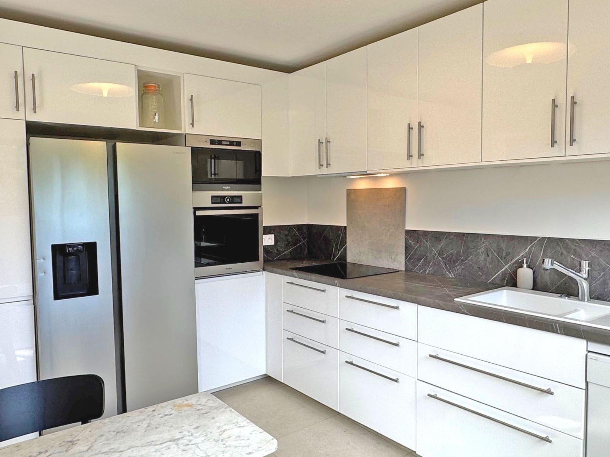 - Kitchen with American fridge, dishwasher, oven, microwave, Nespresso machine, induction hob, crockery and cutlery