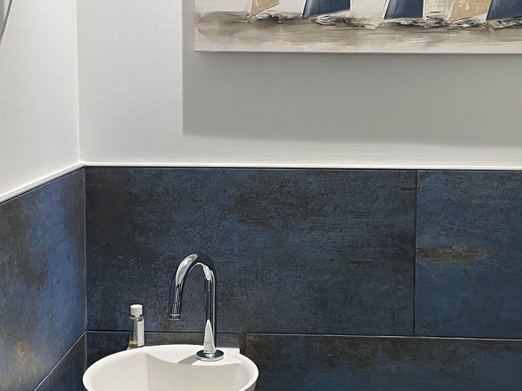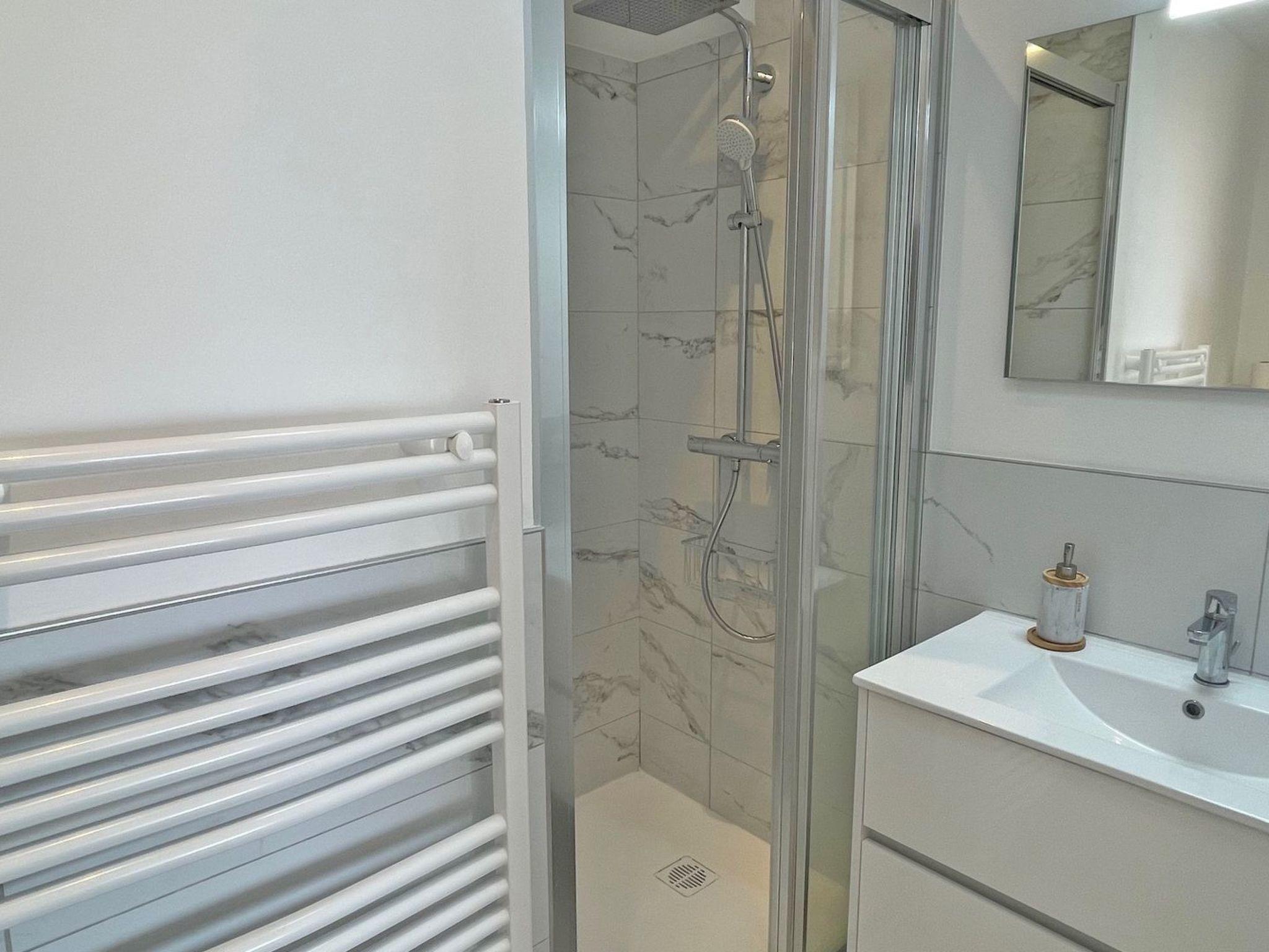 - Air-conditioned bedroom 2 with double bed 160cm (also sea view when lying down!), television, wardrobes and en suite shower room: shower, vanity unit, heated towel rail