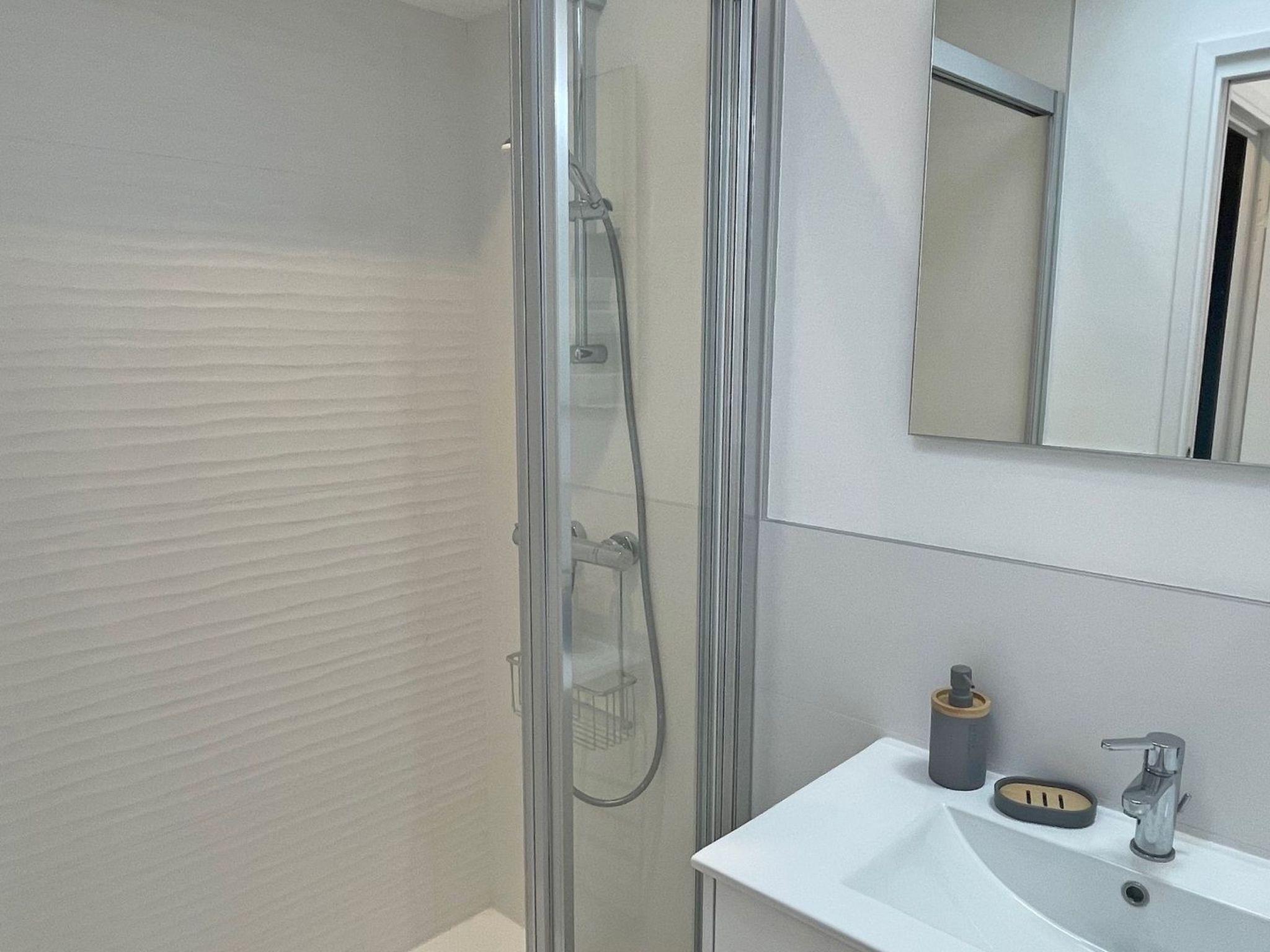 - Air-conditioned bedroom 1 with 160cm double bed (sea view when lying down!), television, wardrobes and en suite shower room: shower, vanity unit, towel-drying WC.