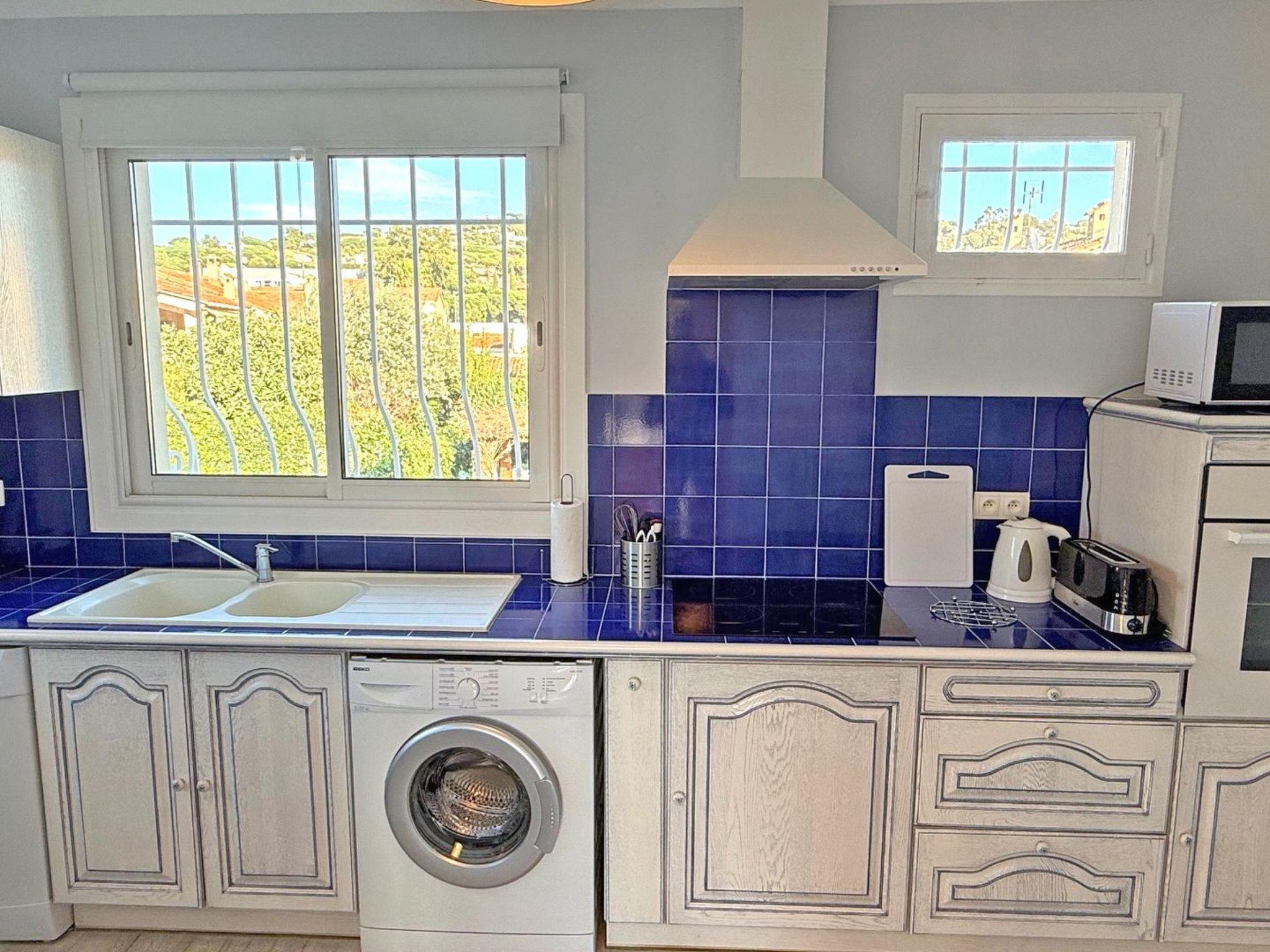 - Separate kitchen with fridge/freezer, induction hob, oven, microwave, filter coffee maker and Senséo coffee machine, dishwasher, washing machine, crockery and cutlery.