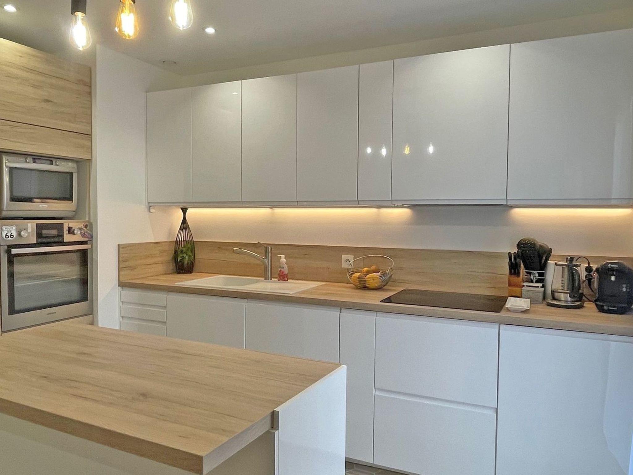 - Open-plan kitchen with 3-burner induction hob, fridge/freezer, oven, microwave, dishwasher, filter/expresso/cappuccino/frothy milk/hot water maker, etc.