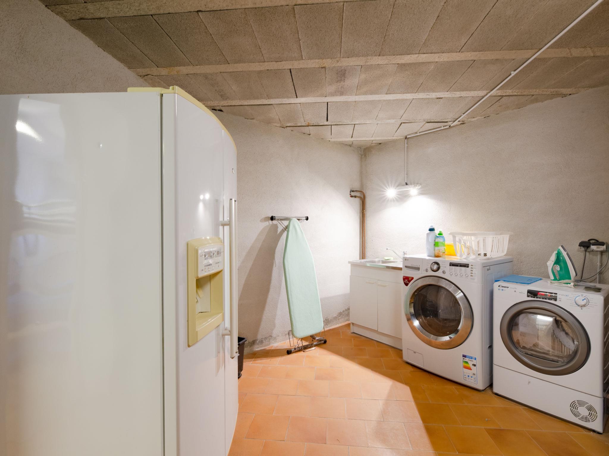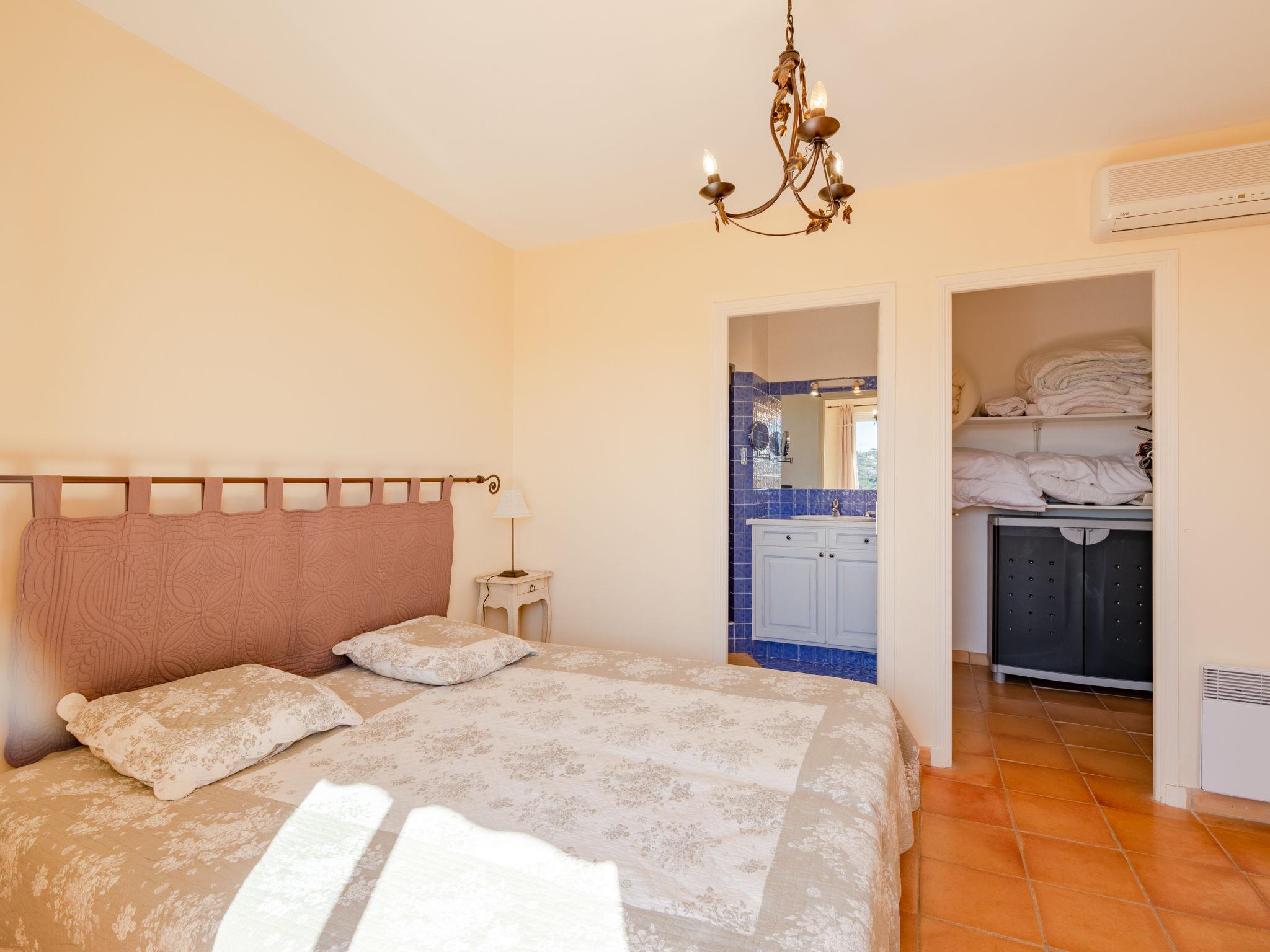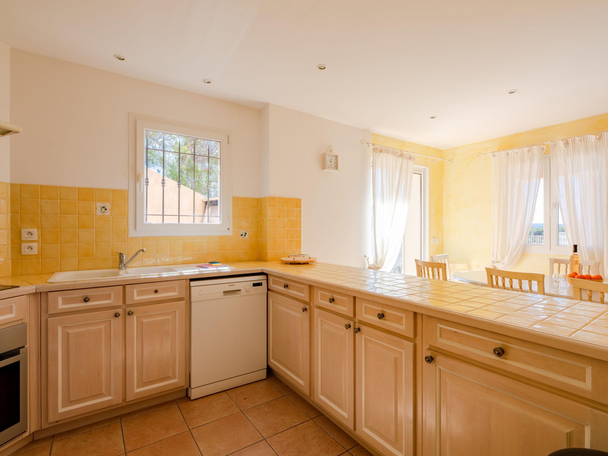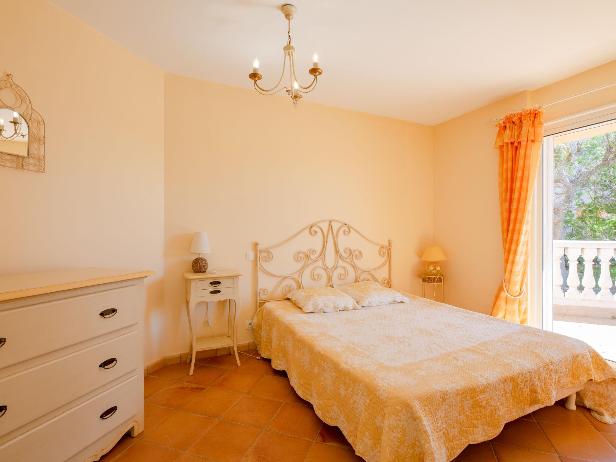 "La Figuière", 5-room house 180 m2 on 3 levels. Bright, tasteful furnishings: living/dining room with dining table, satellite TV, DVD and air conditioning. Exit to the terrace. 1 room with 1 french bed (160 cm), bath/WC. Open kitchen (oven, dishwasher, 3 induction hot plates, toaster, microwave, freezer, electric coffee machine). Sep. WC. On the lower ground floor: 1 room with 2 x 2 bunk beds, shower. Upper floor: 1 room with 2 beds, shower/WC and air conditioning. Exit to the balcony. 1 room with 1 french bed (160 cm), shower/WC and air conditioning. Exit to the balcony. Electric heating. Balcony, terrace partly roofed. Terrace furniture, barbecue, deck chairs. Facilities: washing machine, dryer, iron. Internet (WiFi, free). Please note: smoke alarm. When booking at the rate for 6 persons not available: the bedroom with bunk bed and shower. Bed layout is flexible. There are more sleeping options available than the maximum number of people allowed which may, however, not be exceeded. 83115000475DP