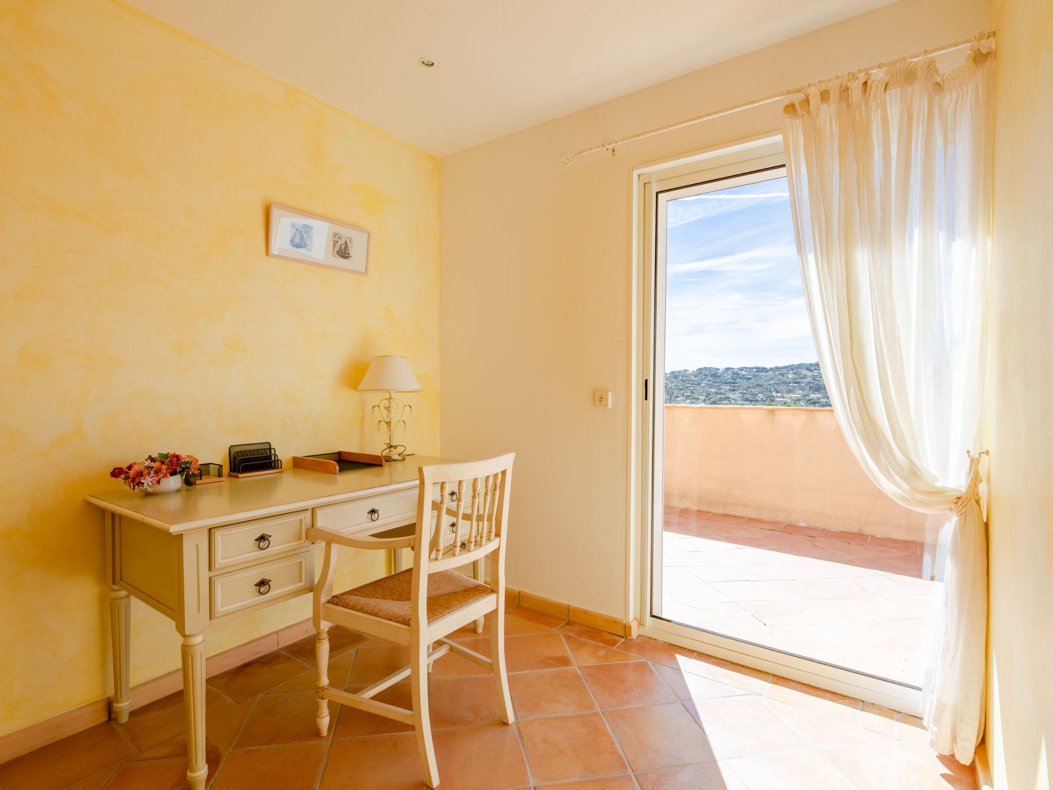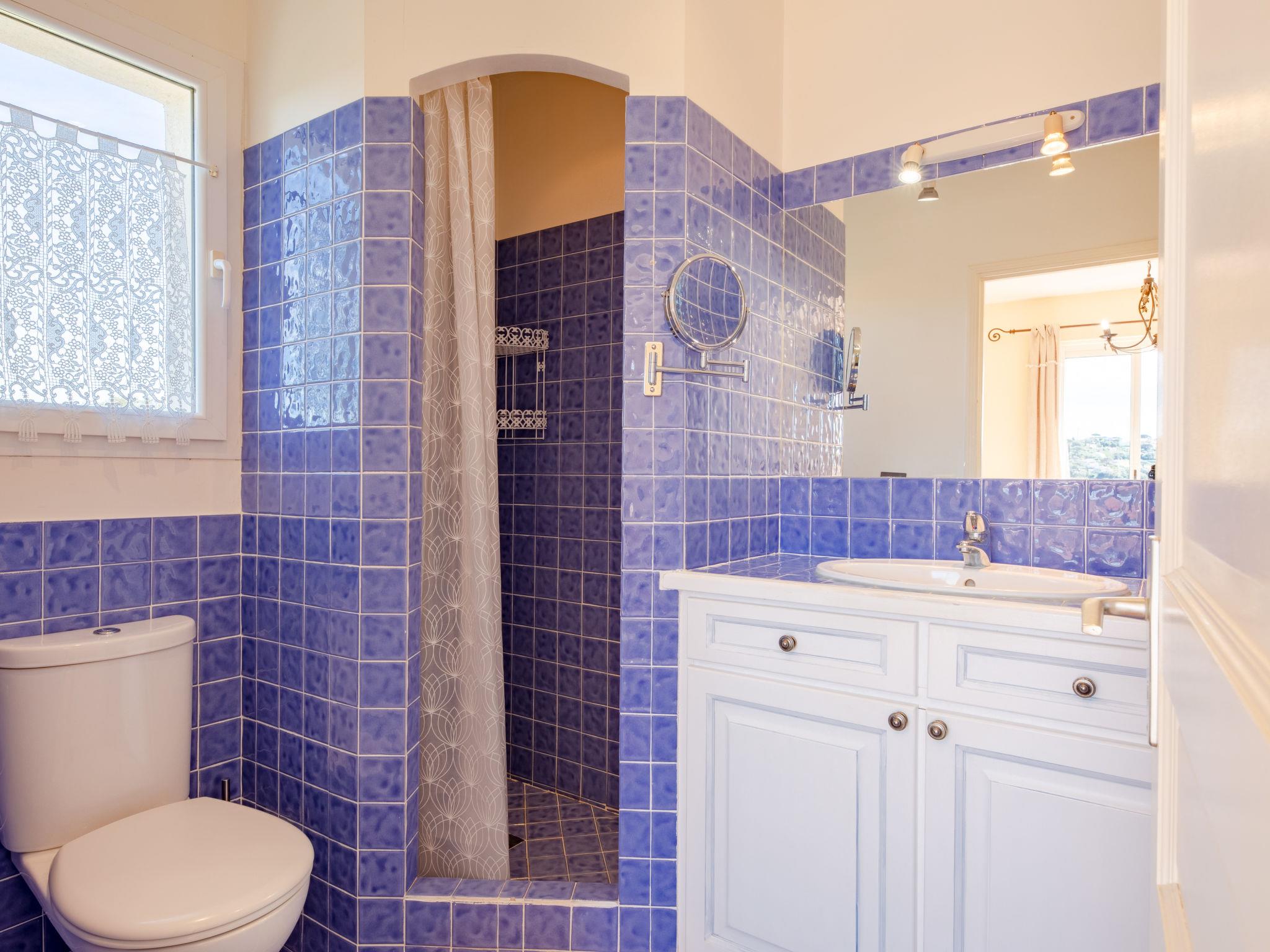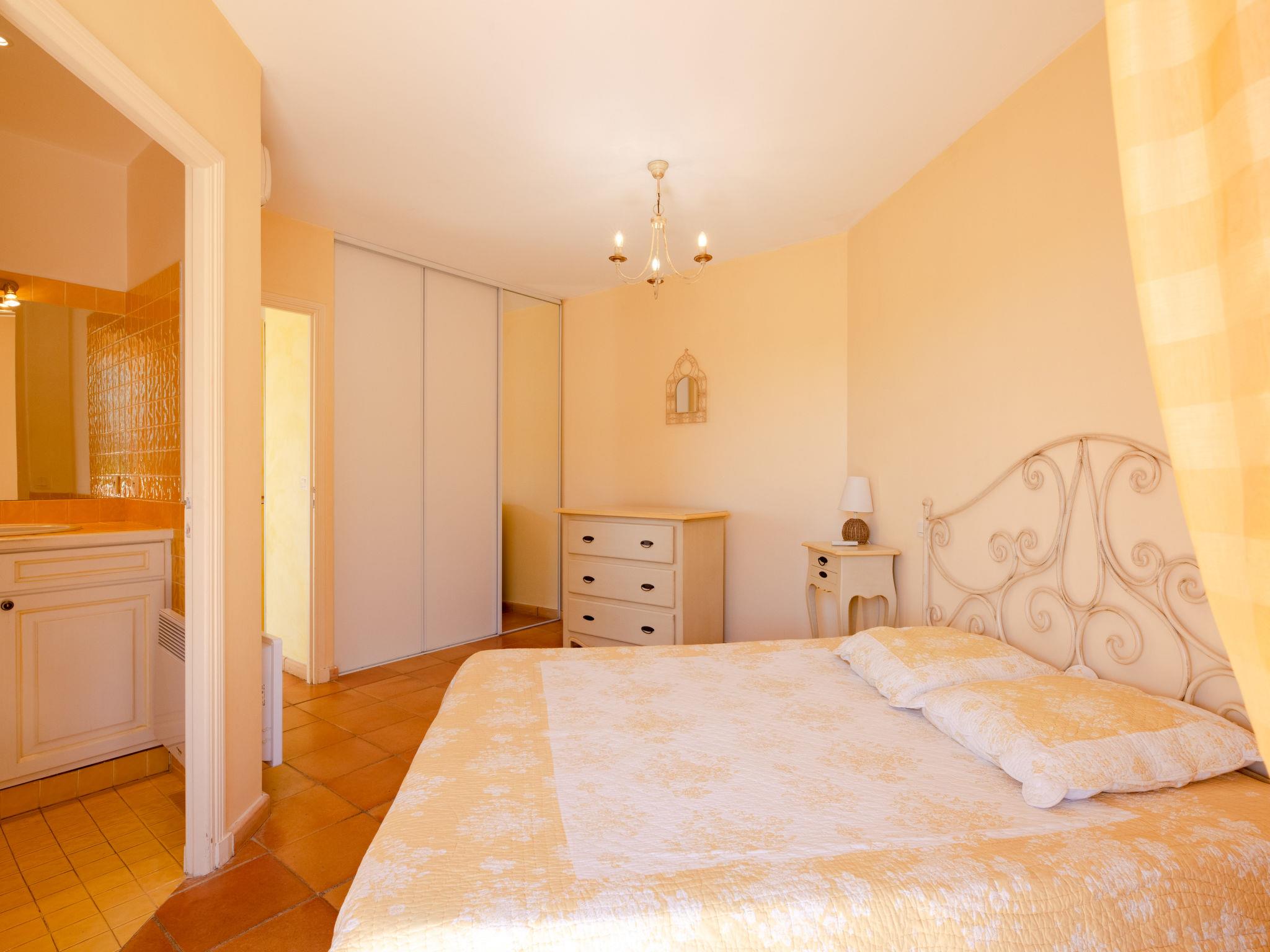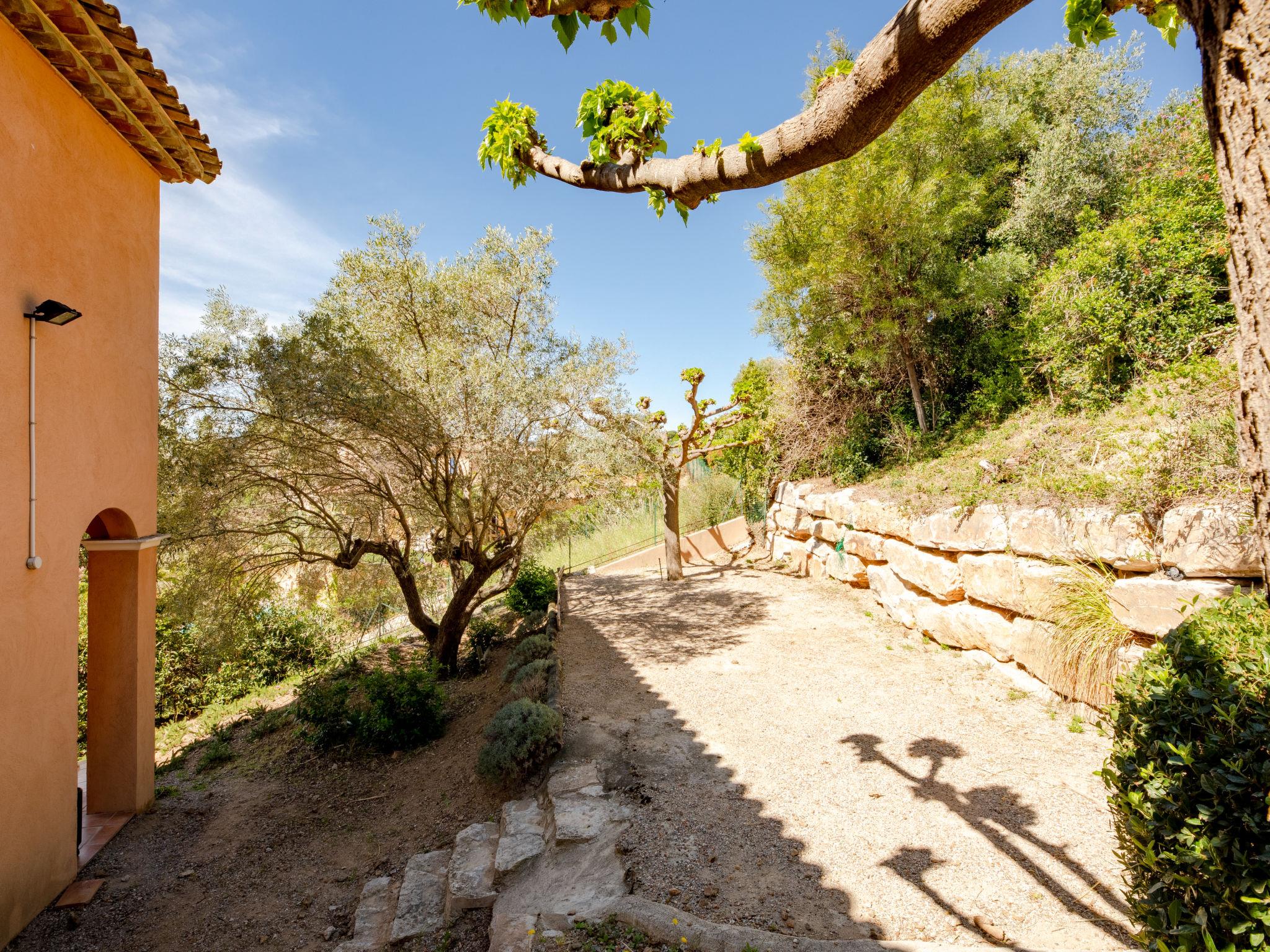 "La Figuière", 5-room house 180 m2 on 3 levels. Bright, tasteful furnishings: living/dining room with dining table, satellite TV, DVD and air conditioning. Exit to the terrace. 1 room with 1 french bed (160 cm), bath/WC. Open kitchen (oven, dishwasher, 3 induction hot plates, toaster, microwave, freezer, electric coffee machine). Sep. WC. On the lower ground floor: 1 room with 2 x 2 bunk beds, shower. Upper floor: 1 room with 2 beds, shower/WC and air conditioning. Exit to the balcony. 1 room with 1 french bed (160 cm), shower/WC and air conditioning. Exit to the balcony. Electric heating. Balcony, terrace partly roofed. Terrace furniture, barbecue, deck chairs. Facilities: washing machine, dryer, iron. Internet (WiFi, free). Please note: smoke alarm. When booking at the rate for 6 persons not available: the bedroom with bunk bed and shower. Bed layout is flexible. There are more sleeping options available than the maximum number of people allowed which may, however, not be exceeded. 83115000475DP