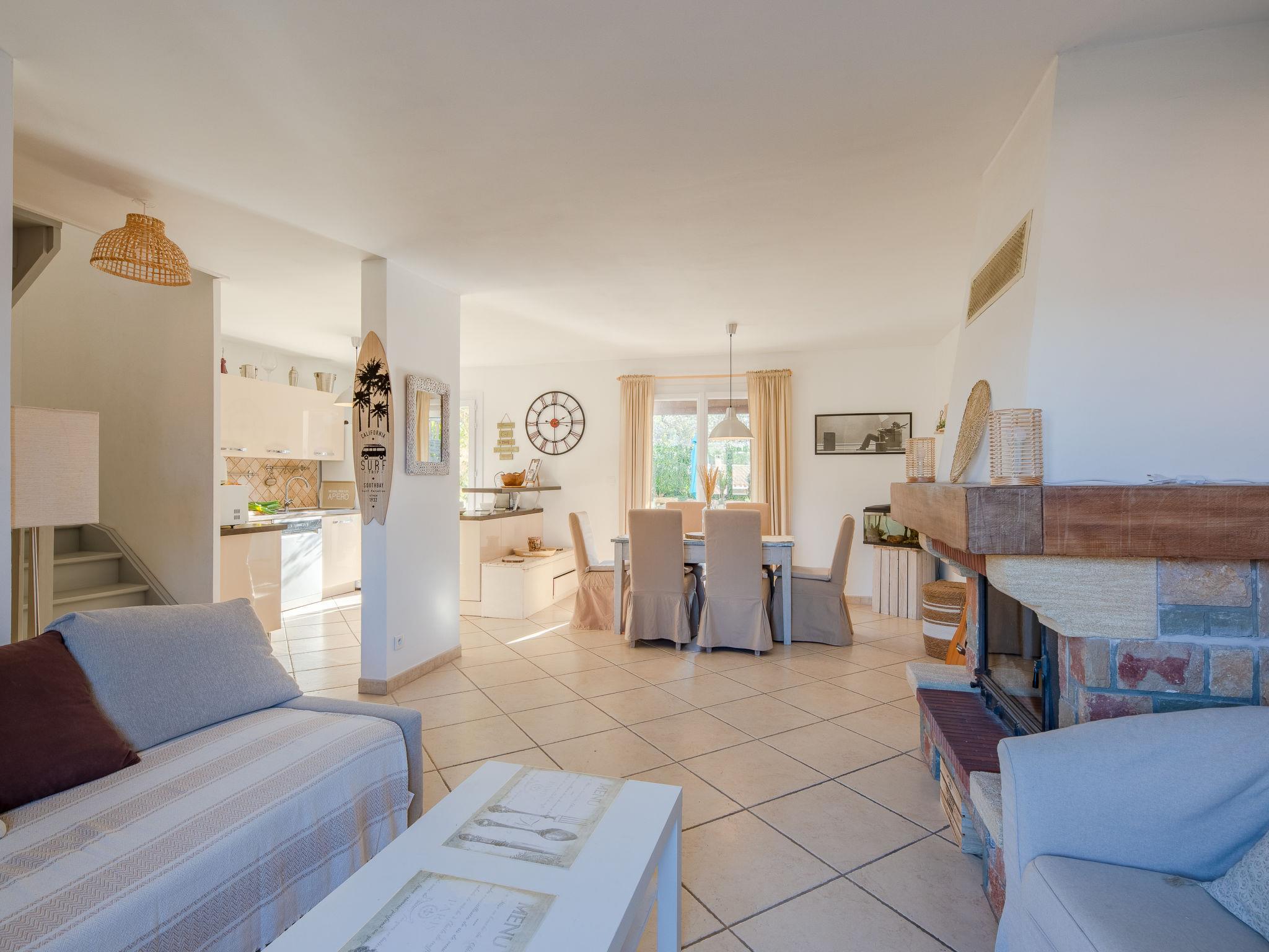 "Le Laurier", 4-room terraced house 80 m2 on 3 levels. Bright, comfortable furnishings: living/dining room with open-hearth fireplace (only for decoration), TV and air conditioning. Exit to the terrace. Open kitchen (oven, dishwasher, 4 ceramic glass hob hotplates, kettle, microwave, freezer, electric coffee machine). Shower/WC. On the lower ground floor: luggage room. Upper floor: 1 room with 2 beds (70 cm, length 190 cm). 1 room with 1 bed (70 cm, length 190 cm), 1 sleeping facility (90 cm, length 190 cm). 1 room with 1 french bed (160 cm, length 200 cm), air conditioning. Bath/WC. Electric heating. Terrace 20 m2, south facing position. Facilities: washing machine. Internet (WiFi, free). Parking (1 car). Please note: non-smoking house. Smoke alarm. Offer by a private individual according to Art. 155, IV of CGI. 83115004935MX