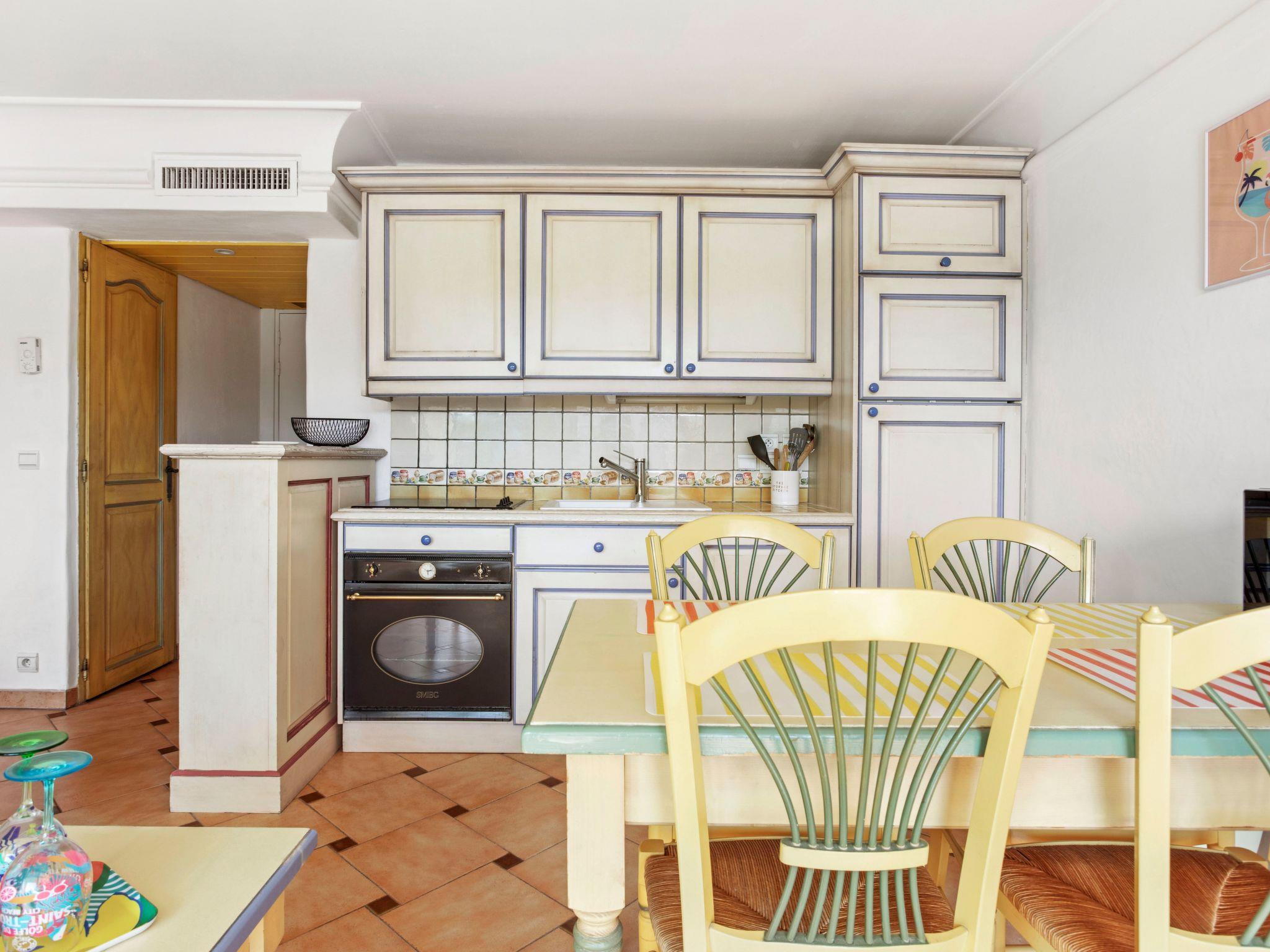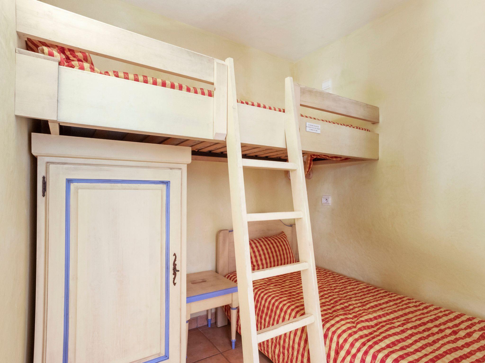 Decorated in Provençal style, the 35 m² flat has three fully furnished and equipped rooms for up to 4 people. It has a kitchenette (ceramic hob, oven, dishwasher, microwave, toaster), a living/dining room, a television, free Wi-Fi via fibre optic, a cabin with two bunk beds for children, a bedroom with a 1.60 m-wide bed, a bathroom (bath, washbasin), separate WC and a large terrace with garden furniture, extending the living space. A number of features have recently been upgraded.