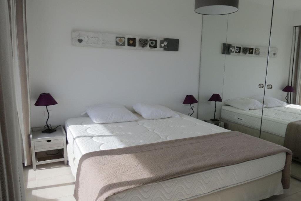 The apartment is ideal for beach holidays and offers 48 m² of living space. There is a fully equipped kitchen with a stove, refrigerator, oven, and microwave. The cozy living area, with elegant furniture, features a dining table and sofa with a TV. There is also a bedroom with a double bed and one with two single beds. Furthermore, there is a bathroom with a shower and a laundry room with a washing machine. A terrace with garden furniture is also part of the property, ensuring relaxing hours. A reserved parking space is available for your convenience.