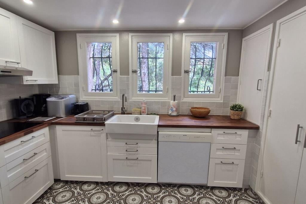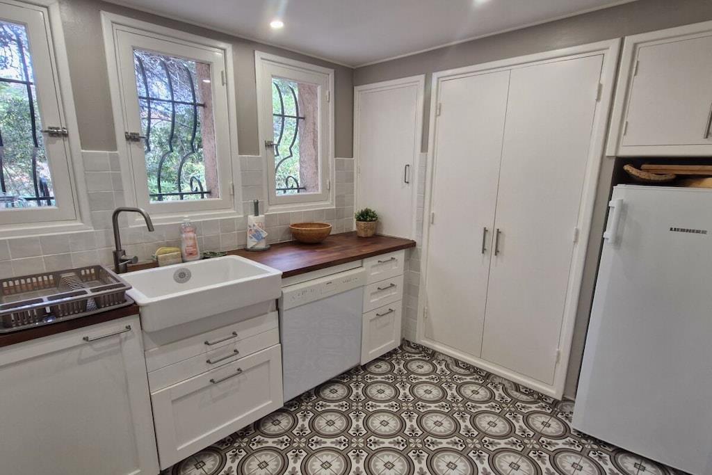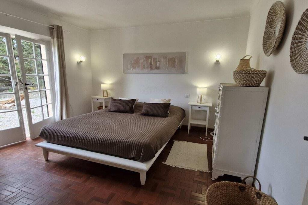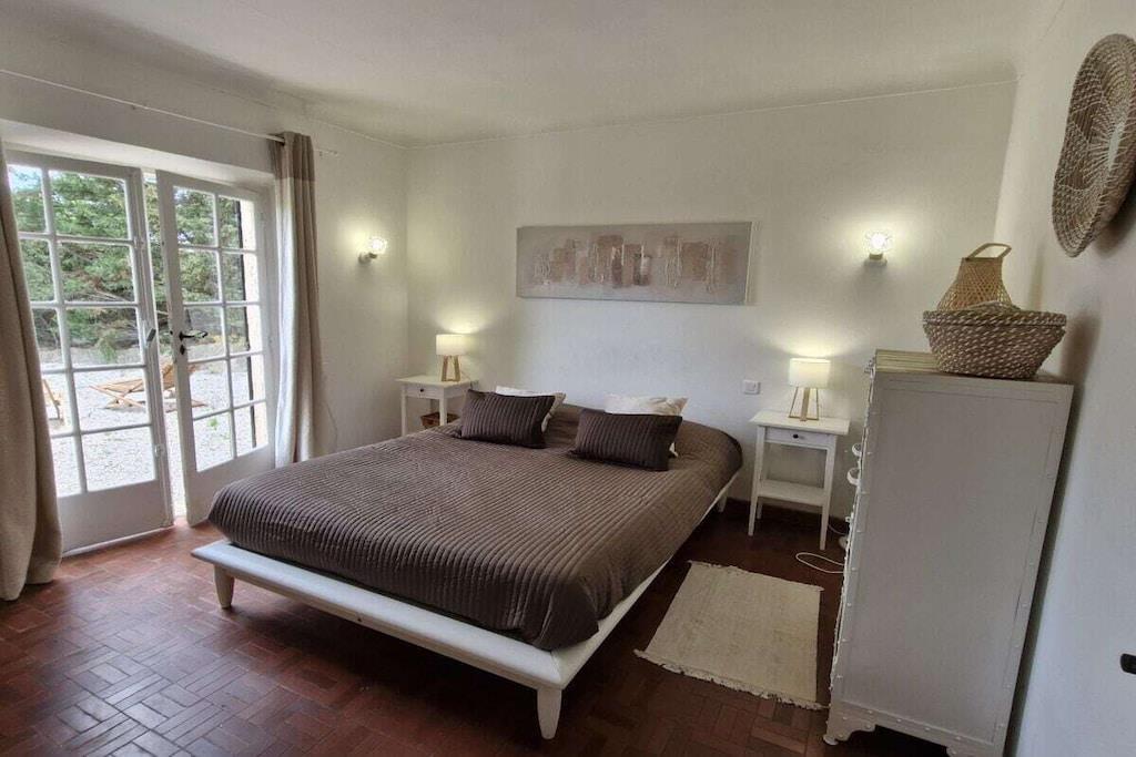 This beautiful villa, surrounded by greenery and featuring four main rooms, boasts a magnificent private swimming pool and a beautiful sea view. Enjoy a relaxing holiday near the beaches of La Nartelle in Sainte-Maxime. The holiday home is equipped as follows: Entrance - Garage with freezer. Fully equipped kitchen (dishwasher, refrigerator with freezer, 4-burner gas stove, electric oven, microwave, Senseo coffee machine, and filter coffee machine). Private toilets. Living/dining room with a 140cm sofa bed and satellite TV. Upstairs: A reading room on the mezzanine. A bedroom with two single beds and a baby cot. A room with a 160cm bed. A room with four 80cm bunk beds. A bathroom. A bathroom with a washing machine. Covered terrace with dining table, sunbathing area, gas barbecue...