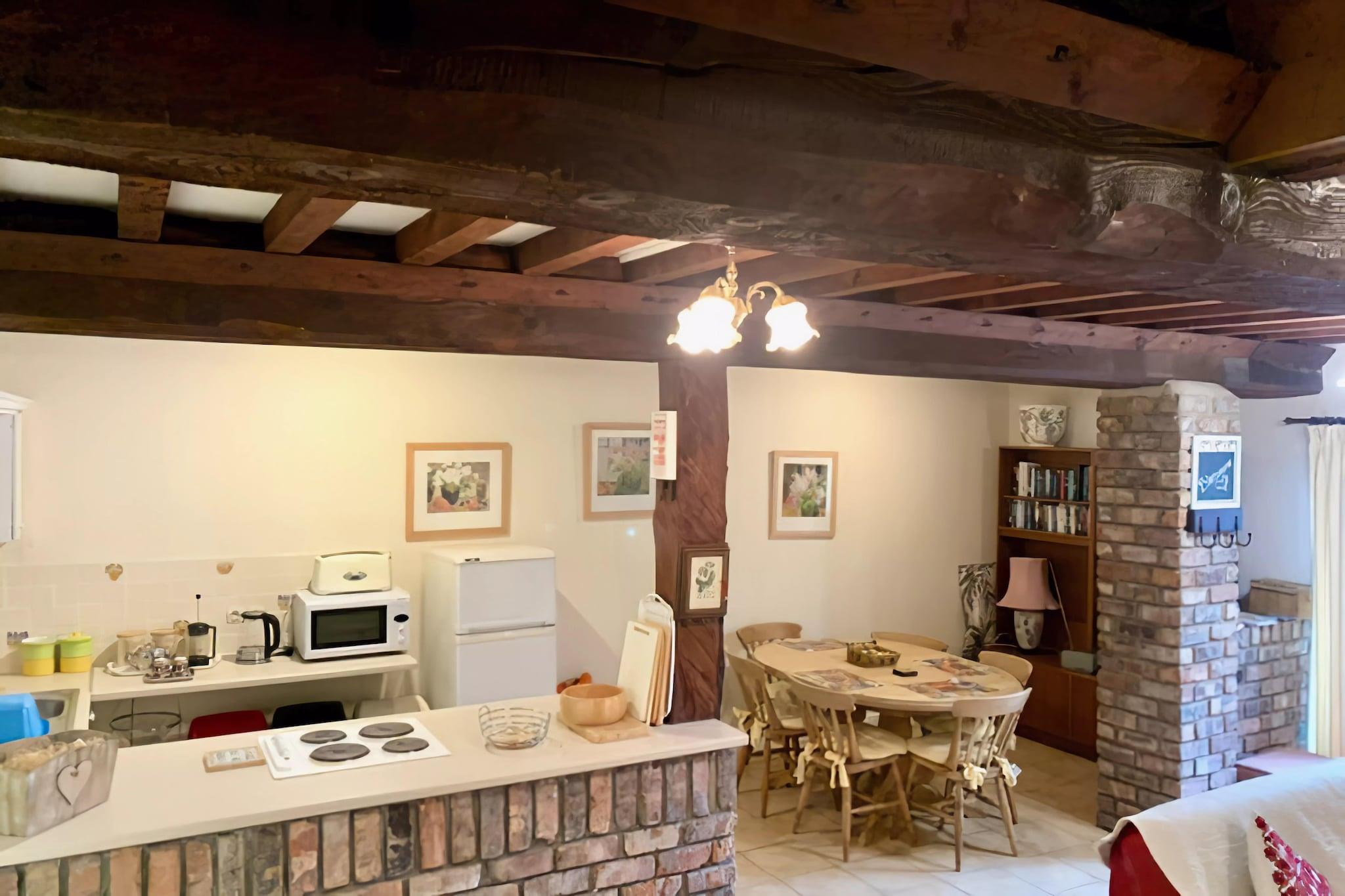 Set in the serene village of Sainte-Marguerite-d'Elle, this charming stone-built cottage offers a peaceful escape for families and groups. With ample parking, a garden full of games for children, and space to accommodate larger gatherings across three cottages, it's ideal for those seeking countryside calm and adventure. The raised sundeck and patio with barbecue make sunset evenings truly special. The village itself is perched on a hill, offering sweeping views of green valleys and fields. Explore the 11th-century church, wander through scenic hiking and cycling trails, and visit the elegant Château de Balleroy nearby. Omaha Beach and other WWII sites are just 30 minutes away, making this a perfect base for history lovers and nature enthusiasts alike. Inside, The Granary retains its rustic charm while offering modern comforts. The living room invites relaxation, the kitchen is fully equipped for home-cooked meals, and loungers await under shady trees. The hosts are welcoming and knowledgeable-ready to share local tips to make your Normandy stay unforgettable.