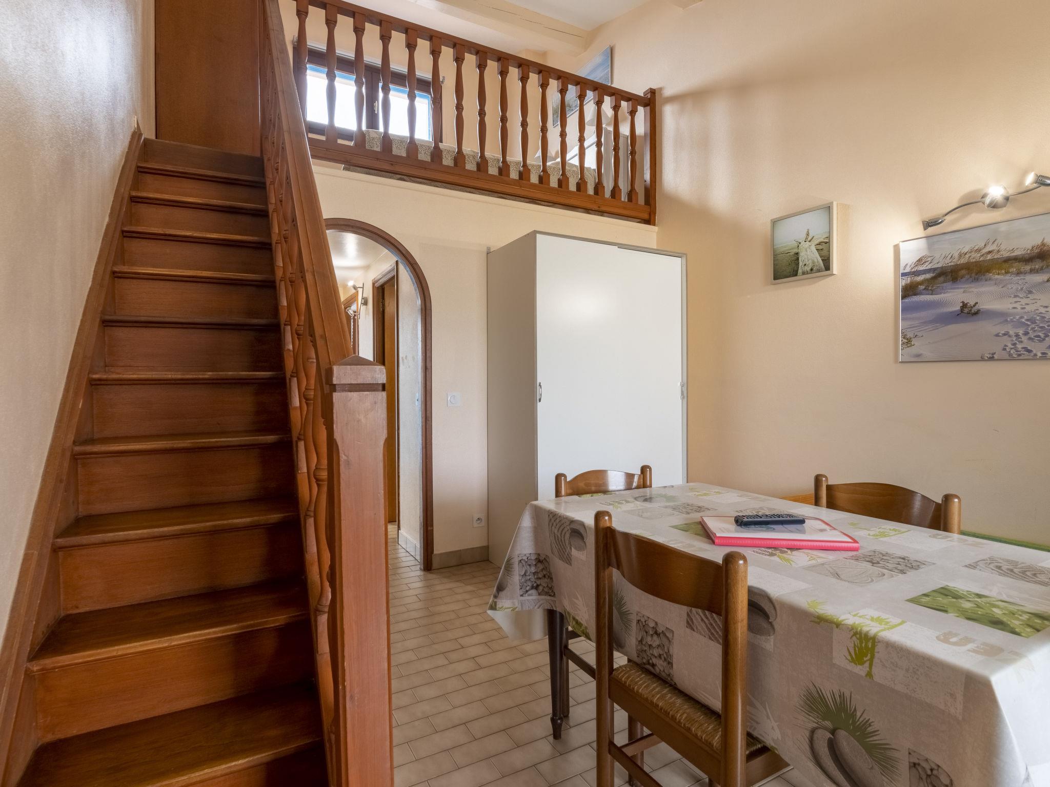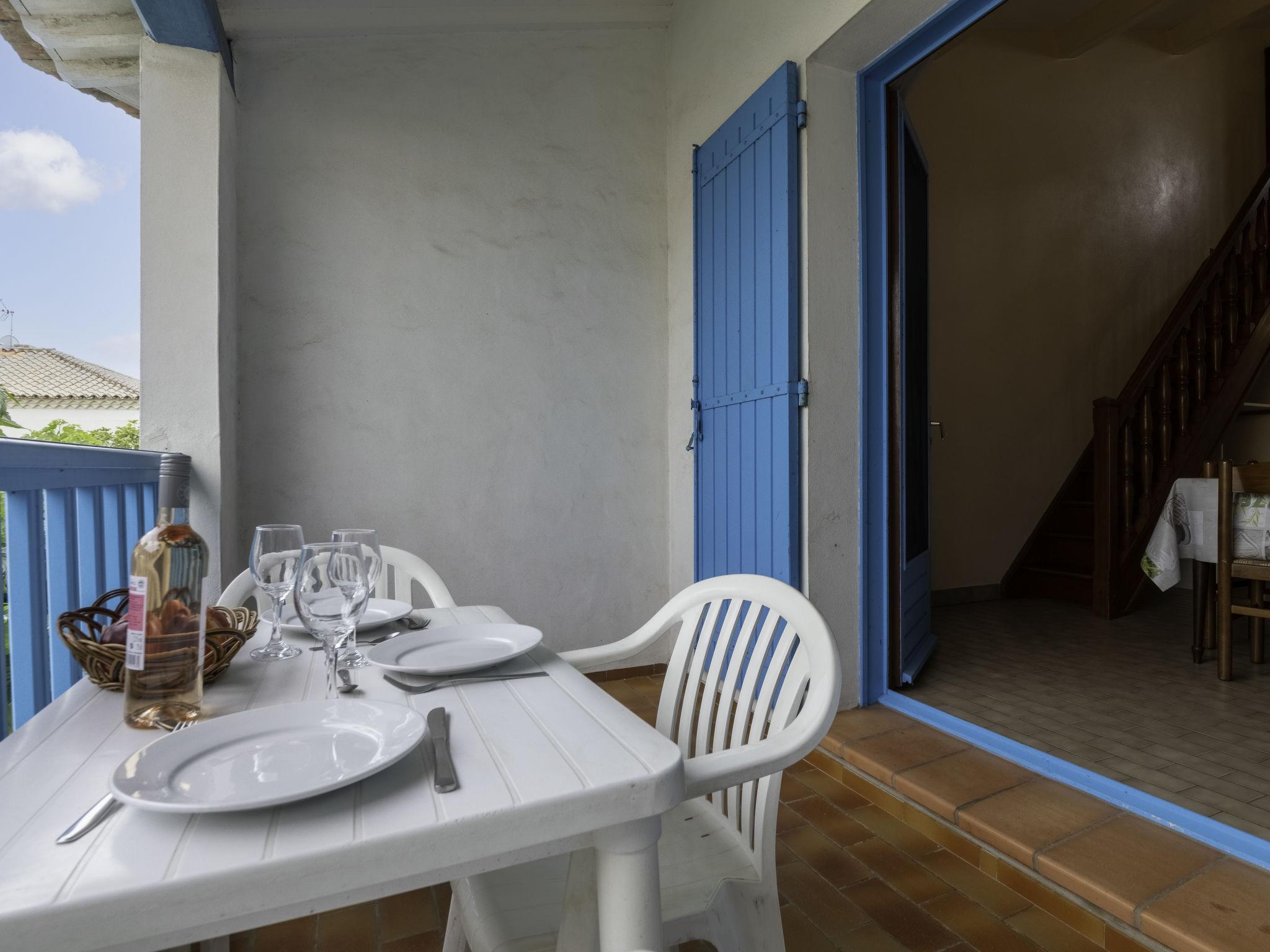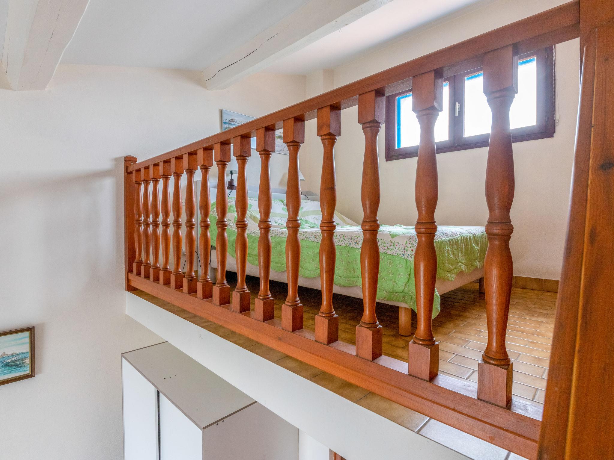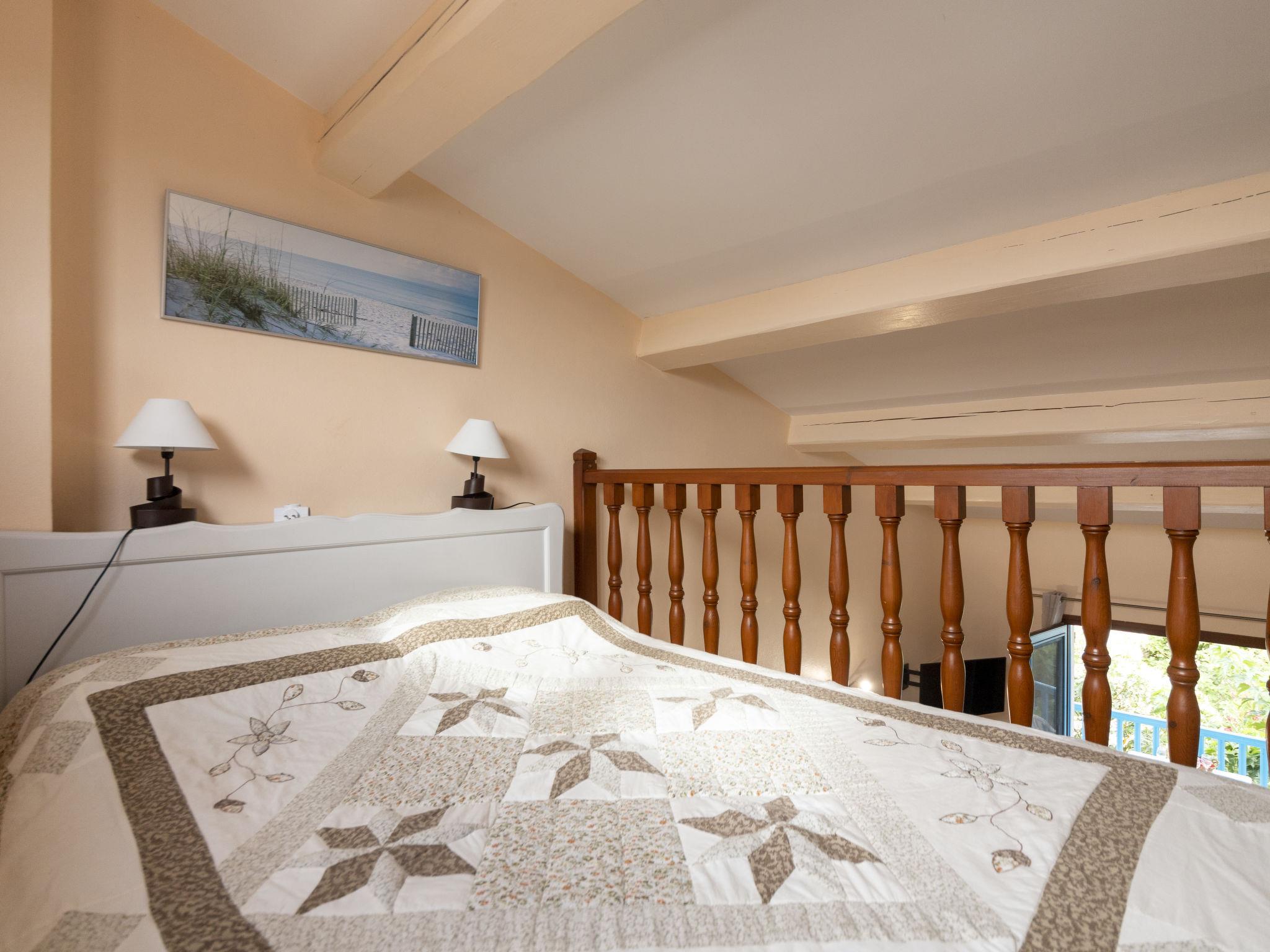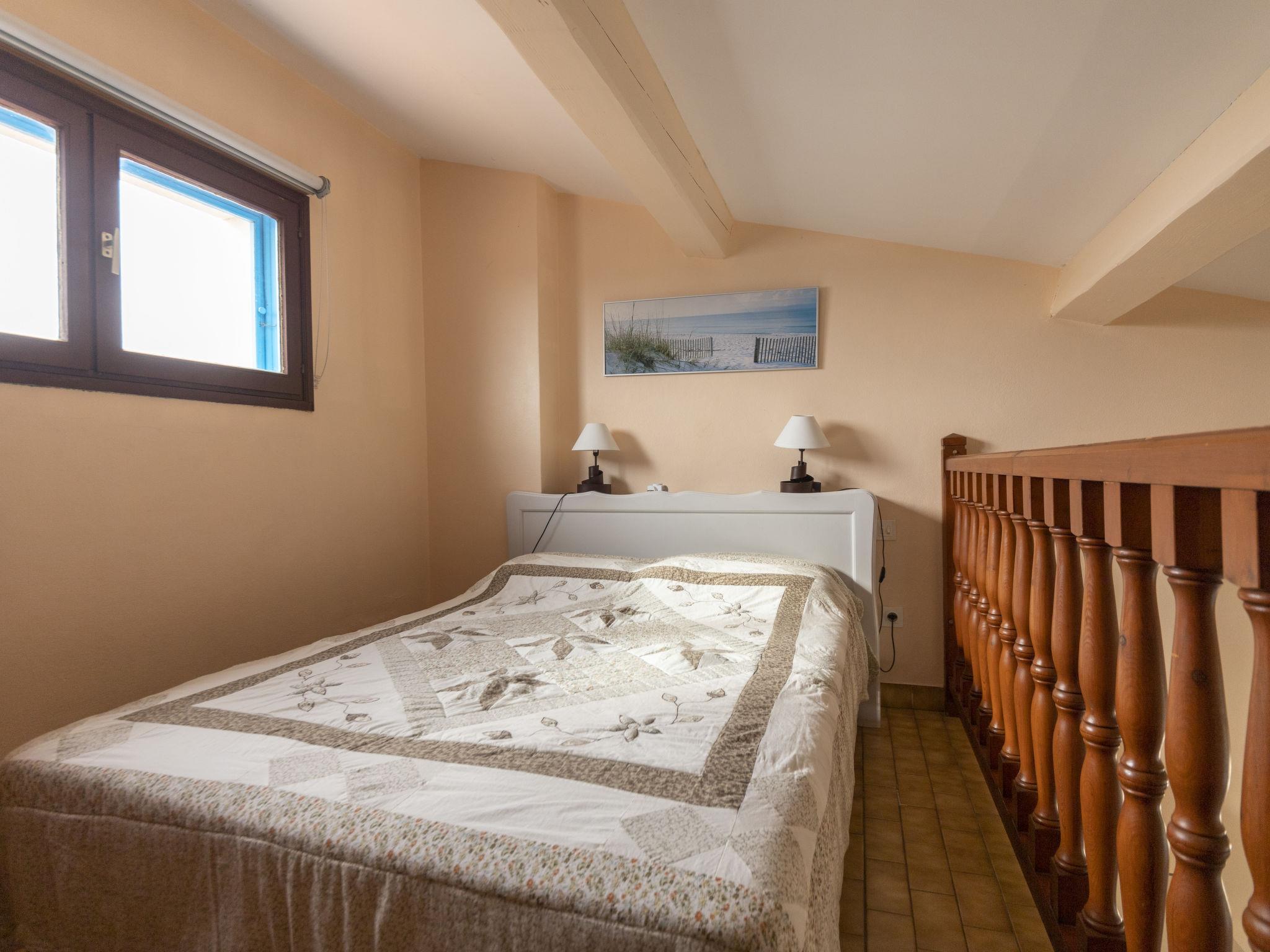 "Soleil Camarguais", 1-room apartment 40 m2 on 2 levels. Simple and practical furnishings: living/sleeping room with 1 bed (140 cm, length 190 cm), dining table and TV. Exit to the balcony. Gallery with 2 pull-out beds (2 pers. 2 x 80 cm, length 180 cm). Kitchenette (mini-oven, 3 ceramic glass hob hotplates, toaster, kettle, microwave, freezer, electric coffee machine). Shower/WC. Electric heating. Balcony. Balcony furniture. Facilities: iron. Internet (WiFi, free). Instead of an enclosed bedroom, some sleeping areas are located in an open-plan area (gallery, alcove, etc.). 13096000014AK