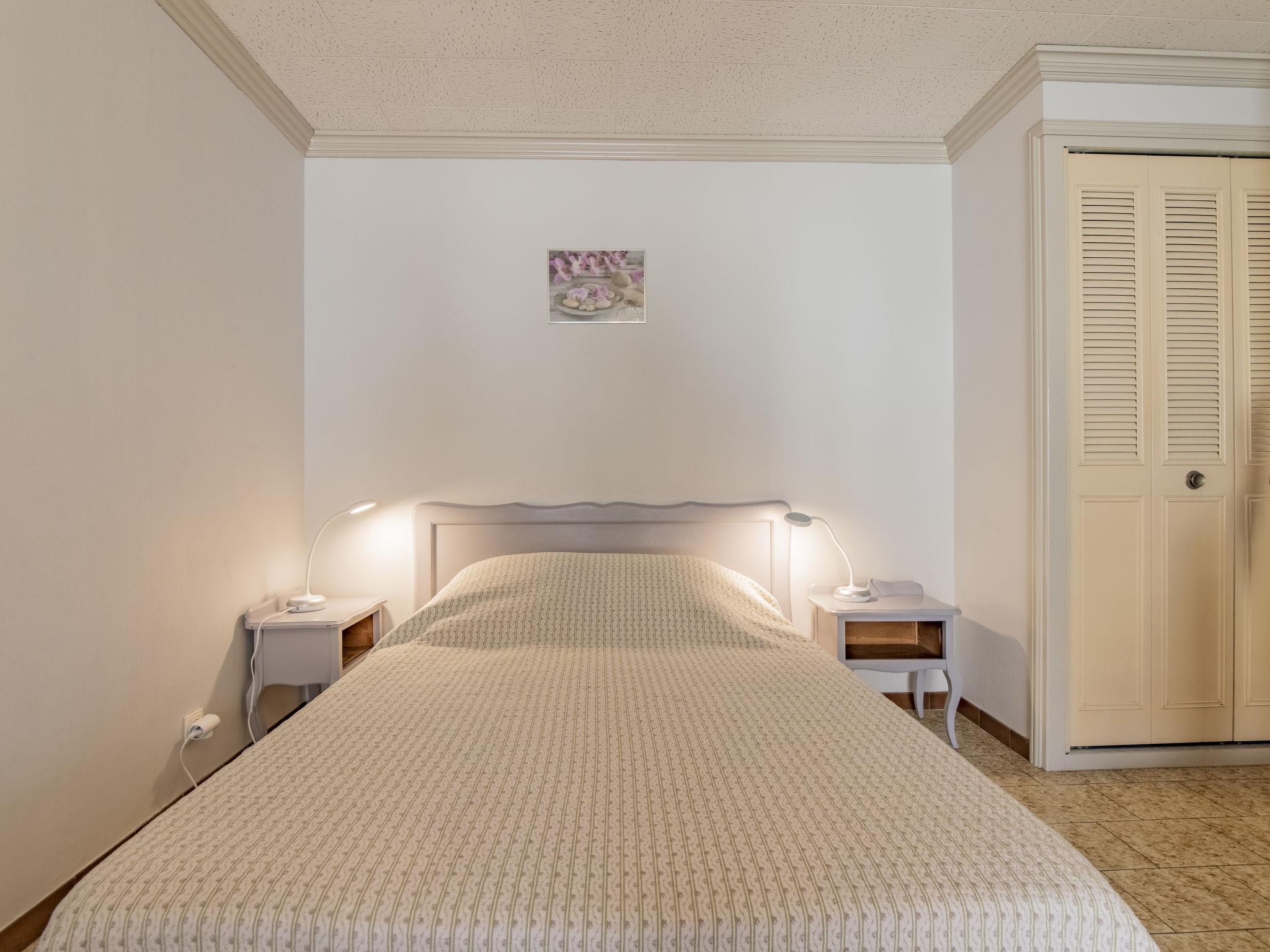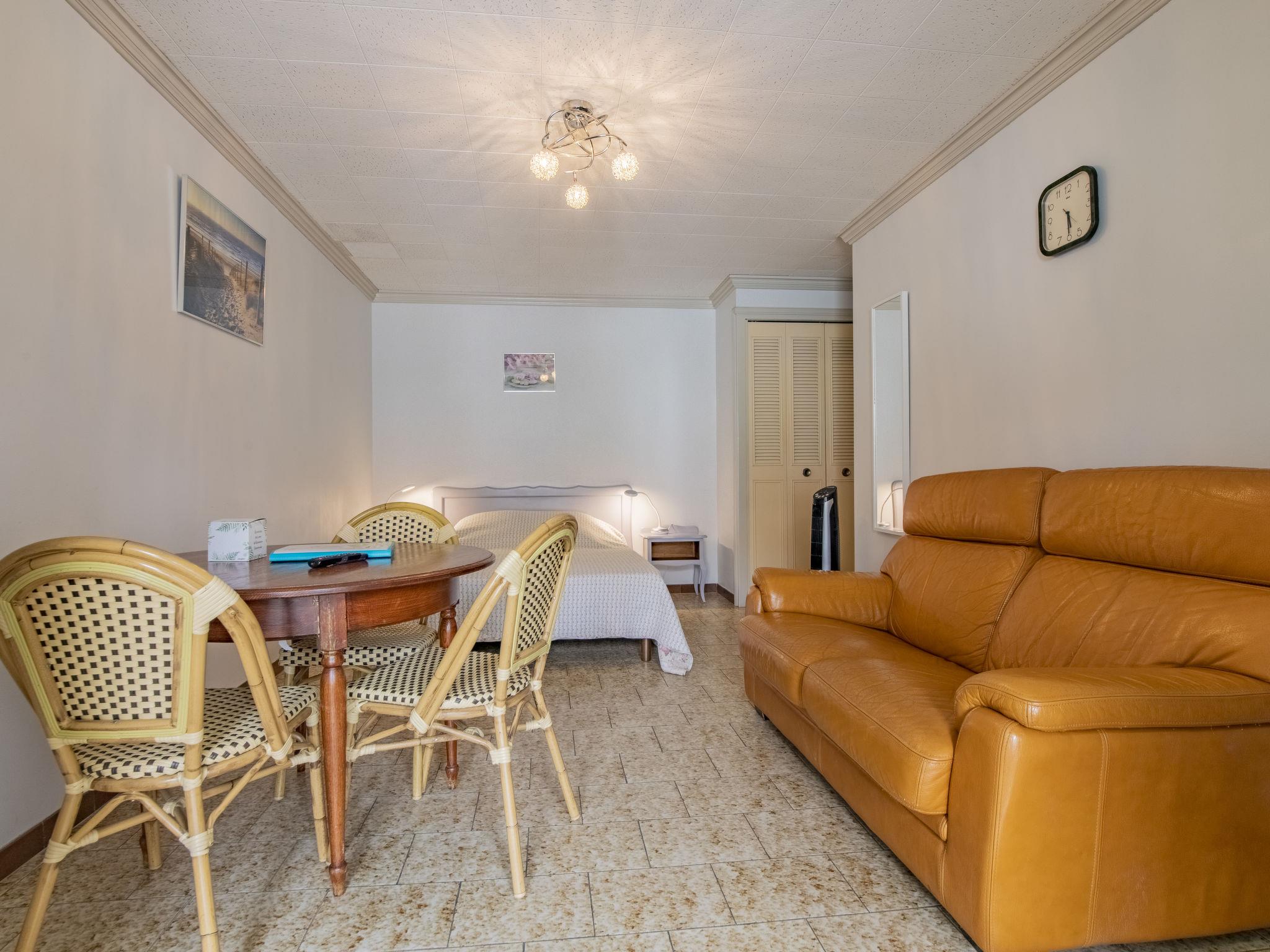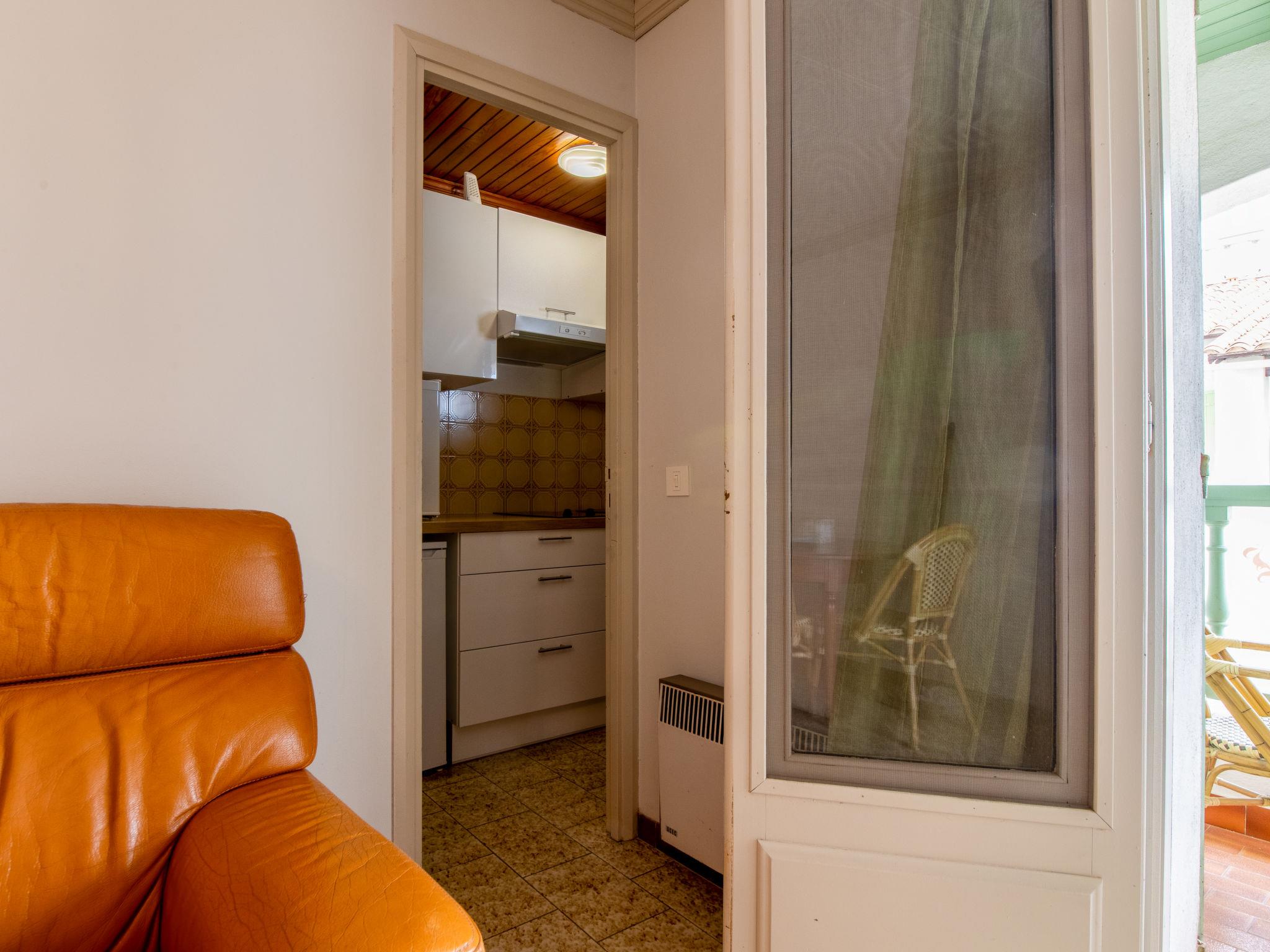 "Le Soleil Camarguais", 1-room apartment 30 m2 on 1st floor. Simple and practical furnishings: living/sleeping room with 1 french bed (140 cm, length 190 cm), dining table and TV. Exit to the balcony. Small kitchen (mini-oven, 2 ceramic glass hob hotplates, toaster, kettle, microwave, electric coffee machine). Shower/WC. Electric heating. Balcony. Balcony furniture. Facilities: iron. Internet (WiFi, free). Garage (extra). 13096000010HT