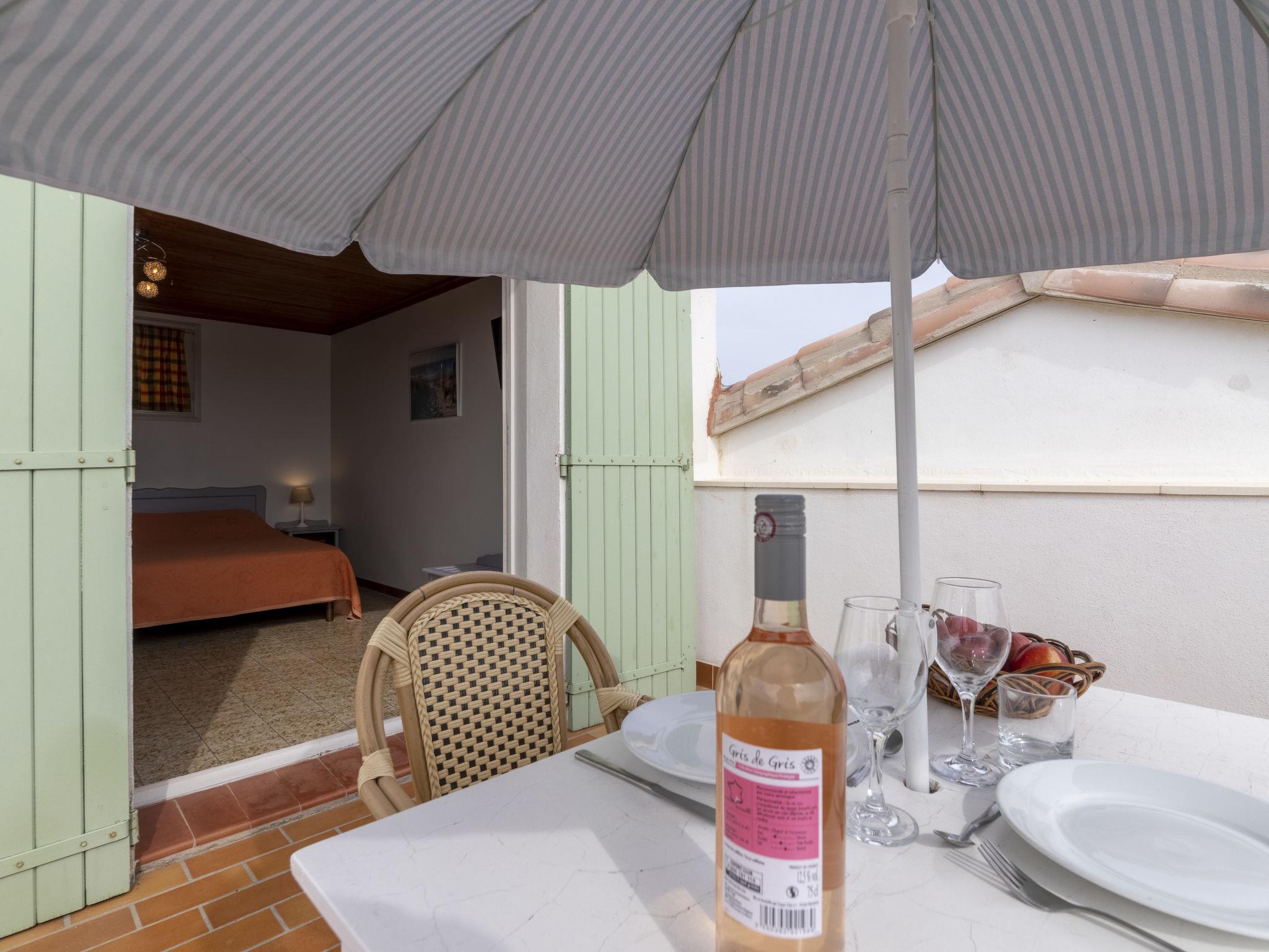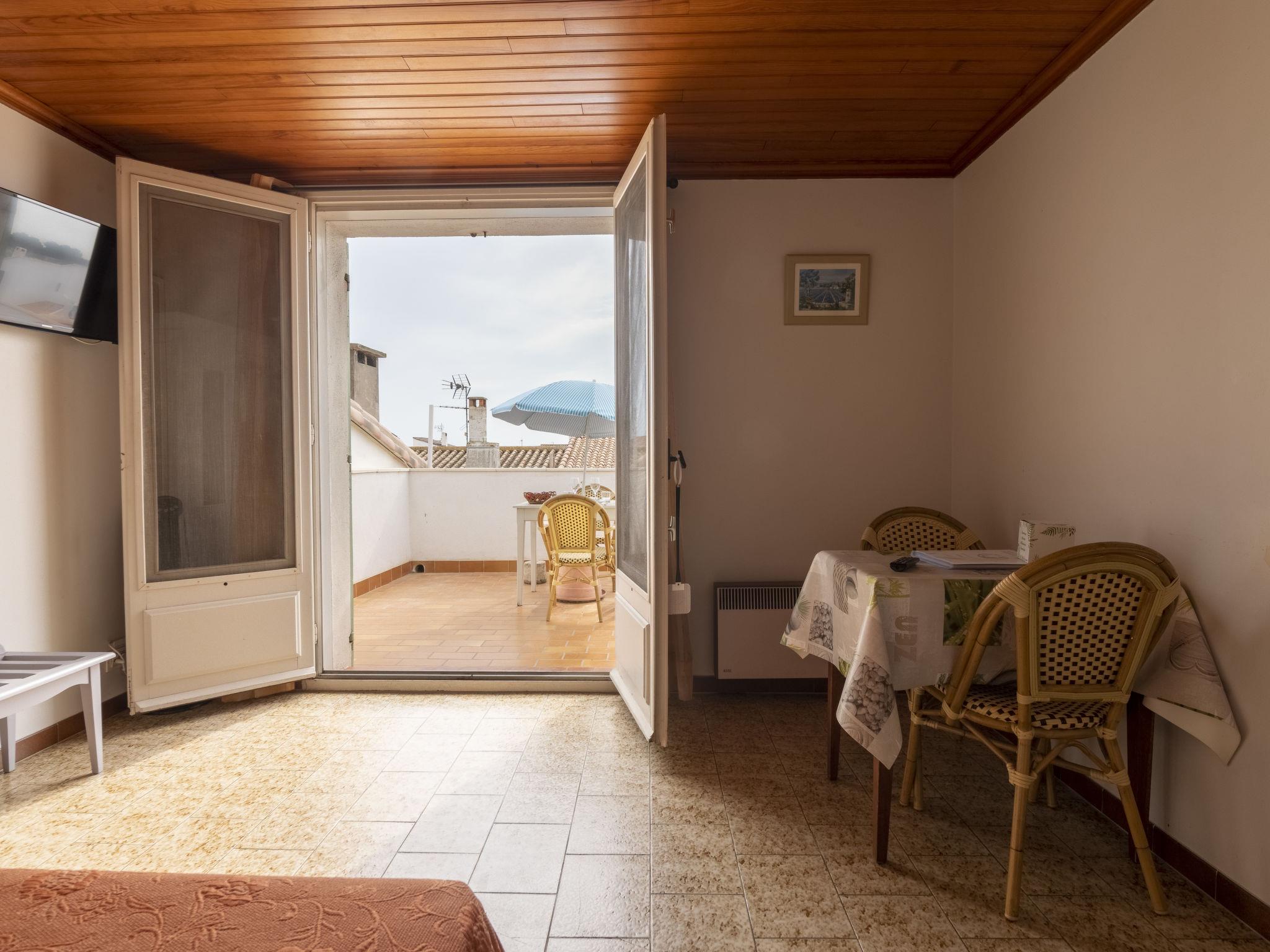 "Le Soleil Camarguais", 1-room apartment 27 m2 on 2nd floor. Simple and practical furnishings: living/sleeping room with 1 french bed (140 cm, length 190 cm), dining table and TV. Exit to the balcony. Small kitchen (mini-oven, 2 ceramic glass hob hotplates, toaster, kettle, microwave, electric coffee machine). Shower/WC. Electric heating. Balcony. Balcony furniture, deck chairs (2). Facilities: iron. Internet (WiFi, free). Garage (extra). 13096000021DP
