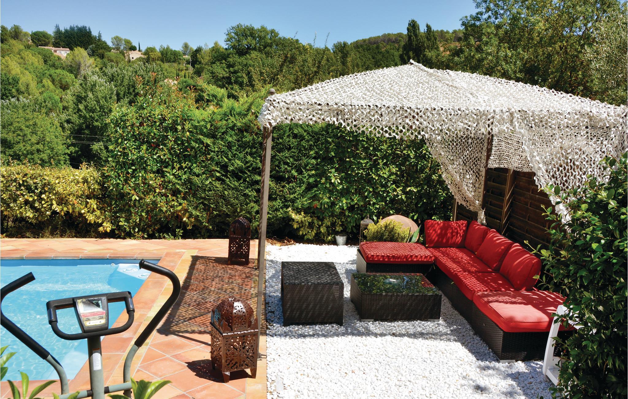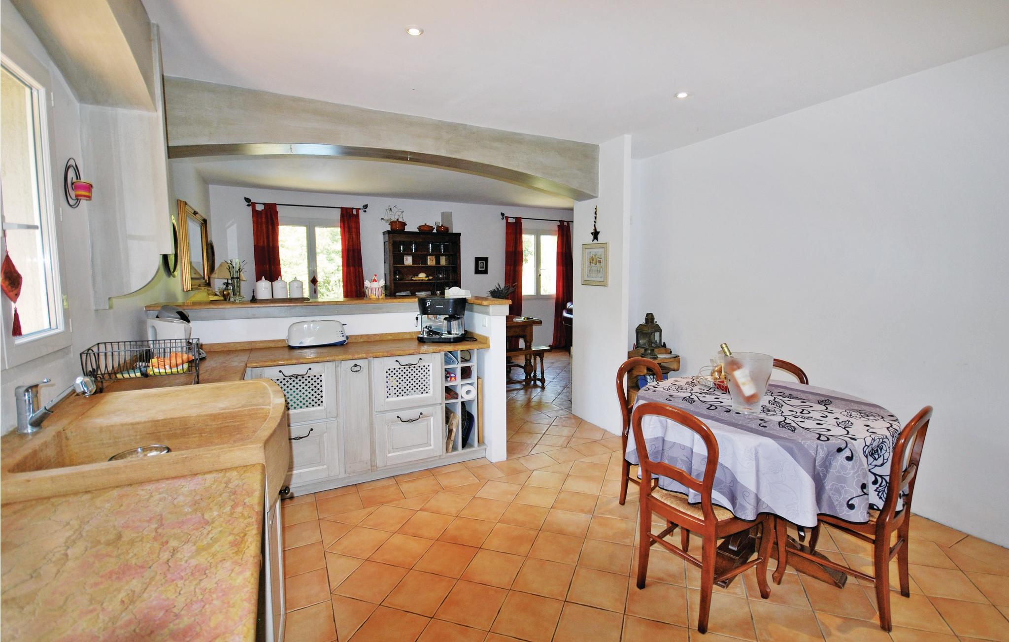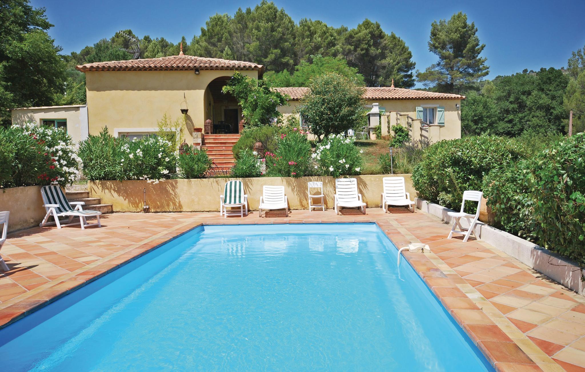 Tolle Villa mit privatem Pool und einer raffinierten Dekoration im Herzen des Haut-Var, nur 23 km vom Saint Croix See. Badefreuden finden Sie auch 80 km entfernt an den Stränden der Côte d'Azur. Das Haus liegt am Rande eines charmanten Dorfes und nur 5 km von den traumhaften Wasserfällen von Sillas entfernt. Es liegt auf einem 1.000 m² großen Privatgrundstück und verfügt über einen unabhängigen Wohnteil mit Kochnische (SZ 4, Wohnzimmer. mit Kochnische und Bad), den Sie durch die Küche im Haus erreichen können.