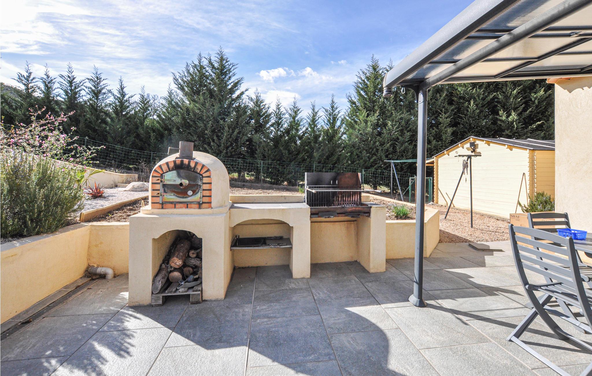 Draußen erwarten Sie neben dem schönen Pool eine Außenküche und ein Holzkohlegrill, auf dem Sie leckere Grillgerichte zubereiten können. Entspannen Sie auf der Terrasse mit Gartenmöbeln und schalten Sie komplett vom Alltag ab.