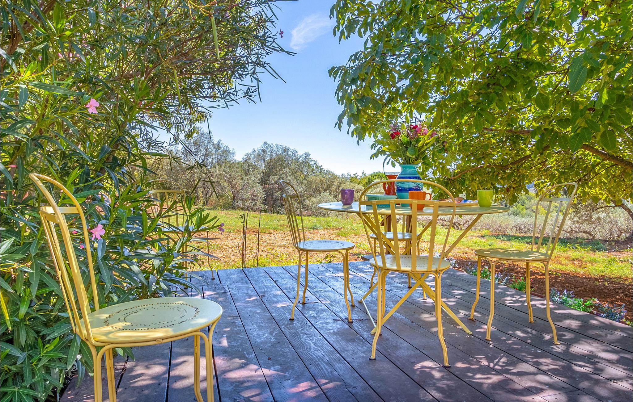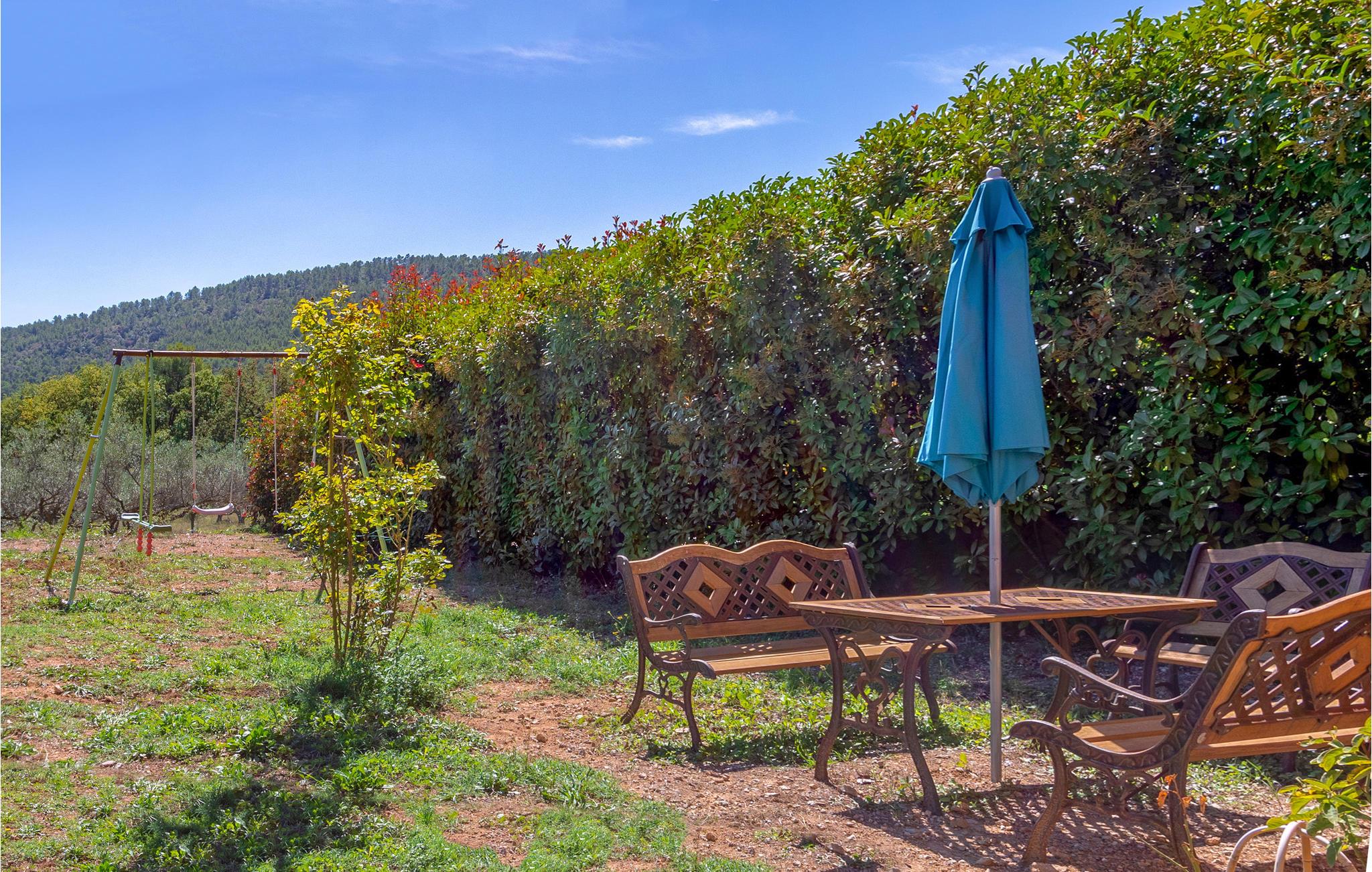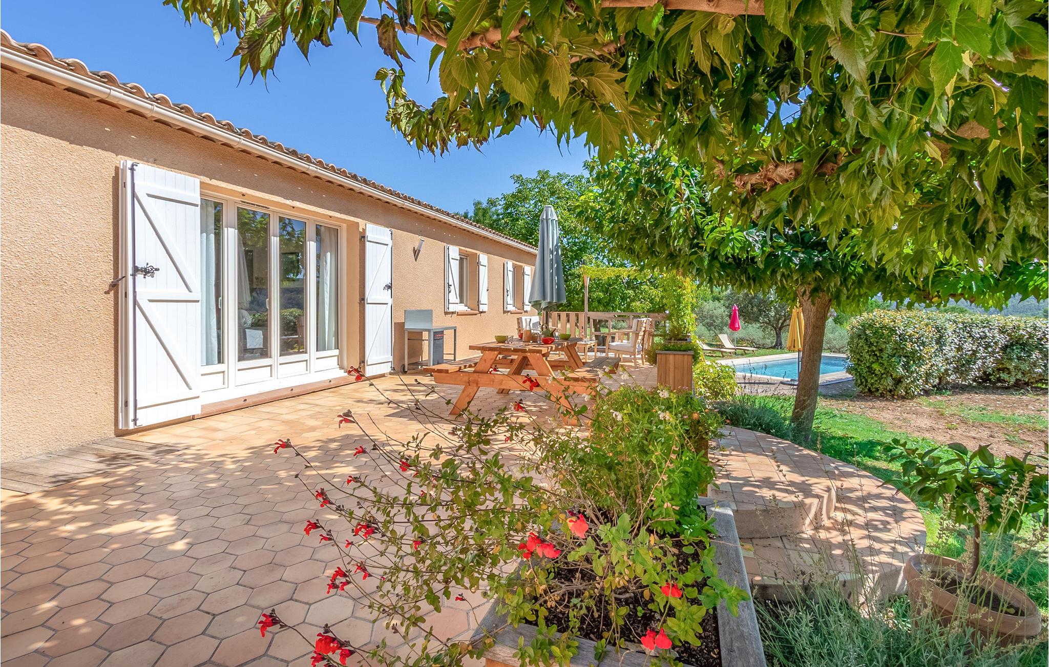 Friedlich, idyllisch, komfortabel - Diesen Eindruck bekommen Sie, wenn Sie zum ersten Mal über Ihr Grundstück und durch das herrliches Ferienhaus schreiten. Sie haben das Privileg, in einem wunderschönen, vollklimatisierten Anwesen zu wohnen, das inmitten der Natur in einer Oase der Ruhe liegt. Knapp 2 km liegen Sie von den nächsten Geschäften und dem Stadtzentrum von Salernes entfernt, in Ihrem Haus genießen Sie die ideale Lage für Naturliebhaber, mit Blick auf ein hübsches Tal und einen großen Hain mit Olivenbäumen.