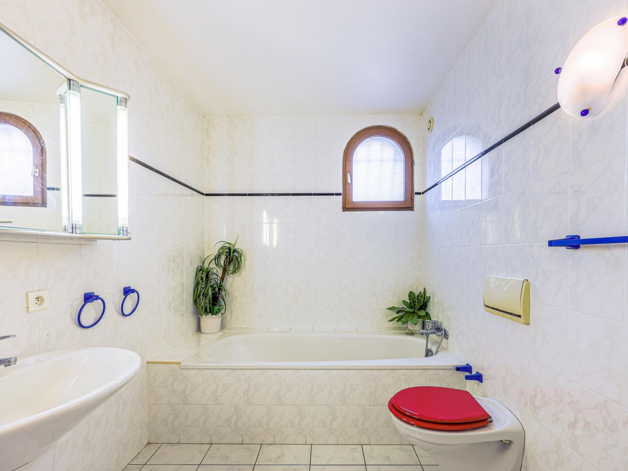 7-room house 150 m2 on 2 levels. Practical and beautiful furnishings: living/dining room with TV. Exit to the terrace. 3 rooms, each room with 2 beds (90 cm). Kitchen (4 hot plates, oven, dishwasher, microwave, freezer). Sep. WC, bath/shower/WC. Upper floor: 1 room with 1 french bed (140 cm). 1 room with 1 french bed (200 cm). Bath/shower/WC. Electric heating. Large garden 600 m2. Terrace furniture. Facilities: washing machine. Internet (WiFi, extra). Parking (2 cars). Please note: maximum 1 small pet/ dog allowed. Smoke alarm.