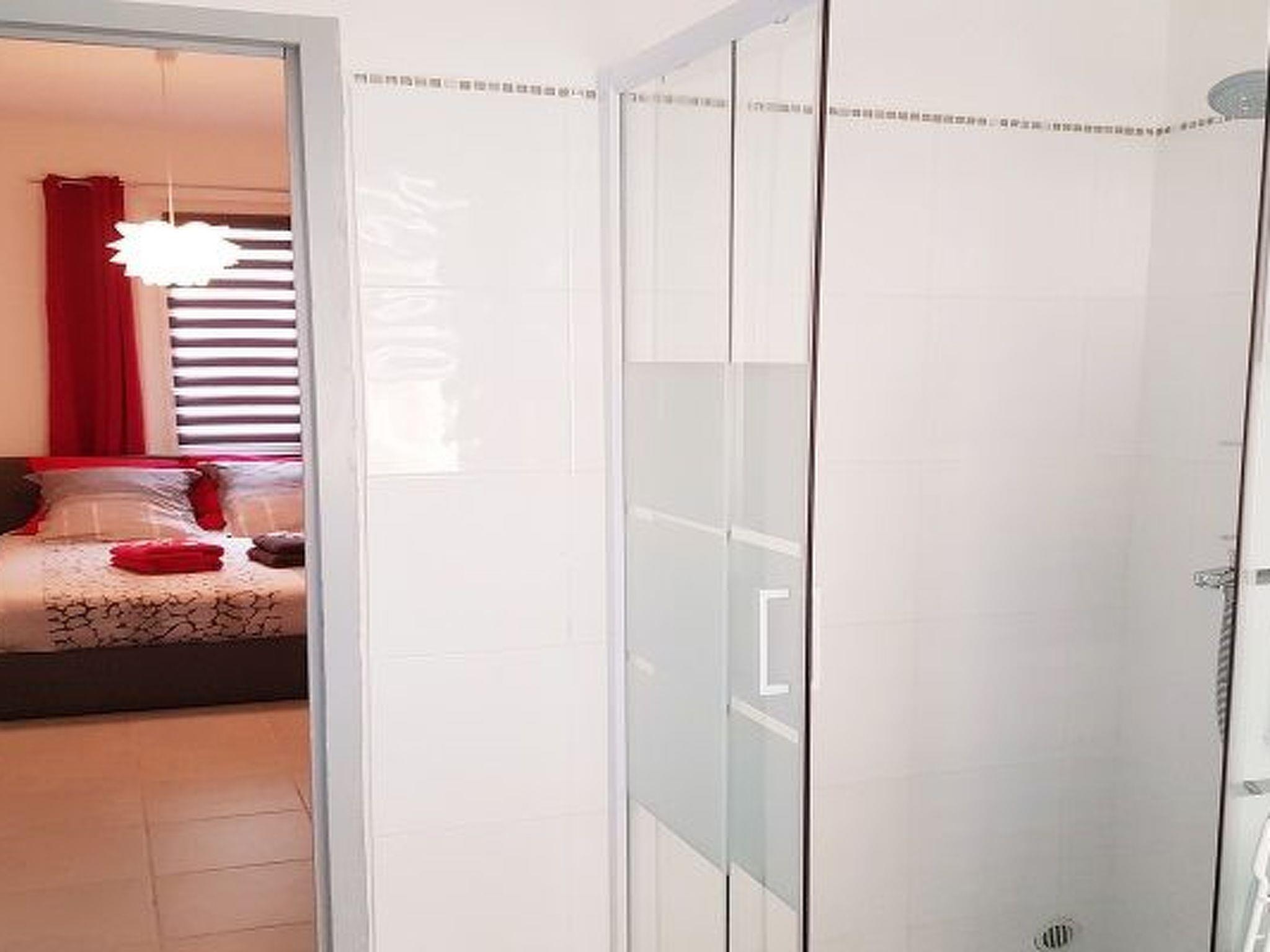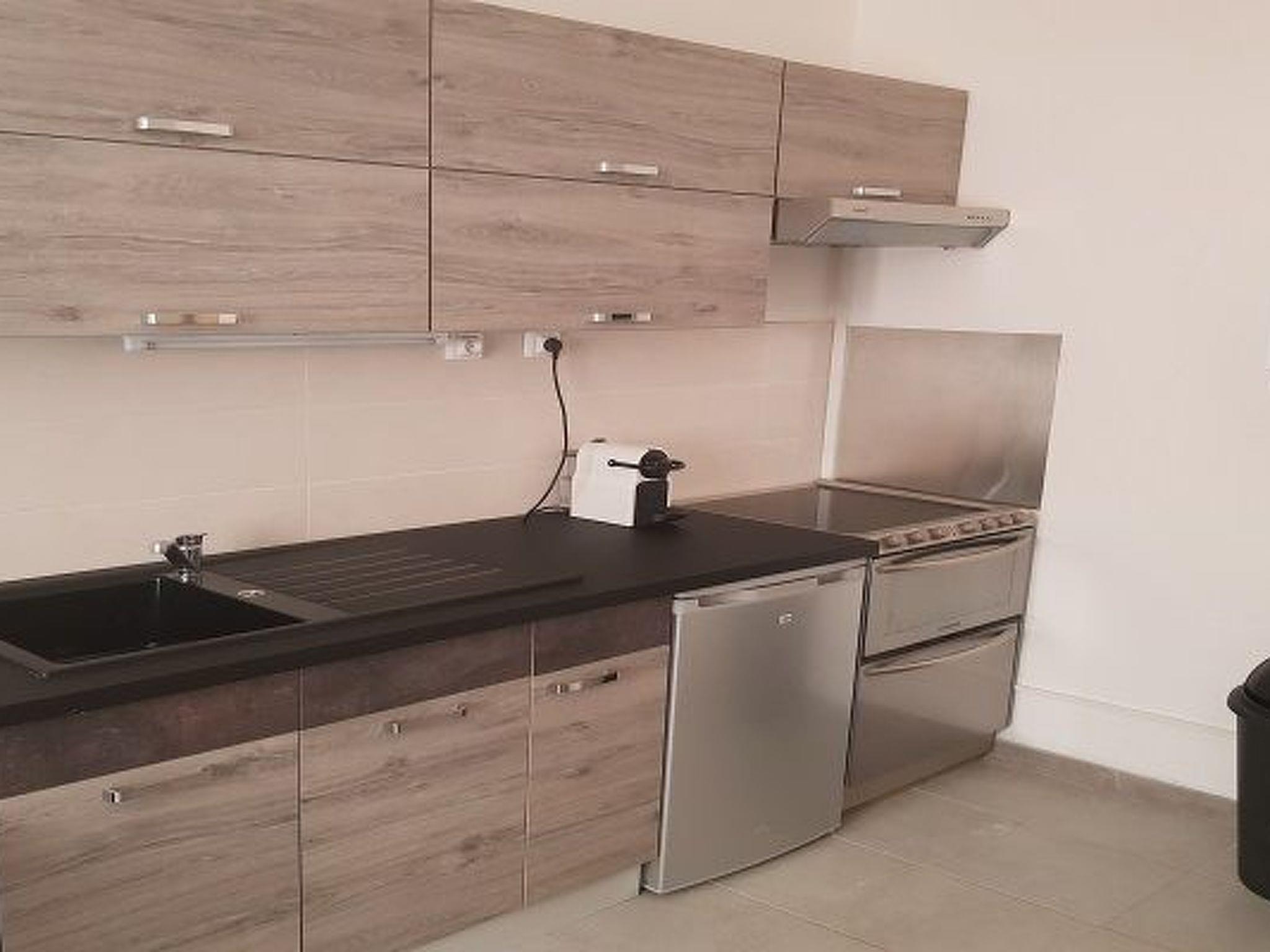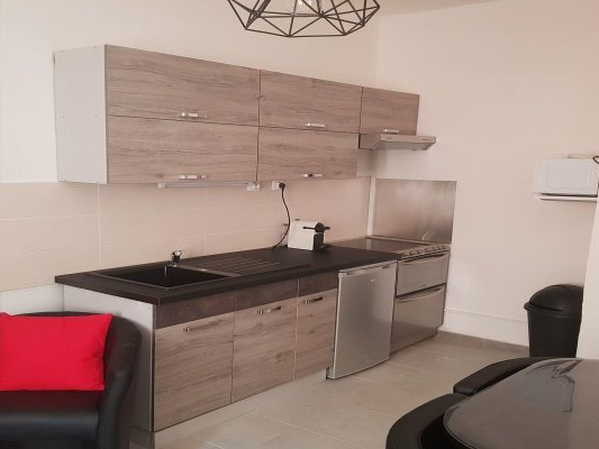 Fully-equipped, air-conditioned and furnished T2 flat (1 separate bedroom) on the 1st floor of a town house, comprising :