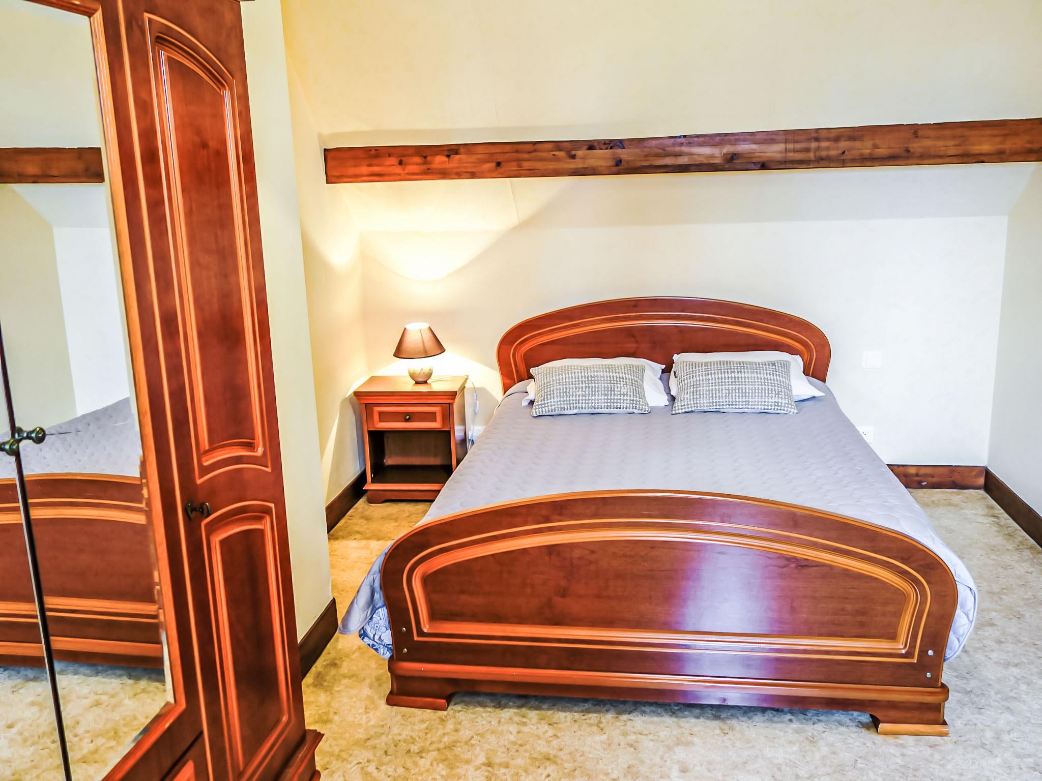 4-room house 94 m2. Beautiful and rustic furnishings: living/dining room with open-hearth fireplace, dining table and TV (flat screen). Exit to the terrace. Open kitchen (oven, dishwasher, 1 ceramic glass hob hotplate, 3 gas rings, toaster, kettle, microwave, freezer, electric coffee machine) with small dining table. Bathroom, sep. WC. Boiler (200 litres). Upper floor: 1 room with sloping ceilings with 2 beds (90 cm, length 190 cm). 2 rooms with sloping ceilings, each room with 1 french bed (140 cm, length 190 cm). Sep. WC. Terrace 15 m2, roofed. Terrace furniture, barbecue (portable), deck chairs (6). Facilities: washing machine, iron, baby cot for up to 2 year olds, logs (extra). Parking (2 cars). Please note: suitable for families. Non-smoking house. Maximum 1 pet/ dog allowed. Smoke alarm.