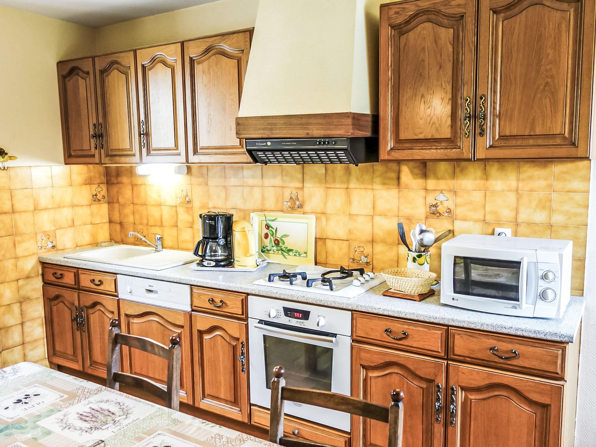 4 km from Salviac: Cosy, comfortable single-family house "Pech Gaillard", surrounded by trees. In a hamlet 4 km from the centre of Salviac, 17 km from the centre of Gourdon, 34 km from the centre of Cahors, in a quiet position, in the countryside. Private: large garden (not fenced) with lawn and trees, swimming pool fenced (14 x 7 m, depth 100 - 180 cm, seasonal availability: 15.May. - 31.Oct.) with alarm system. Parking at the house on the premises. Shop 4 km, grocery 4 km, supermarket 4 km, restaurant 10 km, bus stop "Dégagnac" 9 km. Tennis 4 km. Please note: car recommended.