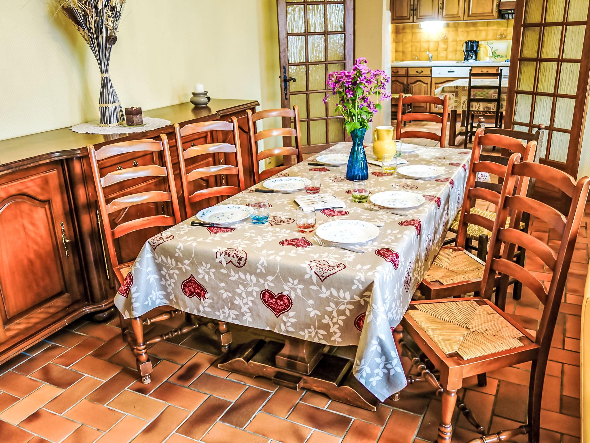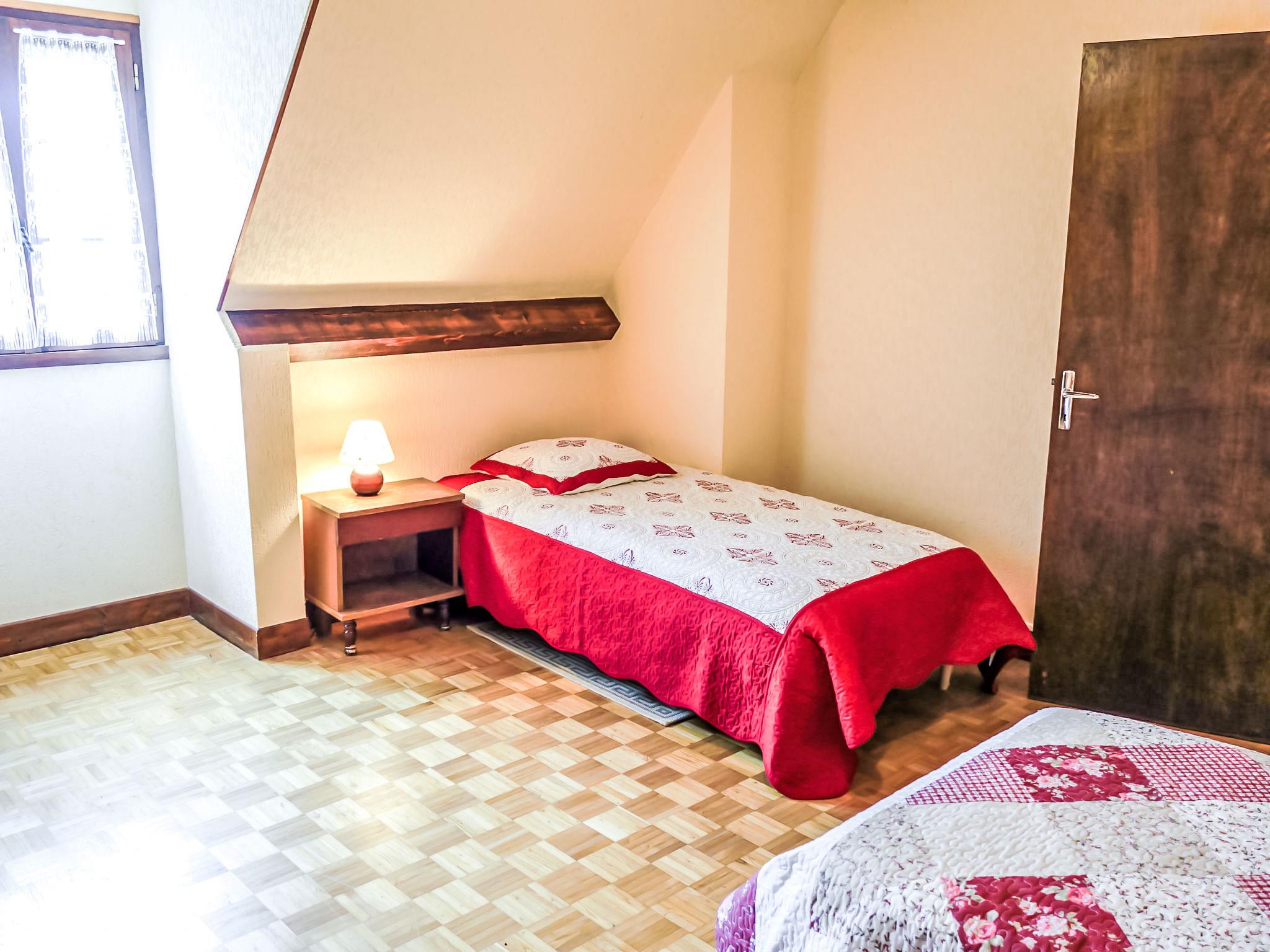 4-room house 122 m2 on 2 levels. Beautiful and rustic furnishings: living/dining room with open-hearth fireplace and satellite TV (flat screen). Exit to the garden. Kitchen (oven, dishwasher, 3 gas rings, toaster, kettle, microwave, freezer, electric coffee machine) with dining table. Bathroom, sep. WC. Upper floor: 2 rooms, each room with 1 french bed (140 cm, length 190 cm). 1 room with sloping ceilings with 3 beds (90 cm, length 190 cm). Sep. WC. Electric heating. Terrace 12 m2. Terrace furniture, barbecue (portable), deck chairs (6). Facilities: washing machine, iron, children's high chair, baby cot for up to 2 year olds, logs (free). Please note: suitable for families. Non-smoking house. Maximum 1 pet/ dog allowed. Smoke alarm.