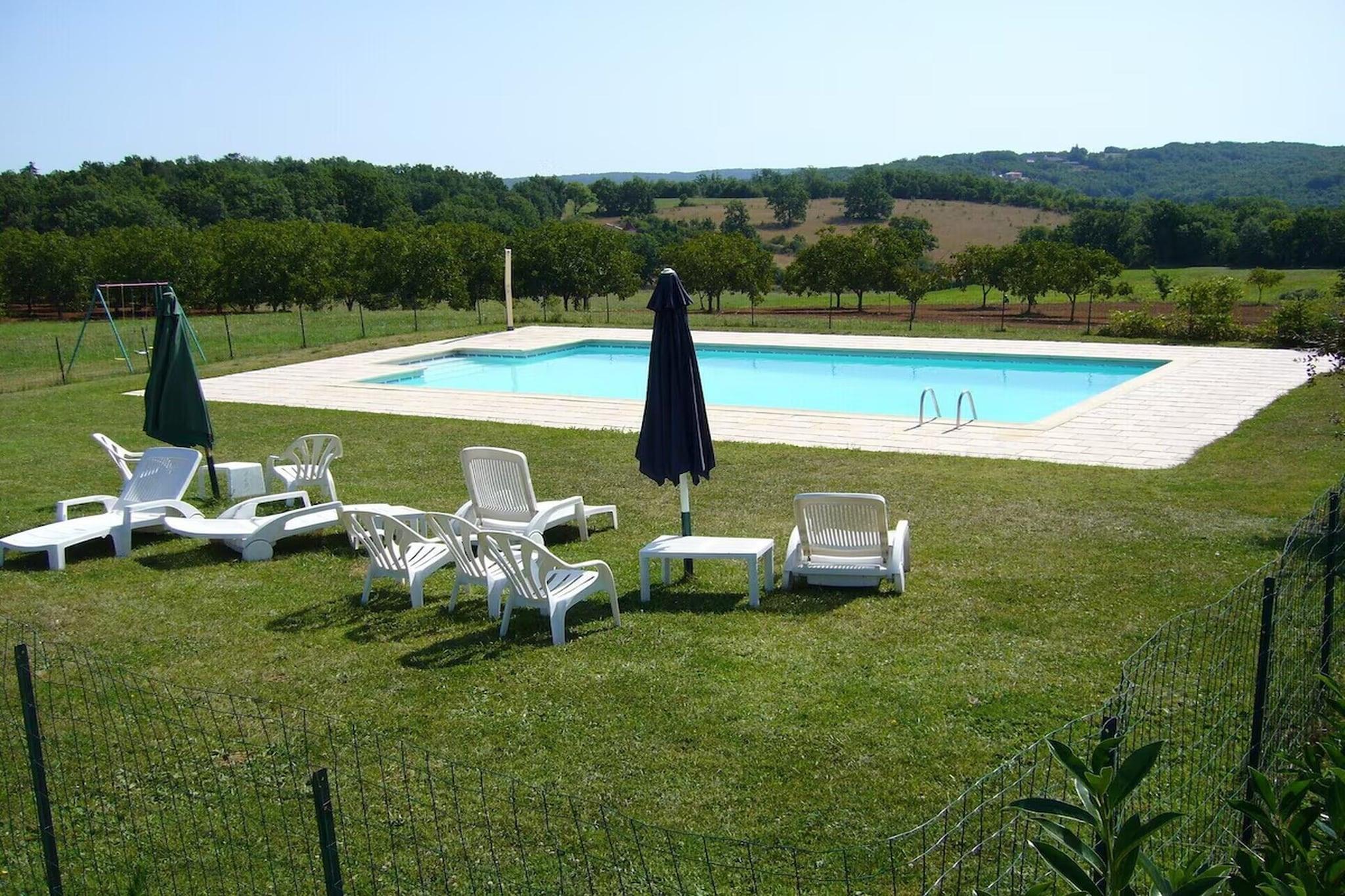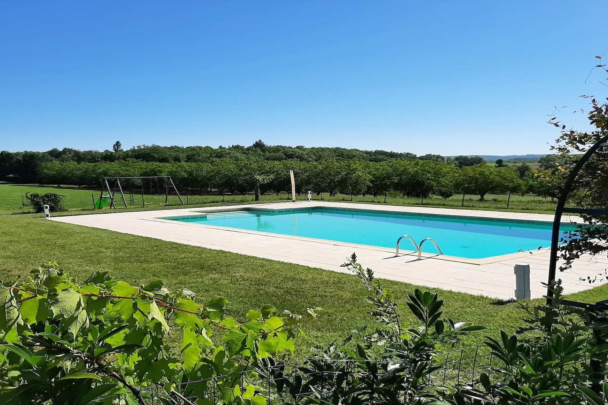 This spacious countryside holiday cottage nestled in Salviac, located near Sarlat in the Dordogne, is set on a former agricultural estate of over 20 hectares, offering open views, privacy, and a peaceful rural atmosphere. Designed for families and groups, the house comfortably accommodates up to 8 guests across 4 bedrooms, making it ideal for relaxed stays surrounded by nature. On the ground floor, the home features a large dining and living area with a sofa and TV, creating a welcoming space for shared meals and evenings together, and a fully equipped kitchen. High-speed Wi-Fi is available throughout, and there is also a convenient separate WC on this level. The first floor offers four bedrooms, including three rooms with double beds and one room with twin beds. Two modern shower rooms, each with its own WC, serve the sleeping area. There is also the possibility of adding two baby beds for families travelling with young children. Outdoors, this pet friendly home features a spacious private garden with garden furniture, a parasol, and a barbecue, plus a terrace and balcony overlooking the countryside. The standout feature is the large private fenced swimming pool with sun loungers and parasols, complemented by a children’s play area, swing, open green spaces, and private parking. Located near Salviac and close to Sarlat-la-Canéda, guests enjoy easy access to the Dordogne’s top attractions, from medieval towns and castles to caves and local markets. Activities include canoeing on the Dordogne River, visiting Lascaux, cycling scenic routes, wine tasting, and enjoying regional cuisine, with beautiful valleys and forests ideal for hiking and family outings.