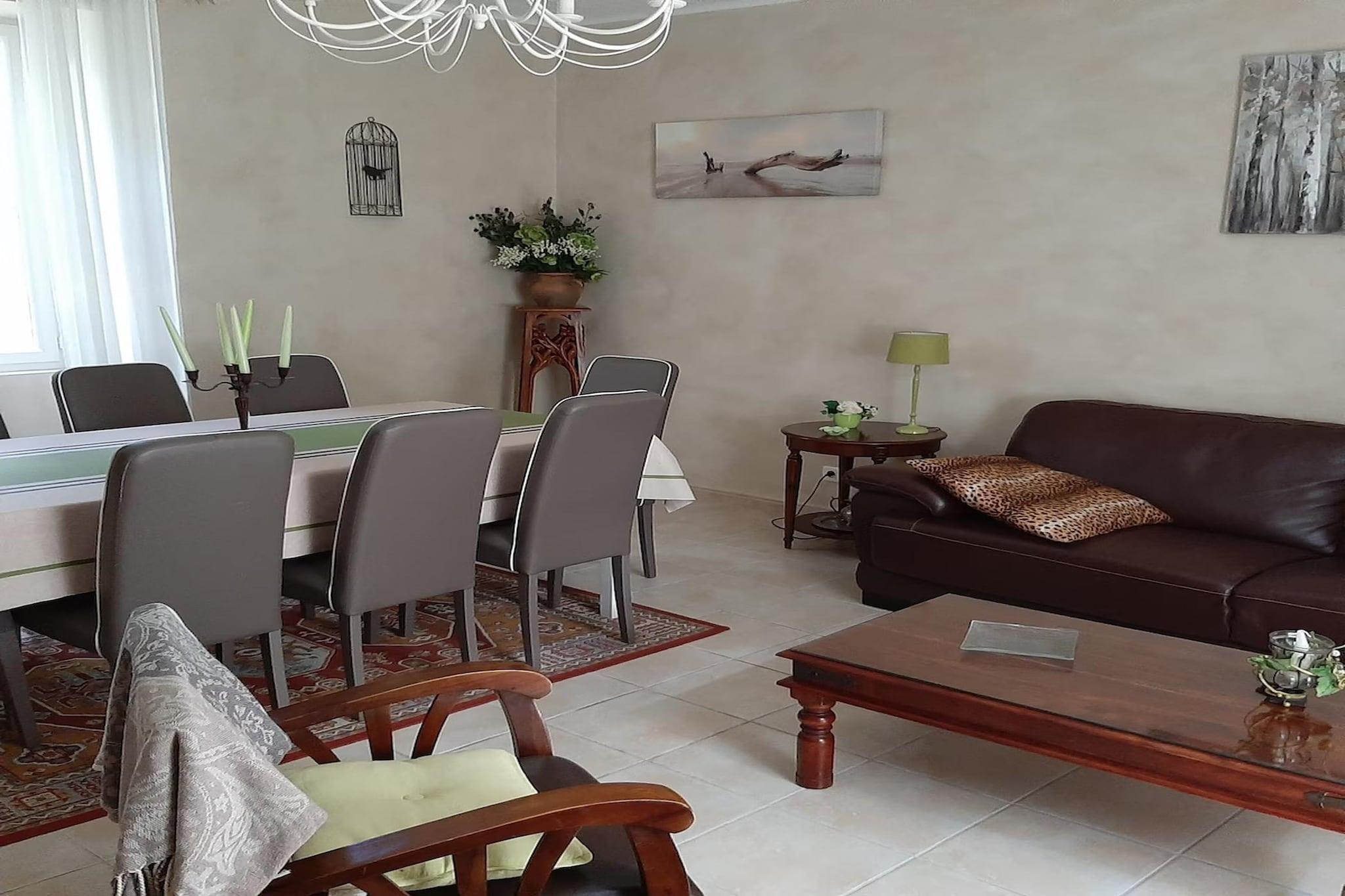 Ground floor: (Kitchen(hob(4 ring stoves, gas, electric), electric kettle, toaster, coffee machine, oven, microwave, dishwasher, fridge-freezer, Blender, dishes and cutlery, Cooking basics), Living/diningroom(TV(cable, flatscreen, satellite), dining table, seating area), toilet(toilet)) On the 1st floor: (bedroom(double bed(160 x 200 cm)), bedroom(double bed(160 x 200 cm)), bedroom(double bed(160 x 200 cm)), bedroom(single bed(90 x 190 cm), single bed(90 x 190 cm)), bathroom(shower, washbasin, toilet, hairdryer), bathroom(shower, washbasin, toilet)) Internet access, cot, washing machine, balcony, terrace, garden(private, 1000 m2), garden furniture, sun loungers, BBQ, parking, parasol, swimming pool(private, outside, fenced, 13 x 7 m.), tennis court, high chair, stair gate, ironing board, iron