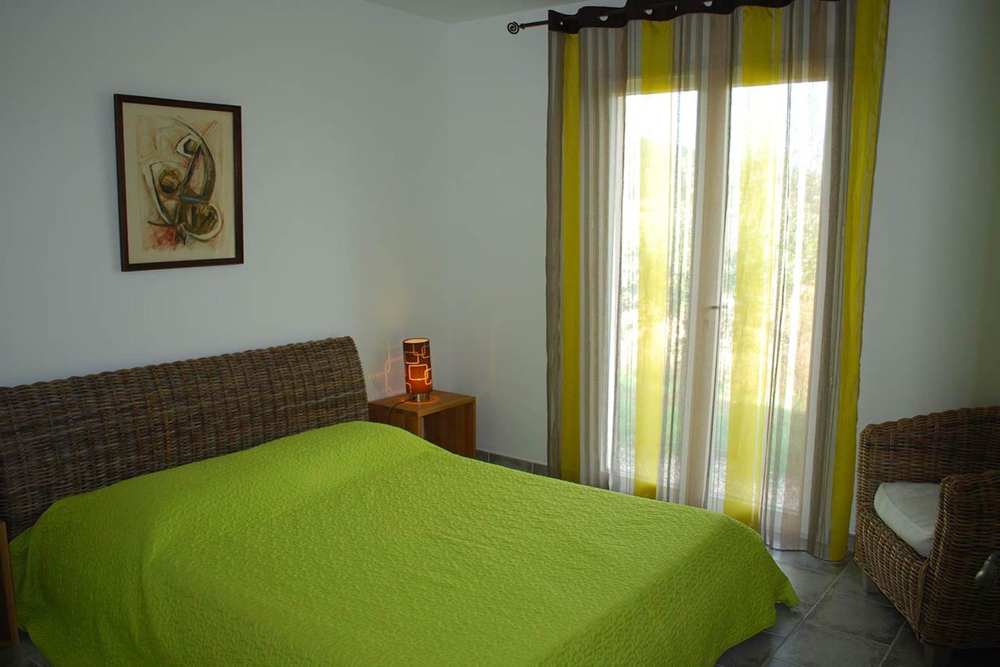 Ground floor: (open kitchen(electric kettle, coffee machine, oven, microwave, dishwasher, fridge-freezer, dishes and cutlery, Cooking basics), Living/diningroom(TV, dining table, seating area), bedroom(double bed), bedroom(single bed, single bed), bathroom(shower, washbasin), toilet(washbasin, toilet)) Internet access, air conditioning, terrace, BBQ, parking, swimming pool(private, outside)