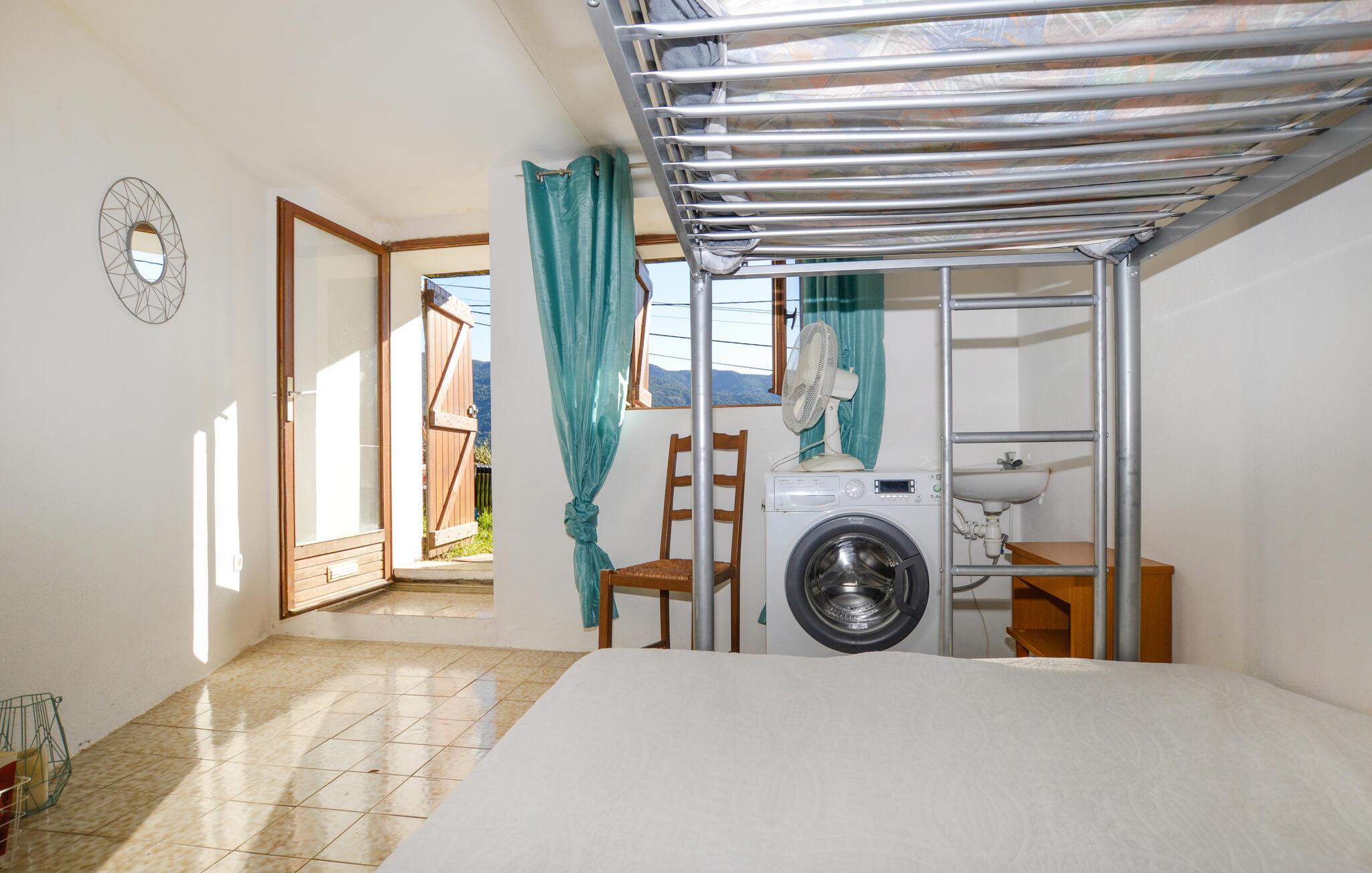 Ruhig und idyllisch urlauben Sie in diesem hellen und charmanten Ferienhaus im grünen, bergigen Herzen Korsikas. Zaubern Sie in der praktischen Küche leckere Pastagerichte mit frischen Zutaten vom Markt, lassen Sie die frische Bergluft durch die Fenster strömen und legen Sie nach einer langen Wanderung auf dem gemütlichen Sofa die Füße hoch. Entspannen Sie bei einem guten Buch oder widmen Sie sich Ihren Liebsten bei einem Spieleabend.