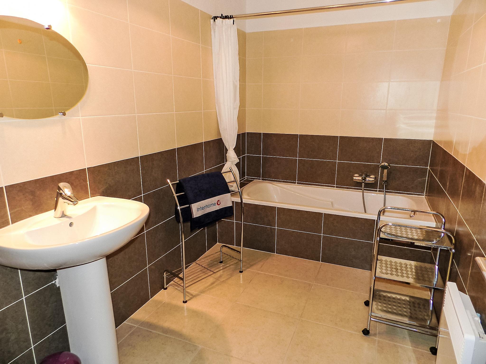 4-room apartment 84 m2 on 1st floor. Spacious and bright, modern furnishings: living/dining room with TV, flat screen, DVD and air conditioning. Exit to the balcony. 2 rooms, each room with 1 french bed (1 x 140 cm, length 190 cm). 1 room with 2 beds (90 cm, length 190 cm). Open kitchen (2 hot plates, oven, dishwasher, microwave, freezer, electric coffee machine). Exit to the balcony. Bathroom, sep. WC. Electric heating. Large balcony 15 m2. Balcony furniture, electric barbecue. Facilities: washing machine. Internet (WiFi, free). Parking at the house. Please note: apartment street side. Smoke alarm. 2B3030164608