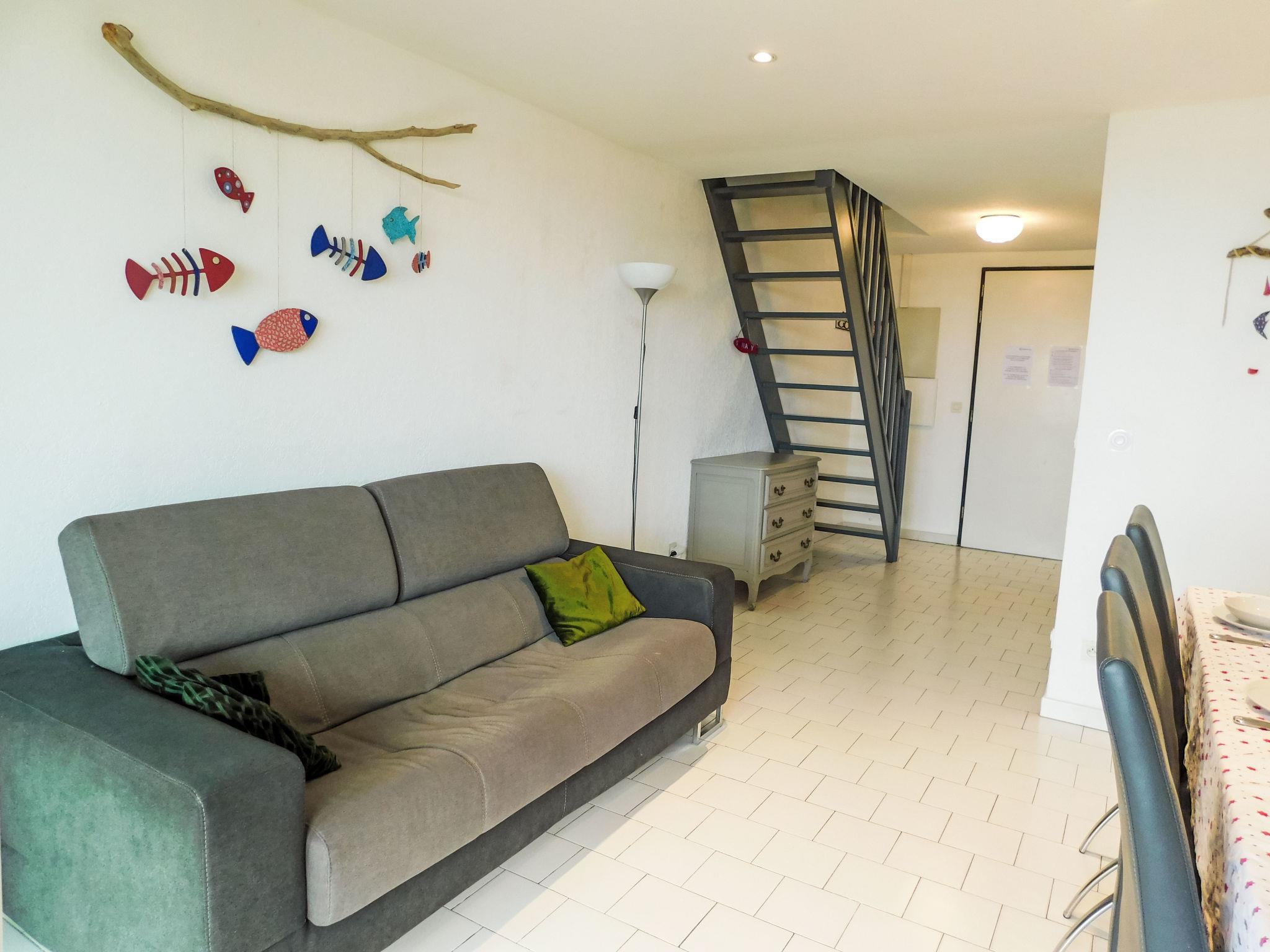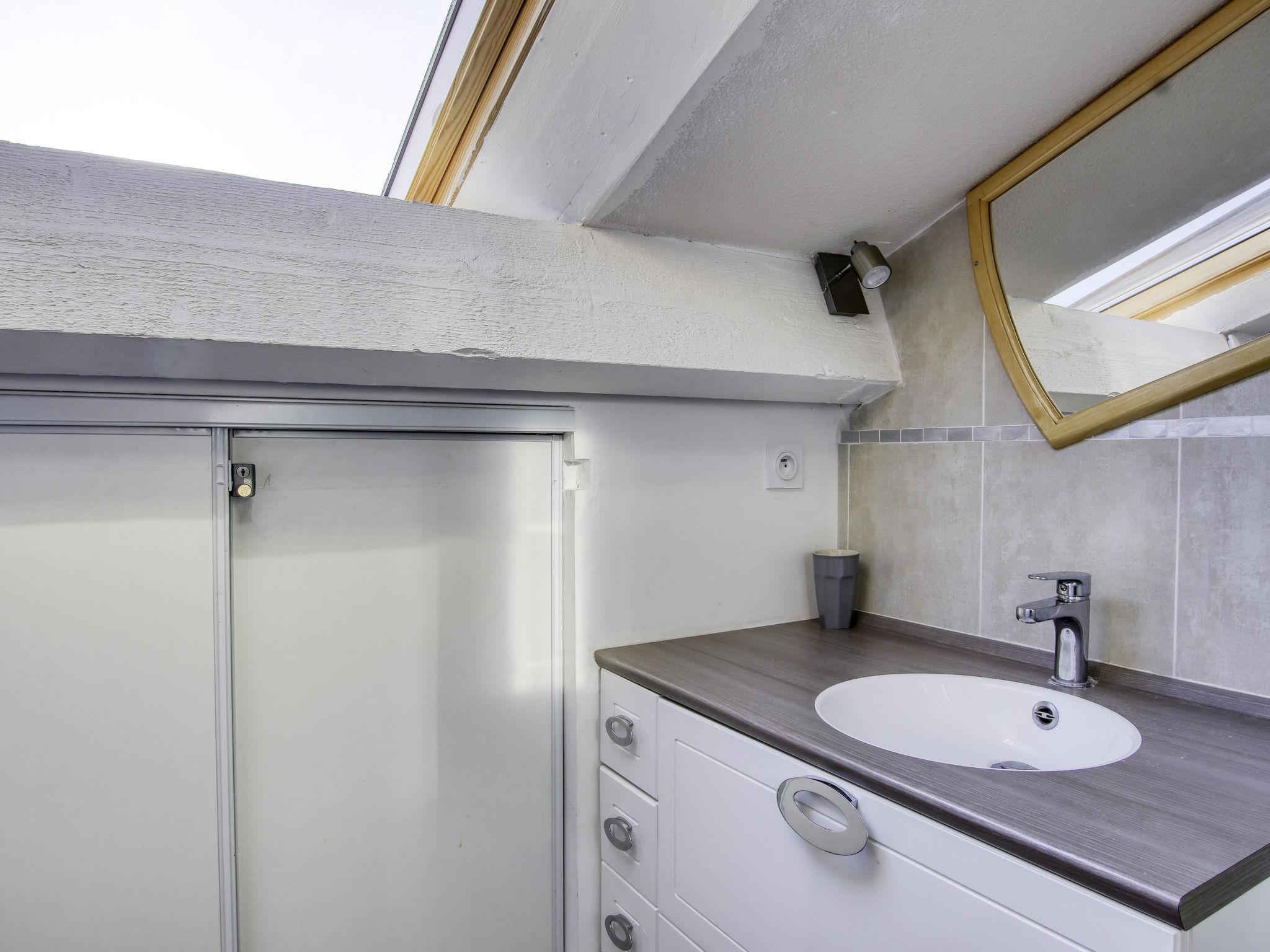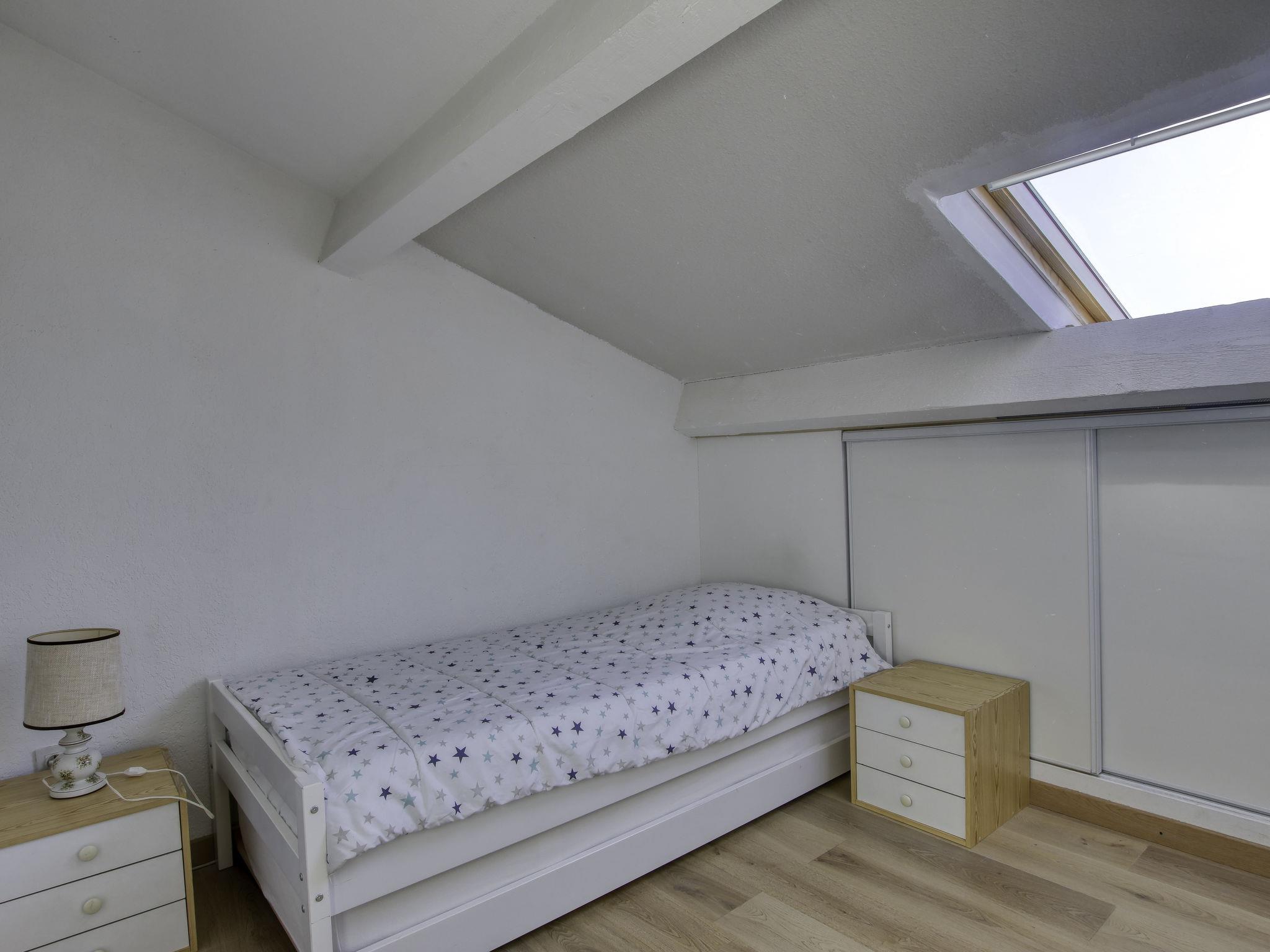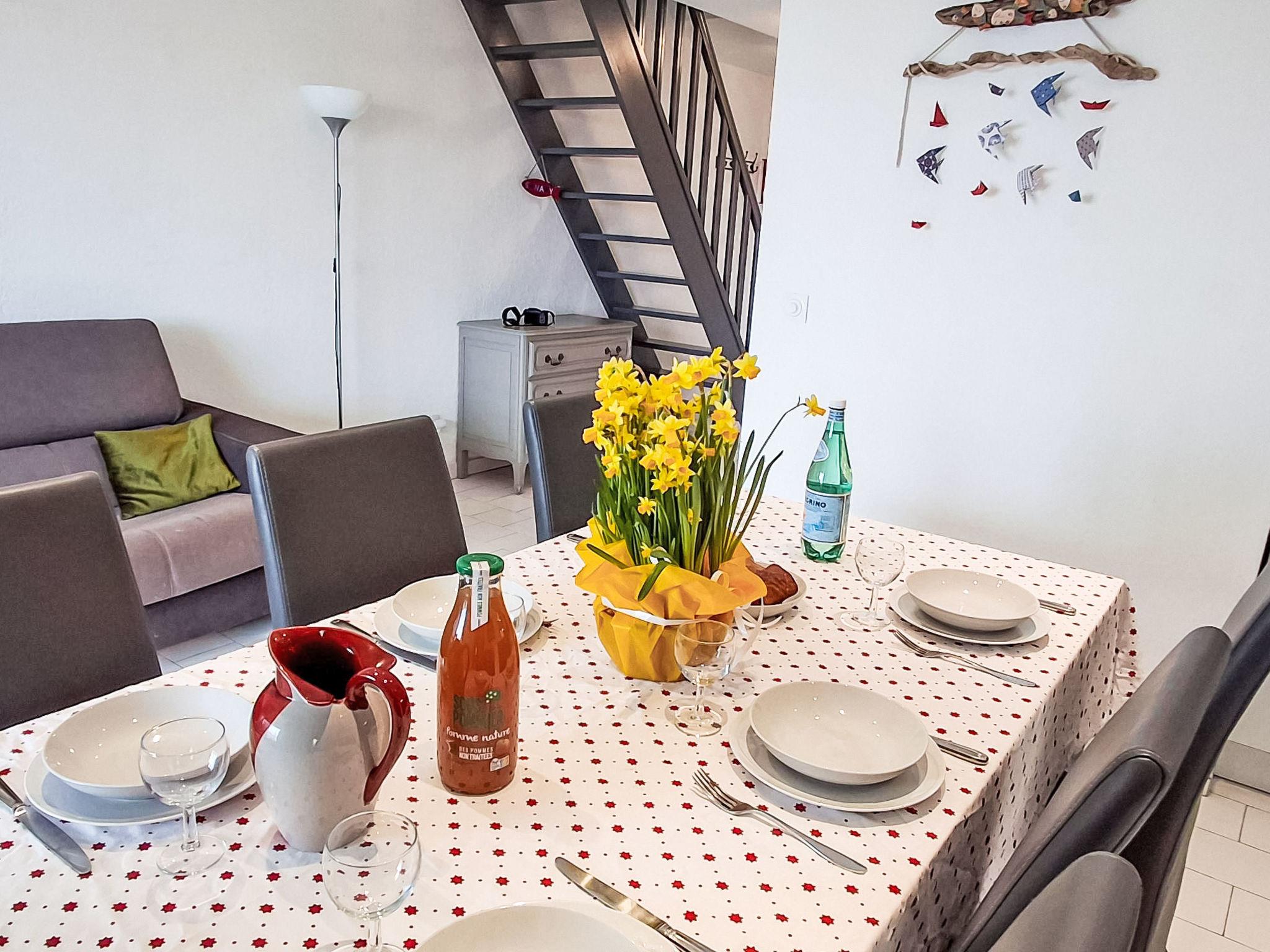4-room maisonette 70 m2 on 1st floor, south-west facing position. Beautiful furnishings: living/dining room with TV (flat screen), air conditioning. Exit to the veranda. 1 room with 1 french bed (1 x 160 cm, length 200 cm). Kitchenette (oven, dishwasher, 4 ceramic glass hob hotplates, toaster, kettle, microwave, freezer, electric coffee machine). Bathroom, sep. WC. Electric heating. Upper floor: 1 room with sloping ceilings with rooflight with 1 french bed (160 cm, length 200 cm). 1 room with sloping ceilings with rooflight with 1 pull-out bed (2 pers. 2 x 90 cm, length 190 cm). Shower, sep. WC. Beautiful view of the sea. Facilities: washing machine, dryer, iron, children's high chair, baby cot for up to 2 year olds. Internet (WiFi, free). Parking space n 15. Please note: non-smokers only. Maximum 1 pet/ dog allowed. TV only FR. Smoke alarm, no lift. Offer by a commercial proprietor according to Art. 155, IV, CGI 8312300164467