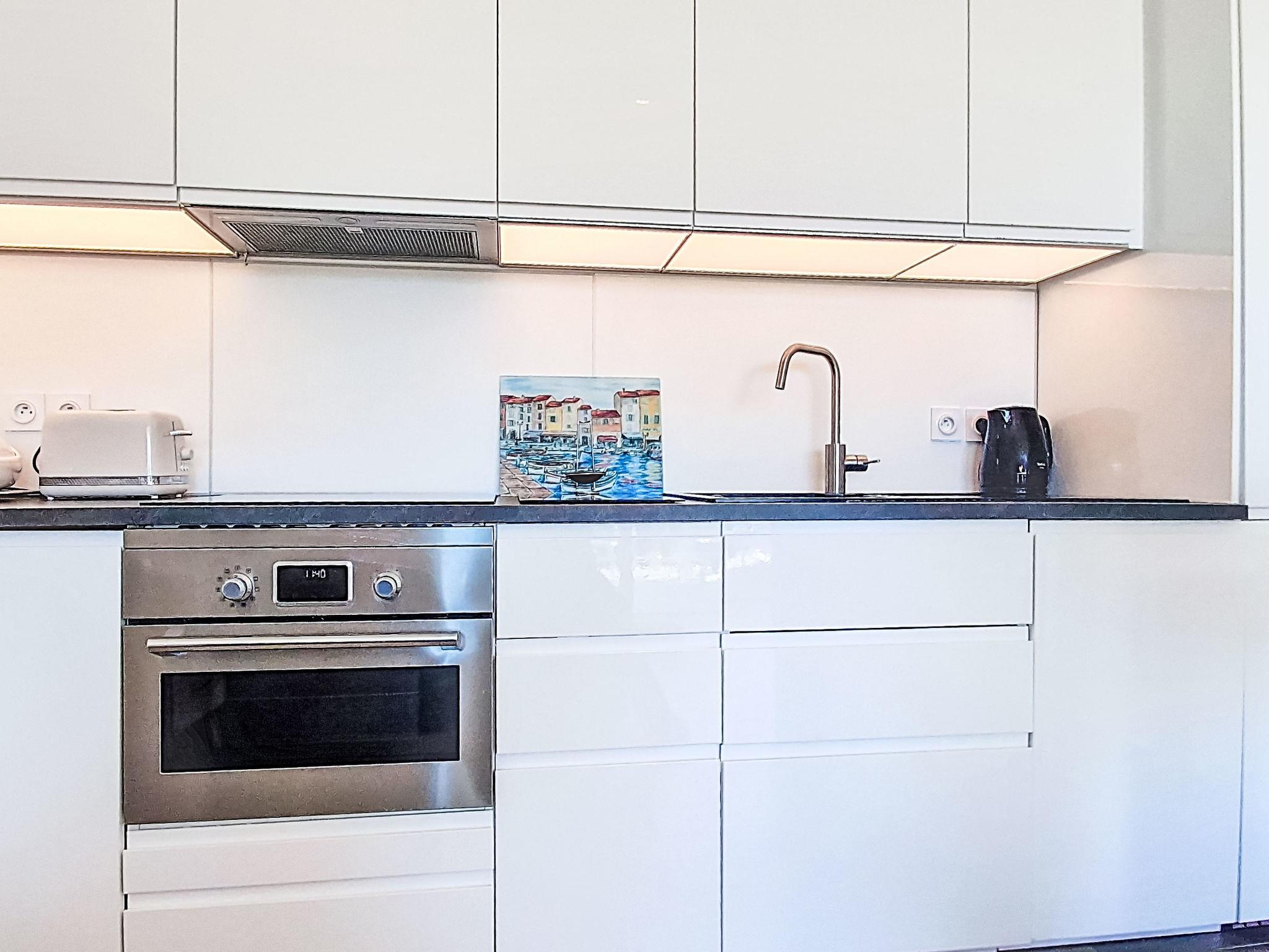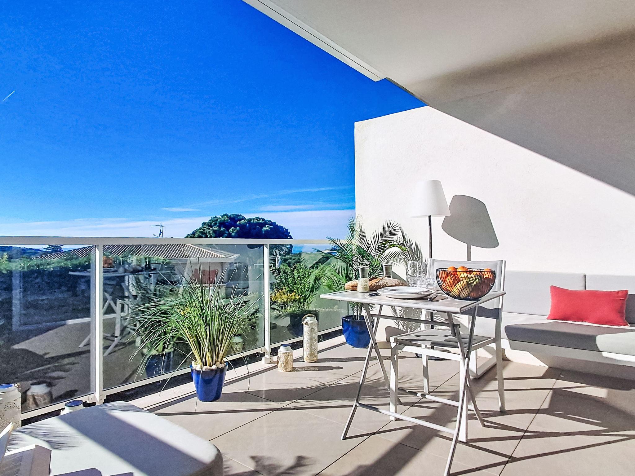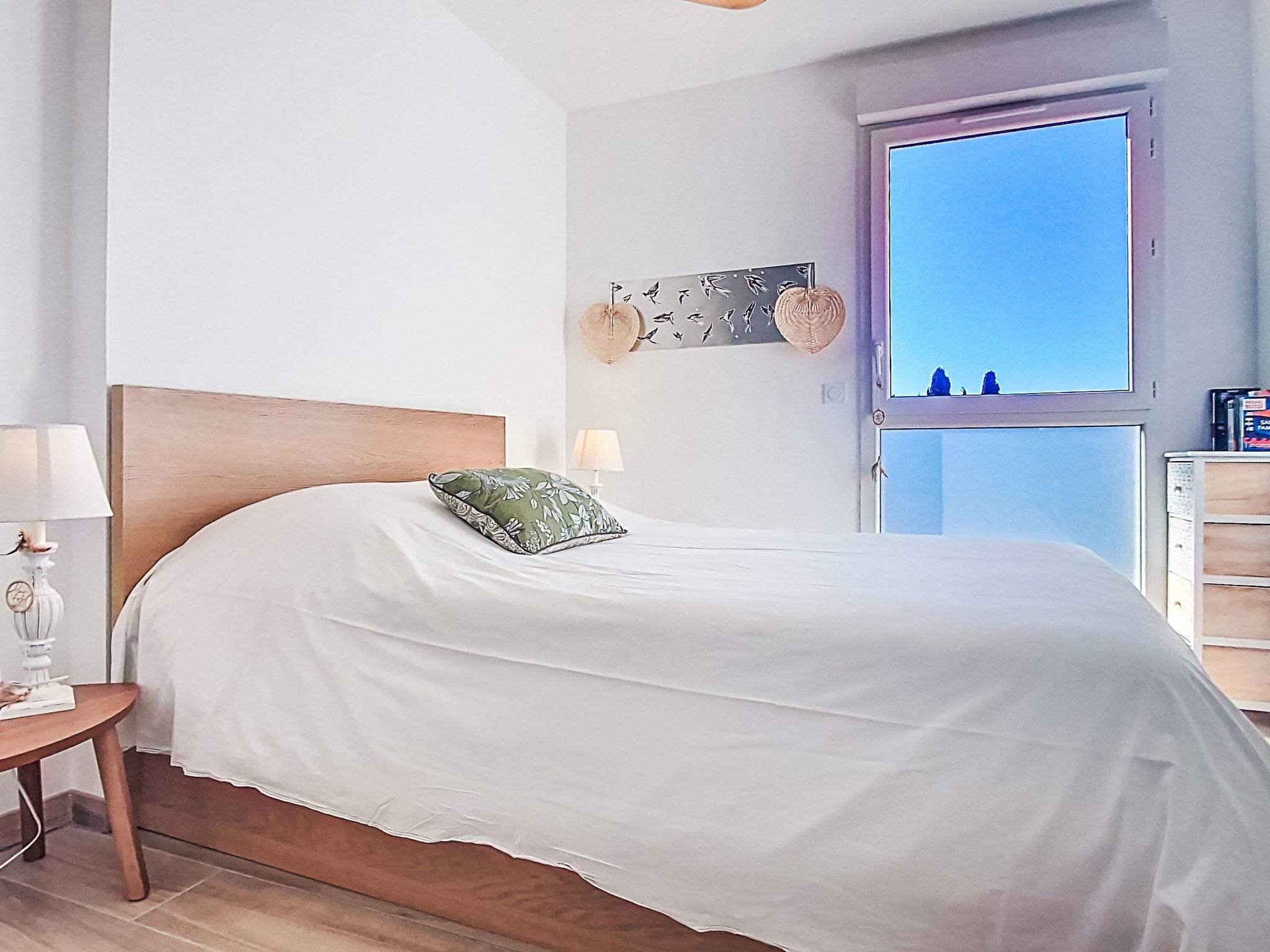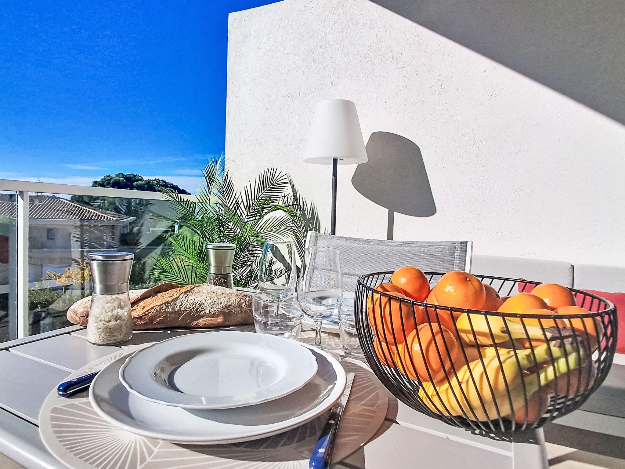 2-room apartment 40 m2 on 1st floor. Bright, comfortable and beautiful furnishings: living/dining room 20 m2 with TV (flat screen), air conditioning. Exit to the terrace. 1 room with 1 french bed (140 cm, length 190 cm), air conditioning. Open kitchen (dishwasher, 1 induction hot plates, 3 gas rings, toaster, kettle, freezer, electric coffee machine, Capsules for coffee machine (SENSEO) extra, combination microwave). Shower, sep. WC. Forced-air heating. Terrace 20 m2, south-west facing position. Terrace furniture. View of the sea. Facilities: washing machine. Internet (WiFi). Parking space n 14 (1 car). Please note: non-smokers only. TV only FR. Smoke alarm. Offer by a private individual according to Art. 155, IV of CGI. 83123002313T8