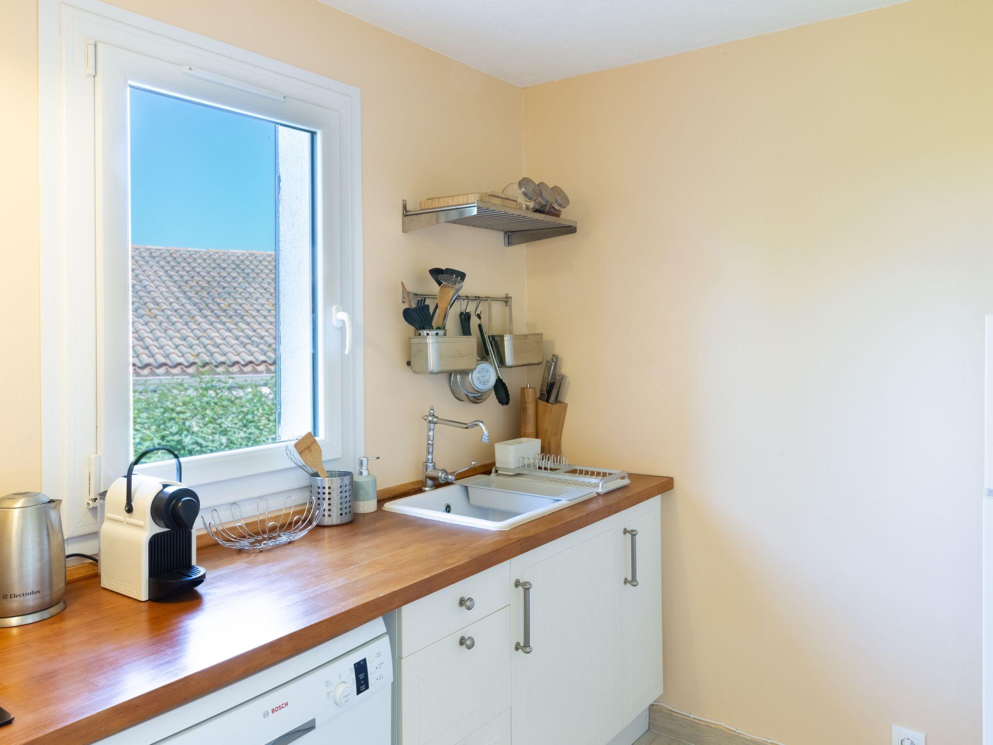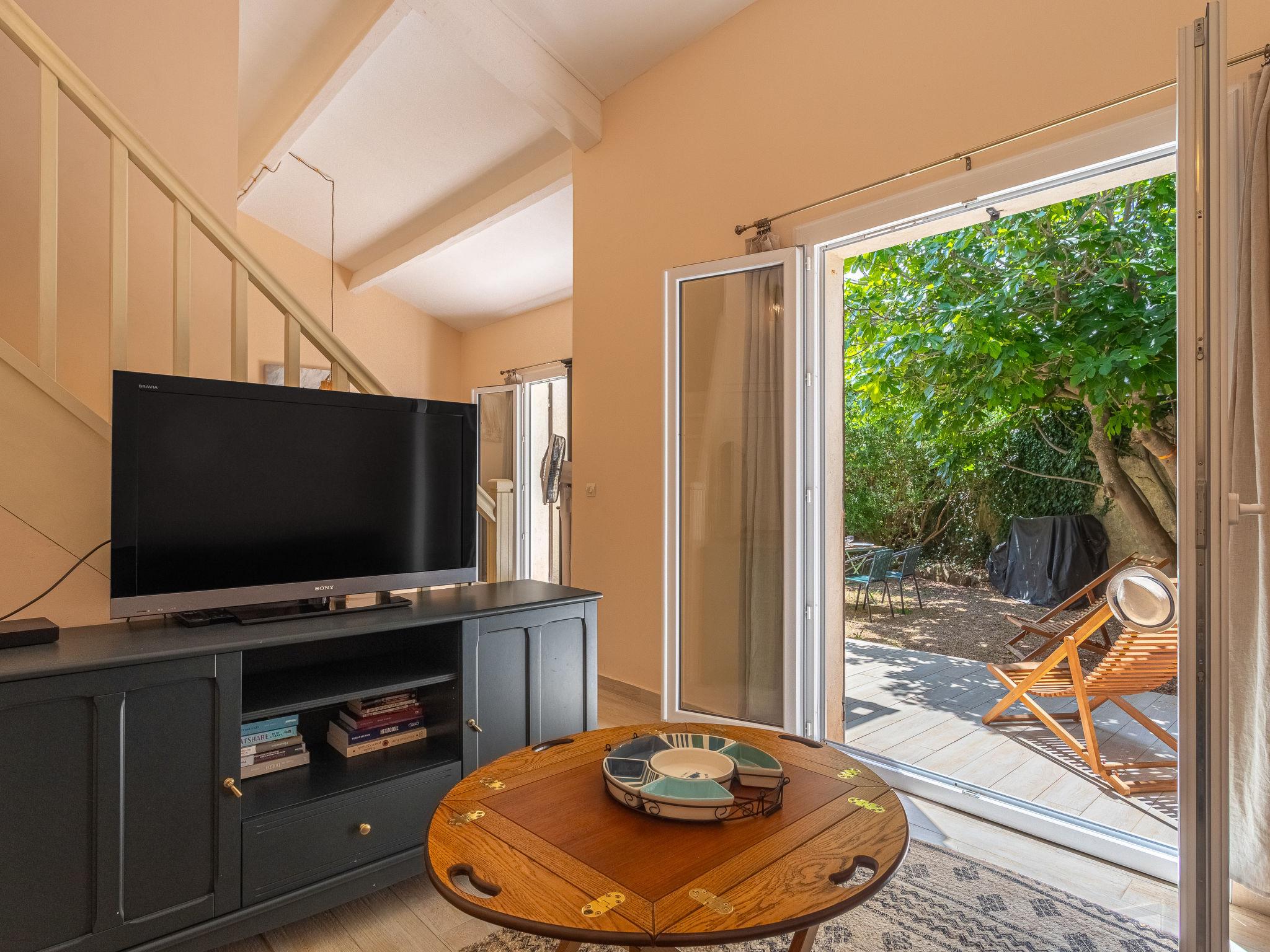 3-room terraced house 60 m2 on 2 levels. Renovated in 2015, comfortable and beautiful furnishings: living/dining room with TV (flat screen). Exit to the garden, to the terrace. 1 room with 1 french bed (140 cm, length 190 cm). Kitchen (dishwasher, 2 induction hot plates, kettle, microwave, freezer, electric coffee machine, Capsules for coffee machine (Nespresso) extra). Sep. WC. Upper floor: 1 room with 1 french bed (140 cm, length 190 cm). Bathroom. Heating. Terrace 30 m2. Terrace furniture, barbecue. Facilities: washing machine, iron. Internet (WiFi, free). Parking space n 40. Please note: non-smokers only. TV only FR. Smoke alarm. 83123001597IP