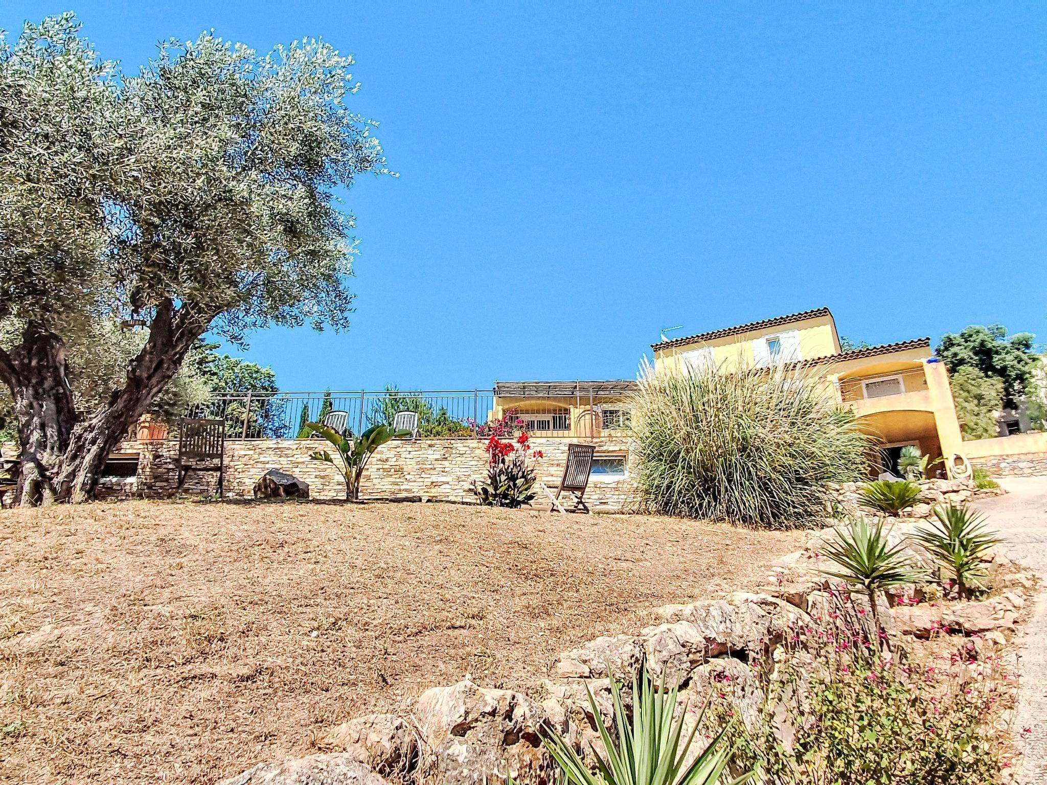 3-family house "Douce parenthése". In the resort 3 km from the centre of Sanary sur Mer, in a quiet position in the residential district, 3.5 km from the sea, in a cul-de-sac. For shared use: well-kept terraced garden (fenced), swimming pool (11 x 5 m, depth 90 - 150 cm, seasonal availability: 01.May. - 30.Sep.) with internal staircase. Parking. Grocery 3 km, restaurant 3 km, bus stop 1.5 km, sandy beach "Plage la Gorguette" 3 km. Golf course (18 hole) 12 km. Hiking paths: Sainte Baume, Sainte Victoire, Calanques Port-Cros, Porquerolles, Ile verte, Embiez, Figuerolles, Cassis. Please note: the keys‘ handover takes place by the agency Interhome in SIX FOURS LES PLAGES, 5 km. The owner lives in the same residence. The owner has a dog.