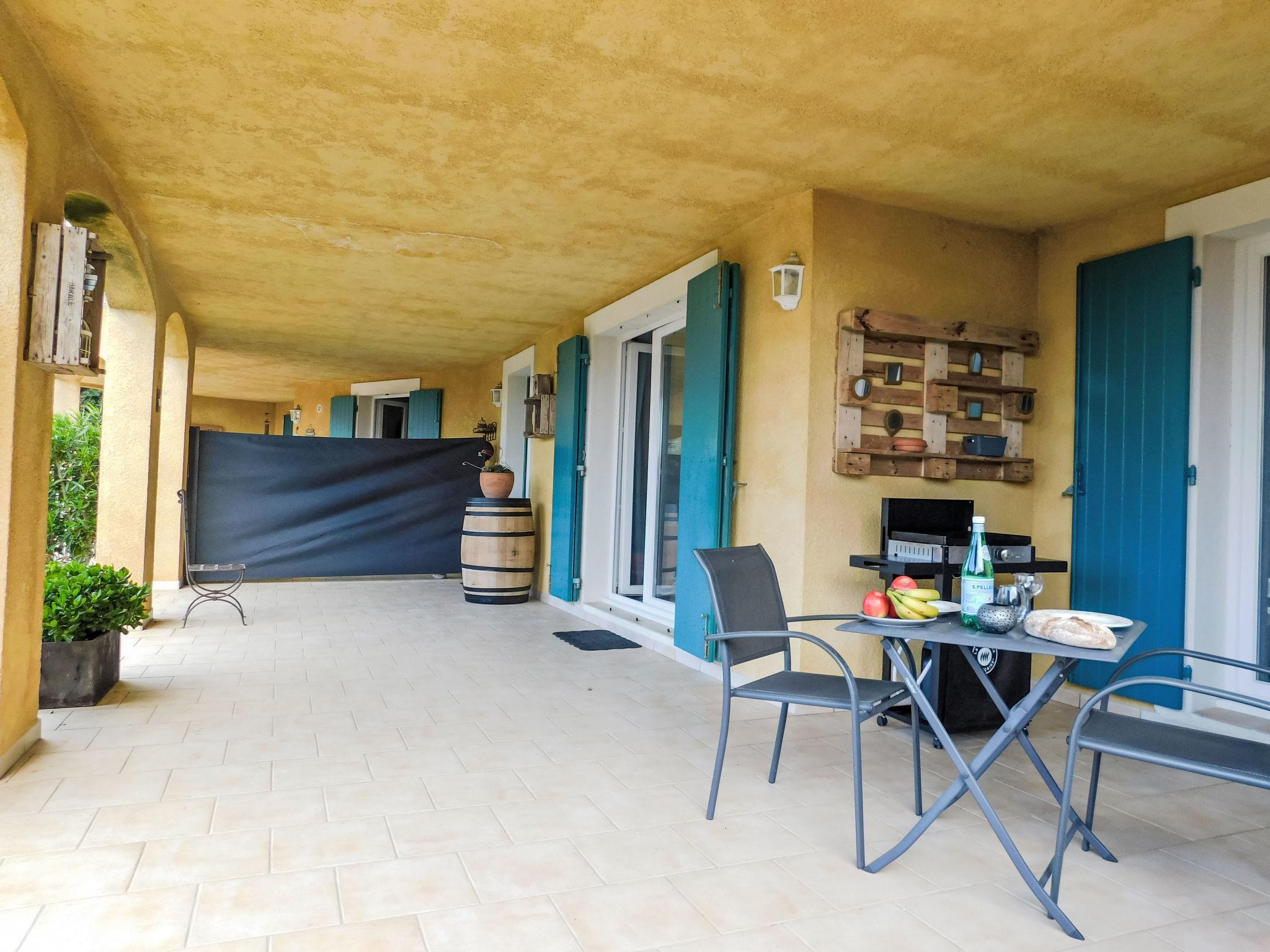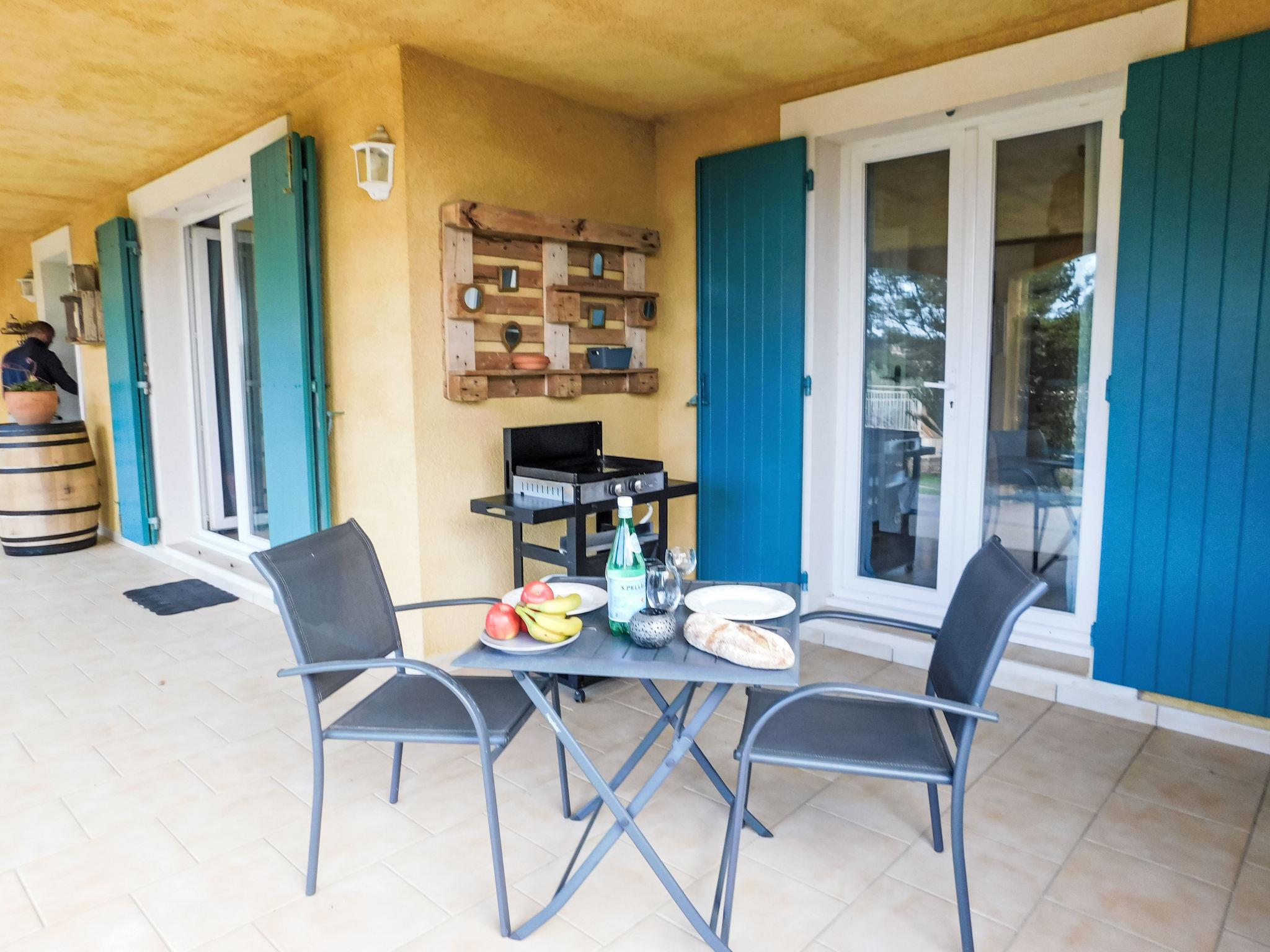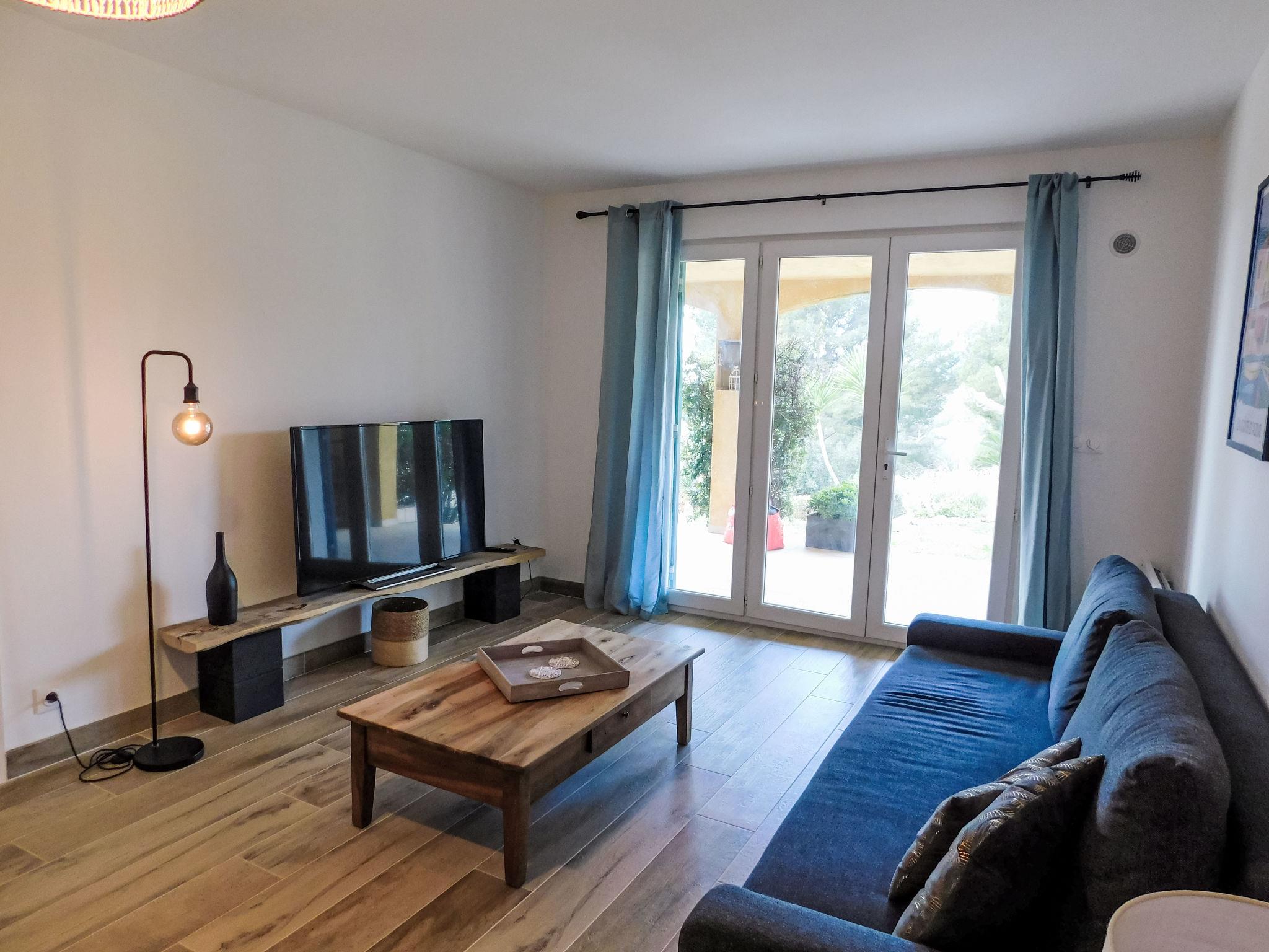 3-family house "Douce parenthése". In the resort 3 km from the centre of Sanary sur Mer, in a quiet position in the residential district, 3.5 km from the sea, in a cul-de-sac. For shared use: well-kept terraced garden (fenced), swimming pool (11 x 5 m, depth 90 - 150 cm, seasonal availability: 01.May. - 30.Sep.) with internal staircase. Parking. Grocery 3 km, restaurant 3 km, bus stop 1.5 km, sandy beach "Plage la Gorguette" 3 km. Golf course (18 hole) 12 km. Hiking paths: Sainte Baume, Sainte Victoire, Calanques Port-Cros, Porquerolles, Ile verte, Embiez, Figuerolles, Cassis. Please note: the keys‘ handover takes place by the agency Interhome in SIX FOURS LES PLAGES, 5 km. The owner lives in the same residence. The owner has a dog.