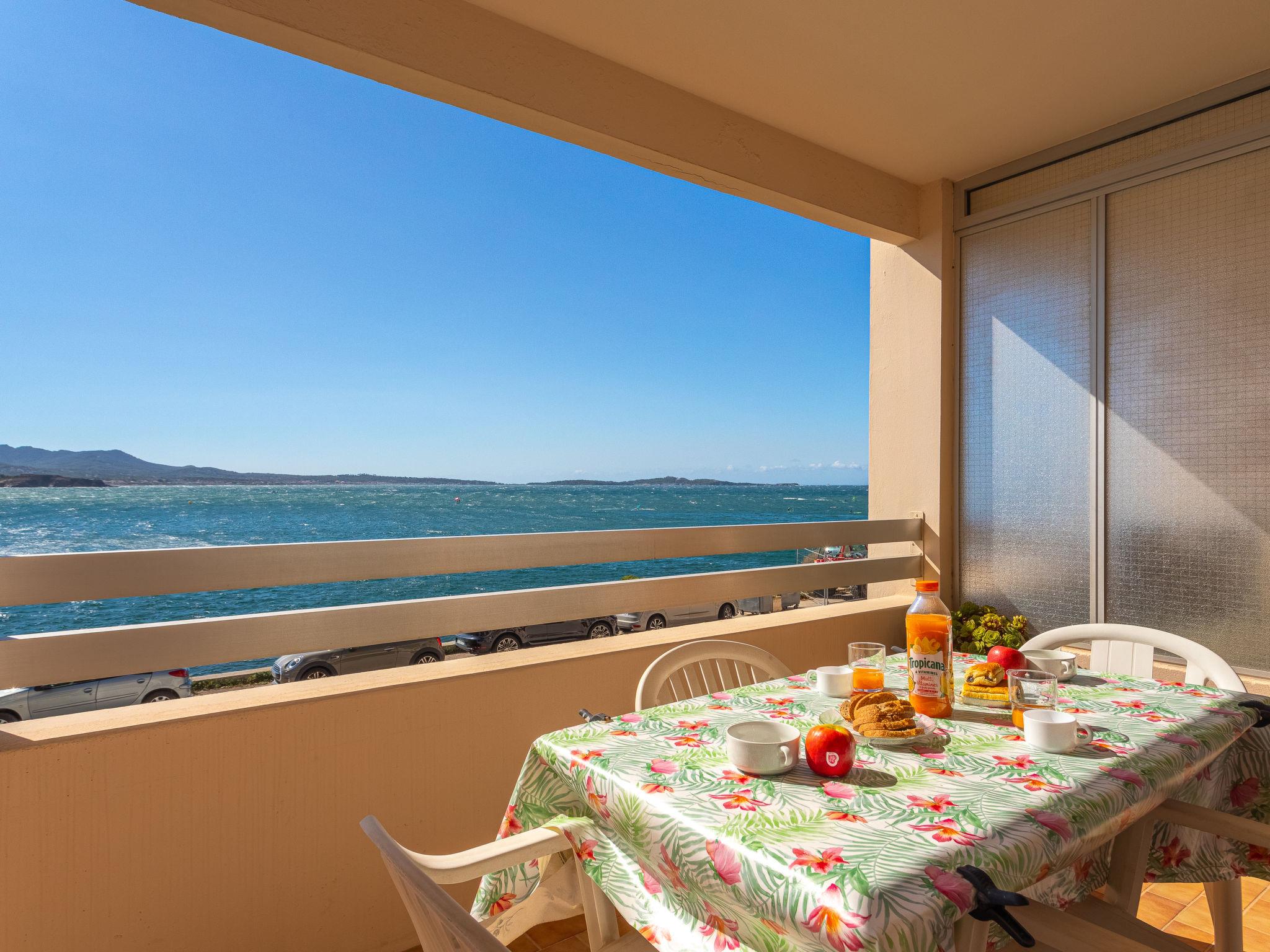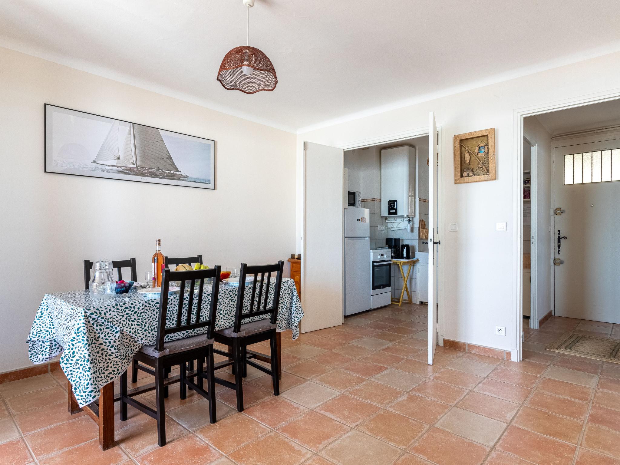 2-room apartment 50 m2 on 1st floor. Beautiful furnishings: living/dining room with 1 double sofabed (140 cm, length 190 cm), TV (flat screen), air conditioning. Exit to the terrace. 1 room with 2 beds (90 cm, length 190 cm). Open kitchen (oven, 3 ceramic glass hob hotplates, toaster, kettle, microwave, freezer, electric coffee machine). Shower, sep. WC. Electric heating. Terrace 12 m2, roofed. Terrace furniture. Very beautiful view of the sea. Facilities: washing machine. Internet (WiFi, extra). Garage, height 210 cm, width 210 cm. Please note: TV only FR. Smoke alarm, no lift. Offer by a private individual according to Art. 155, IV of CGI. 83122000473QS